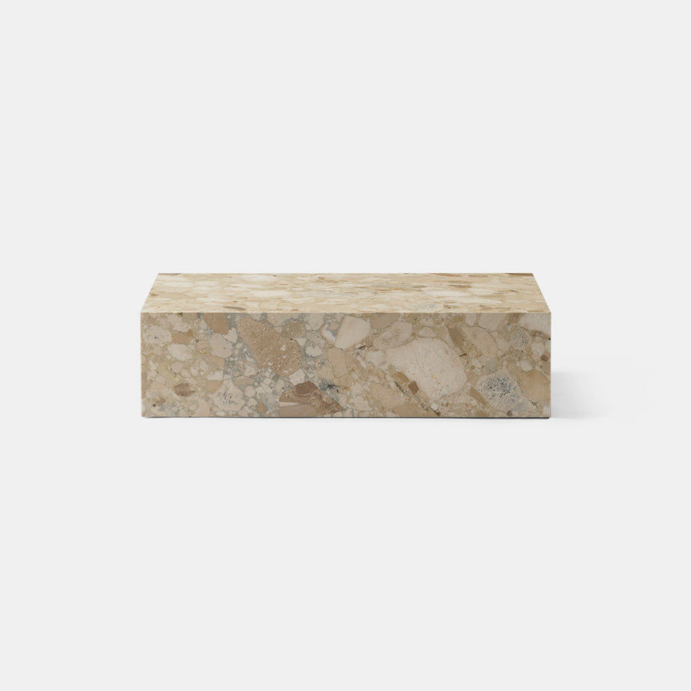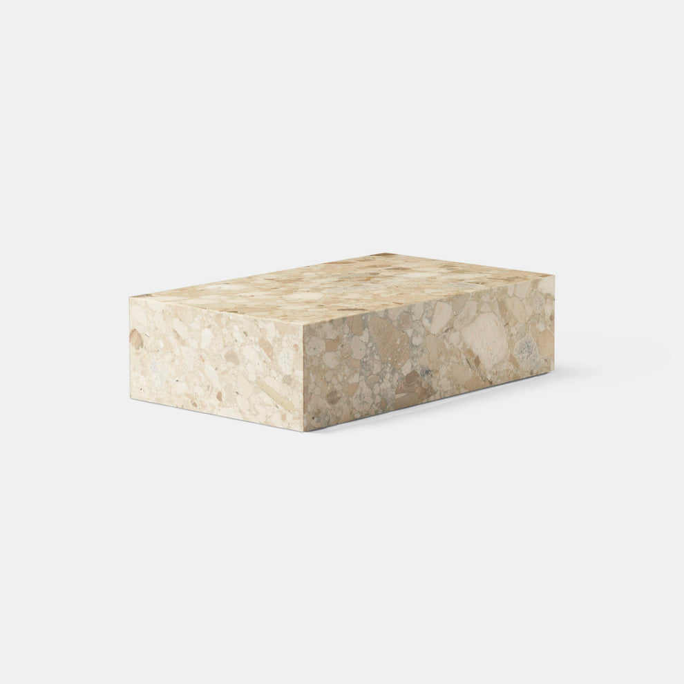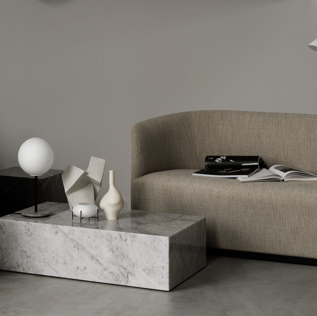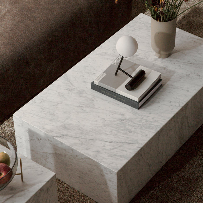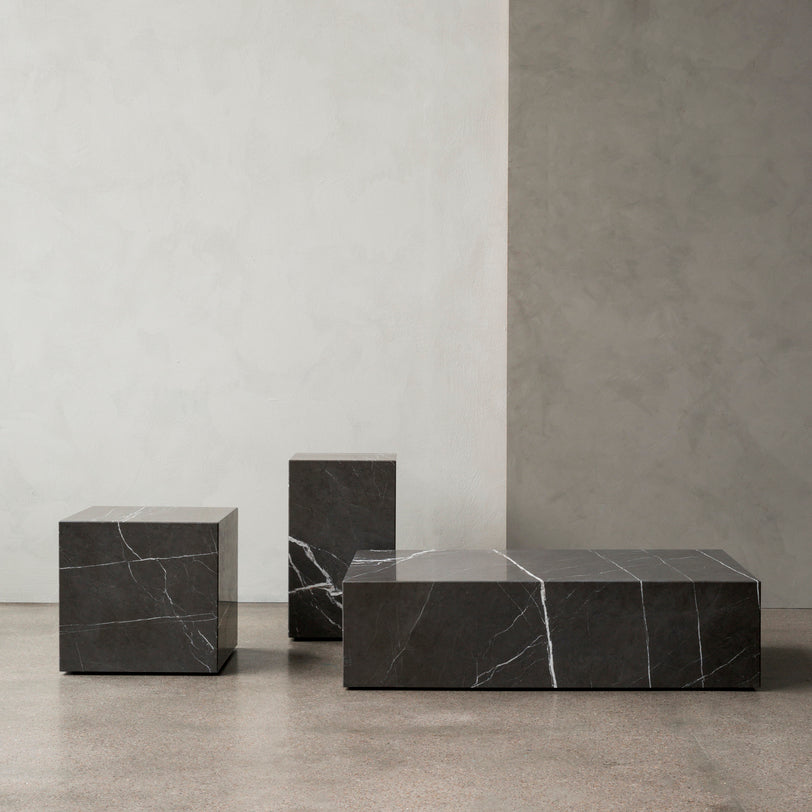 Plinth-serien er designet av Norm Architects for Audo, og er utviklet for å fremheve marmorens naturlige skjønnhet. Serien består av størrelsene Low, Cubic, Tall og finnes i flere typer marmor. Bordene er designet for å være multifunksjonelle – perfekt som sofabord, podium eller utstillingsflate i hjemmet, på kontoret eller i et showroom.