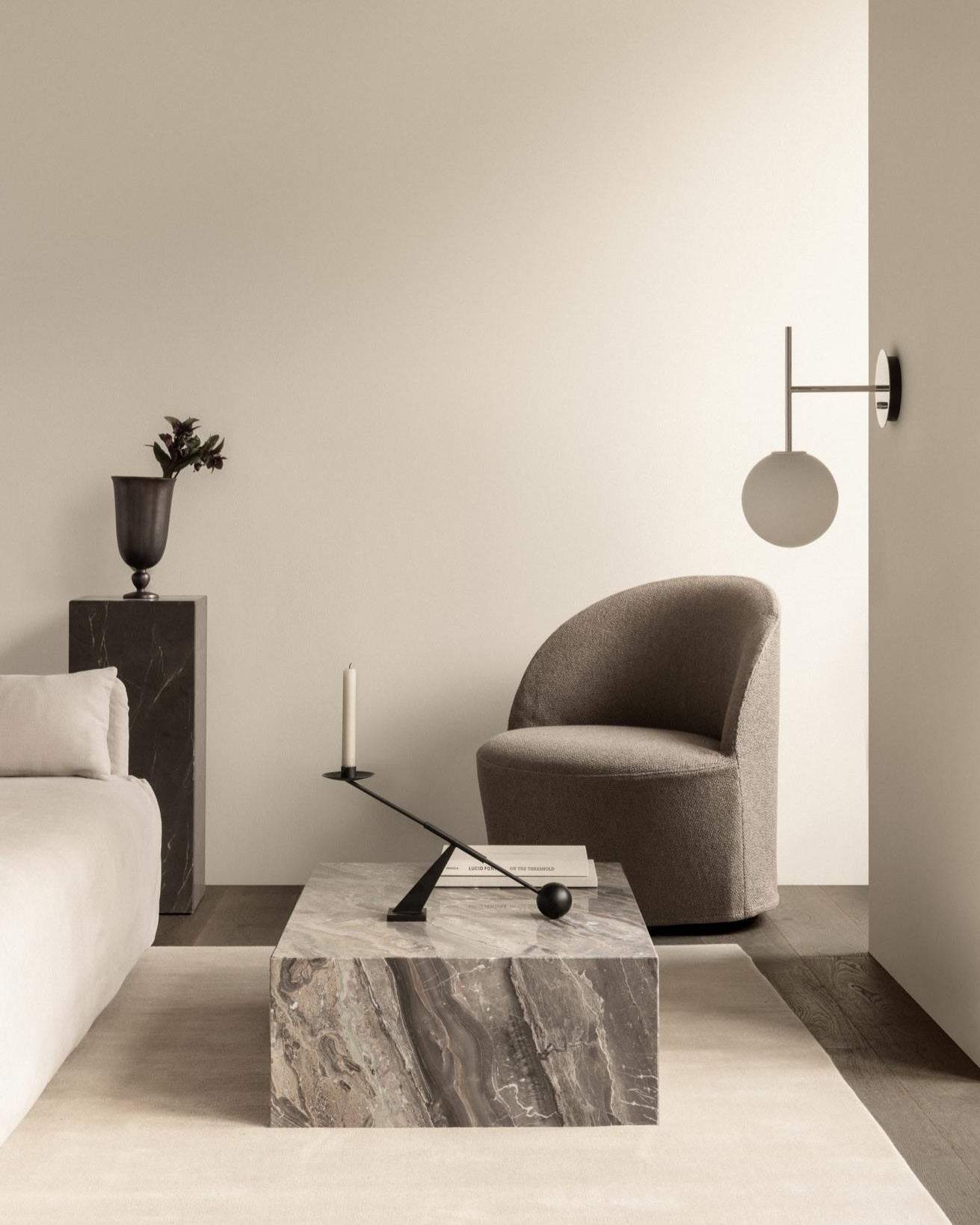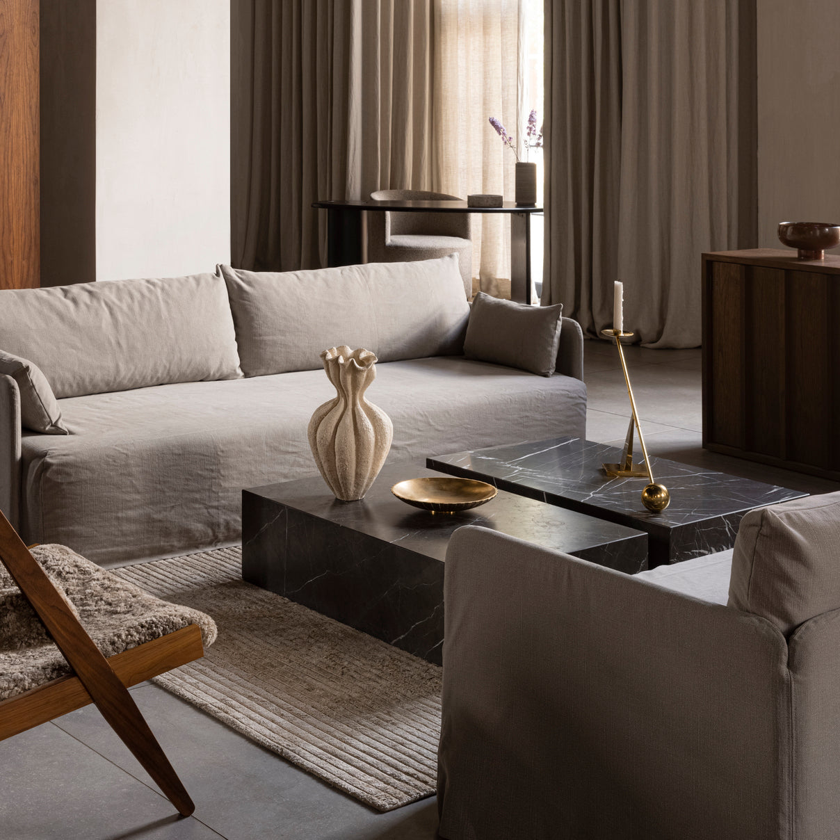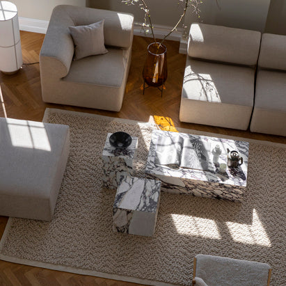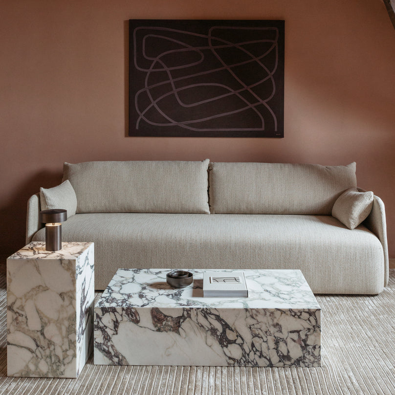 Plinth-serien er designet av Norm Architects for Audo, og er utviklet for å fremheve marmorens naturlige skjønnhet. Serien består av størrelsene Low, Cubic, Tall og finnes i flere typer marmor. Bordene er designet for å være multifunksjonelle – perfekt som sofabord, podium eller utstillingsflate i hjemmet, på kontoret eller i et showroom.