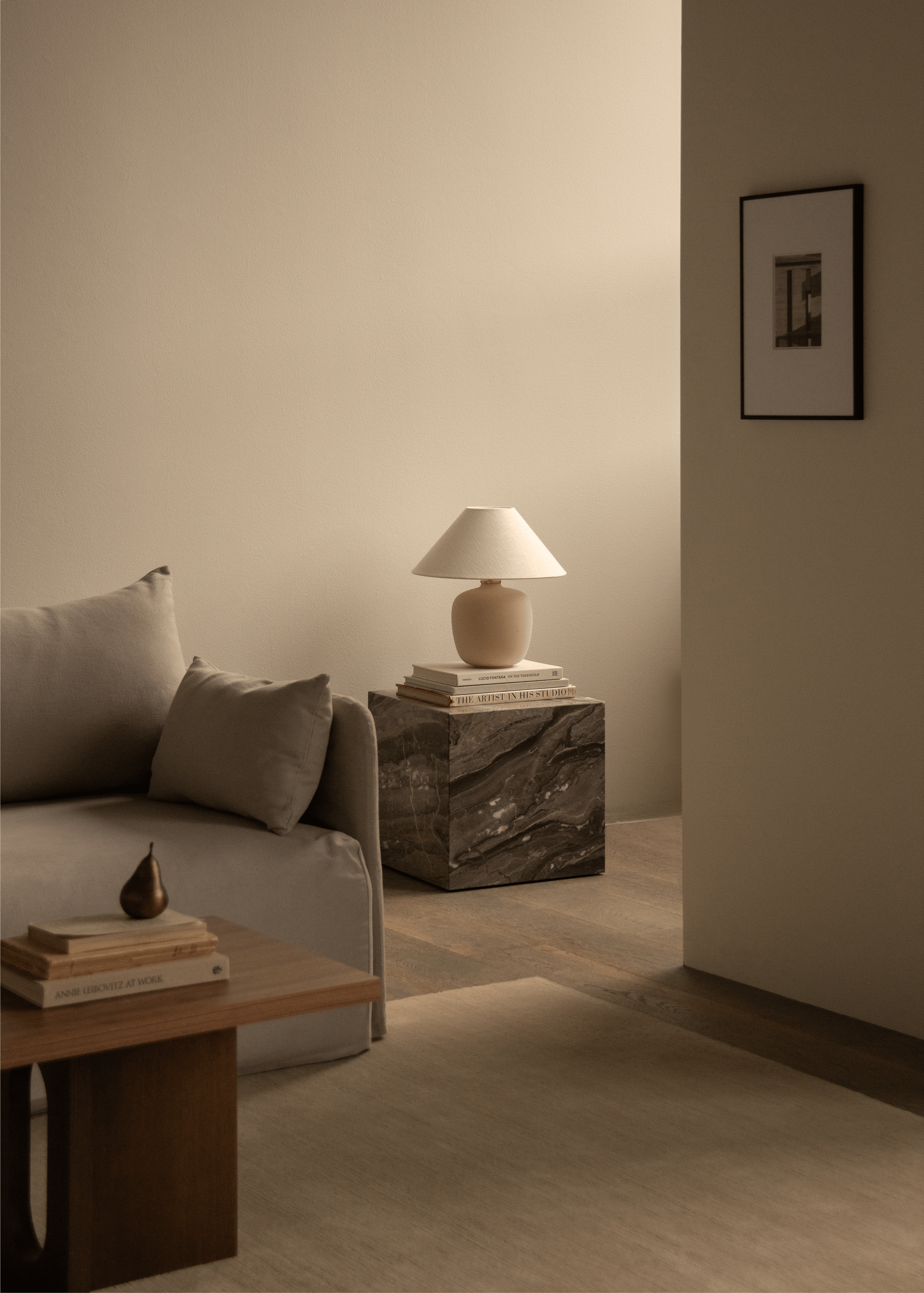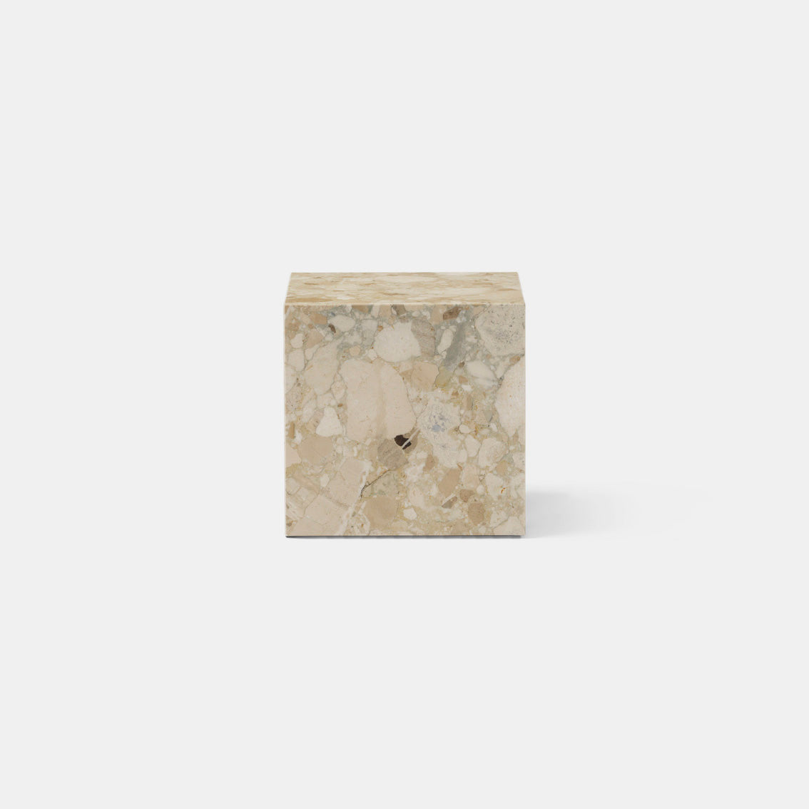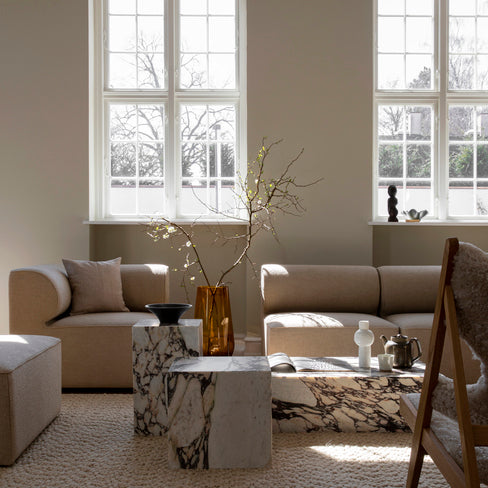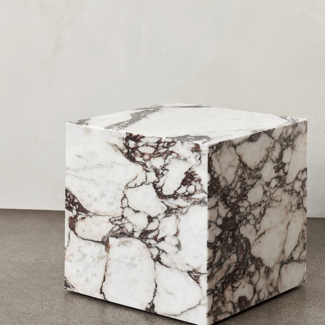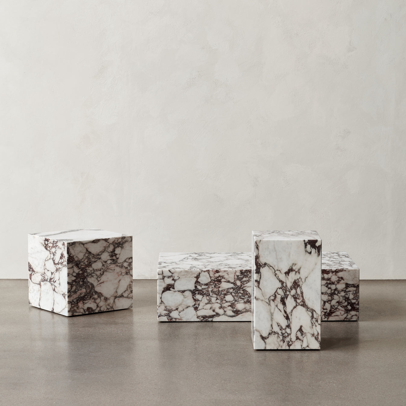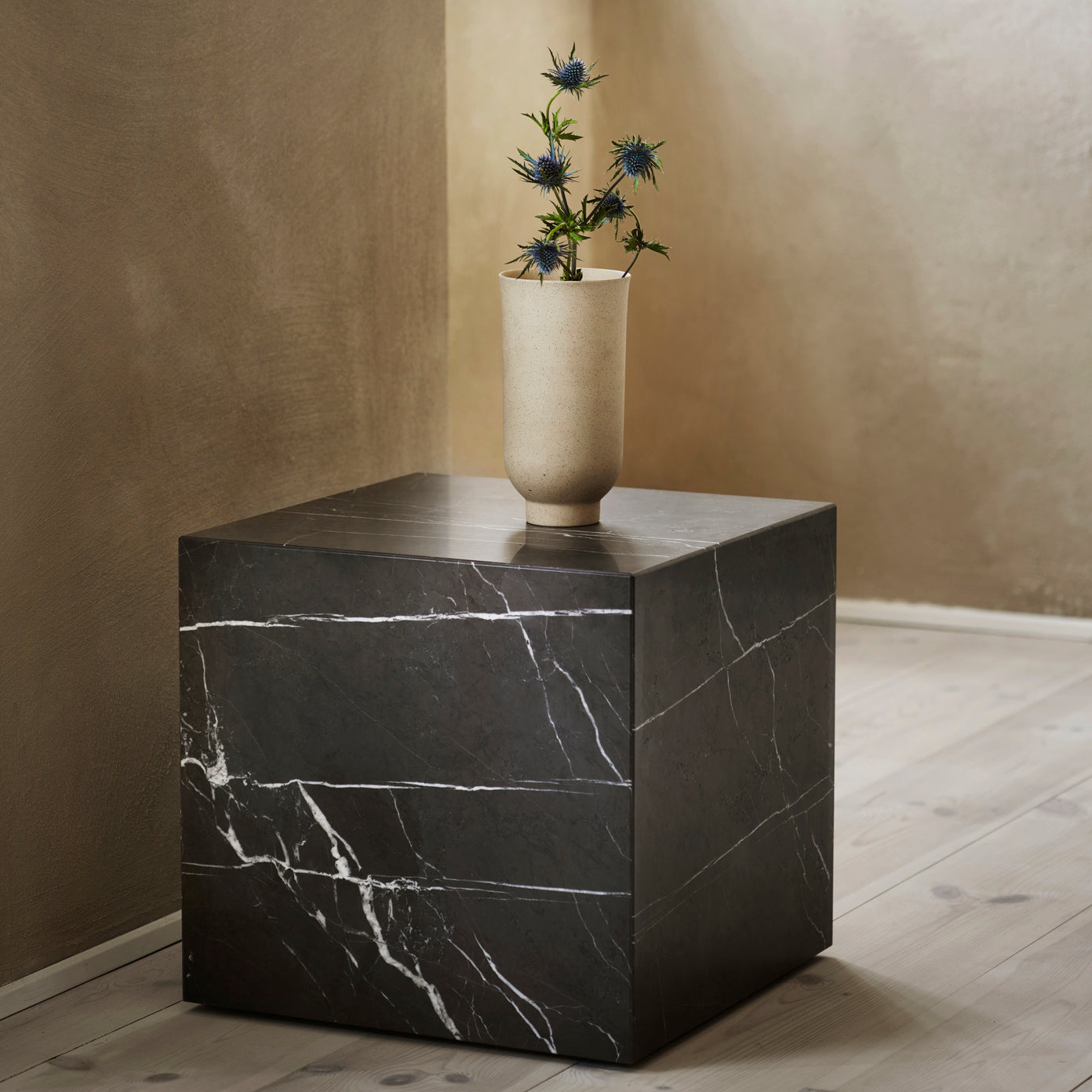 Plinth-serien er designet av Norm Architects for Audo, og er utviklet med mål om å fremheve marmorens naturlige skjønnhet. Serien består av størrelsene Low, Tall, og Cubic, og kan brukes både som sofabord, podie eller nattbord – like godt egnet hjemme som på kontoret eller i et showroom.