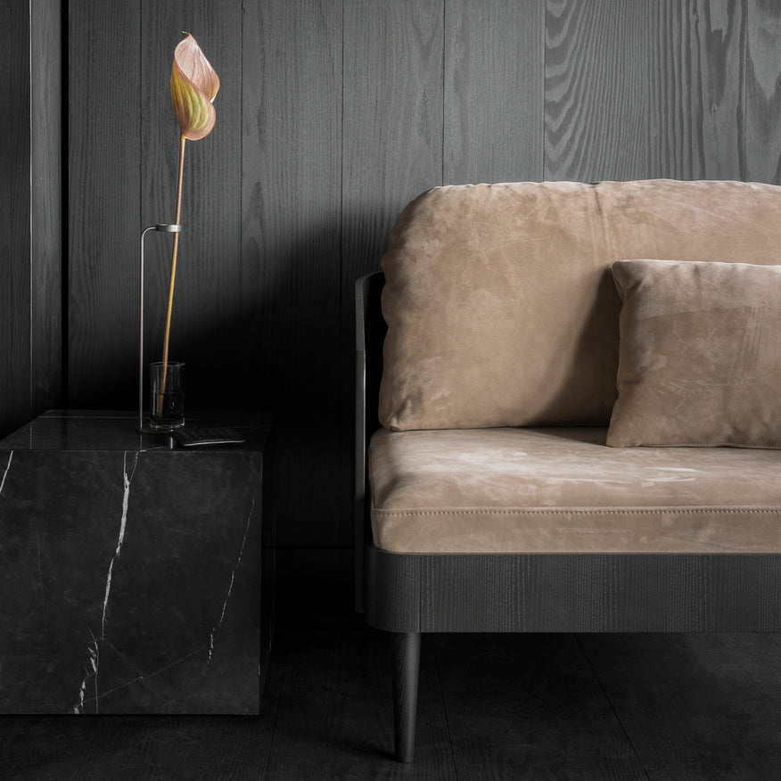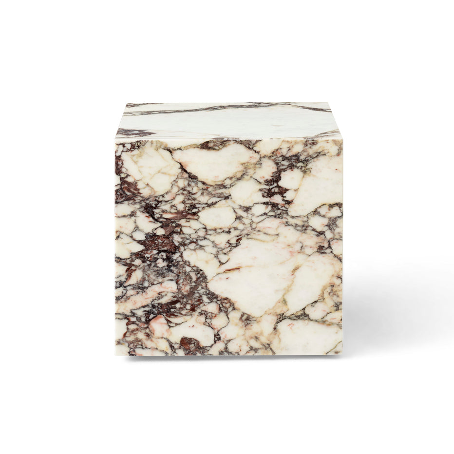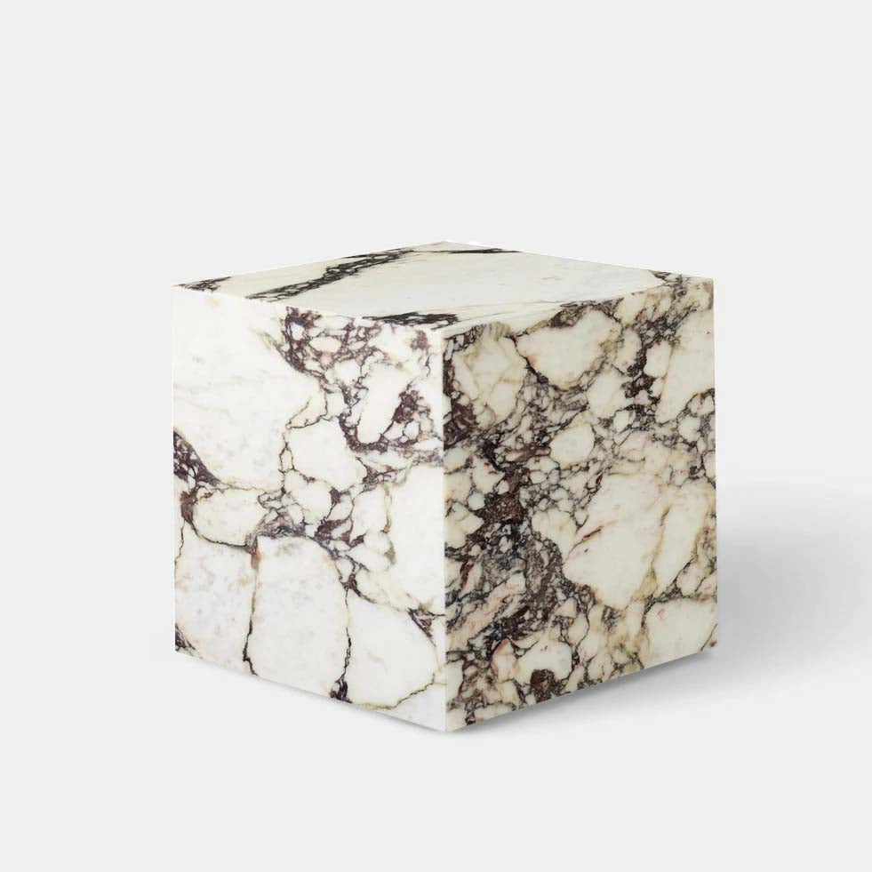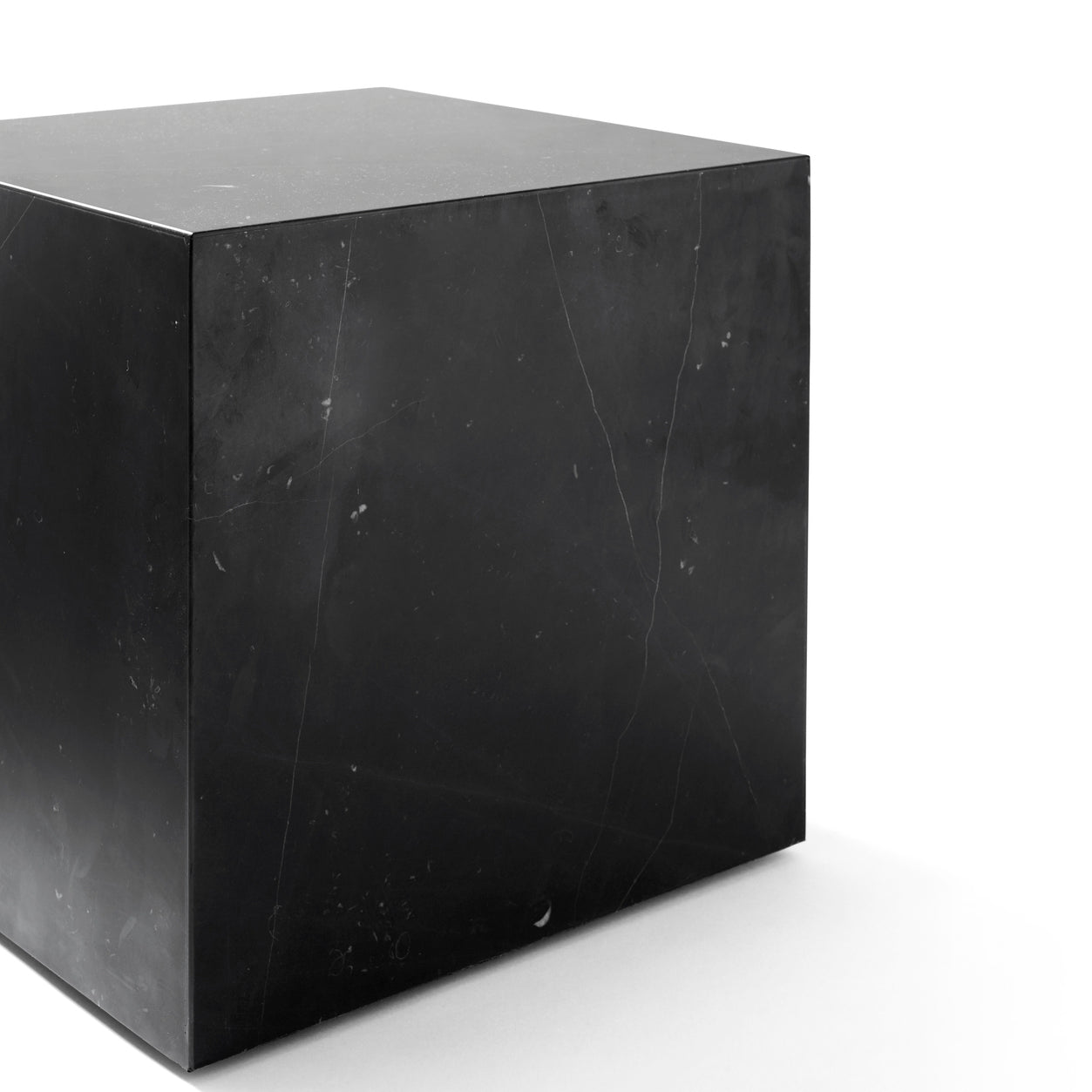 Plinth Cubic er både et funksjonelt møbel og et skulpturelt objekt. Den rene, stramme silhuetten står i vakker kontrast til marmoren, der hvert enkelt stykke har sin egen unike åring og karakter.