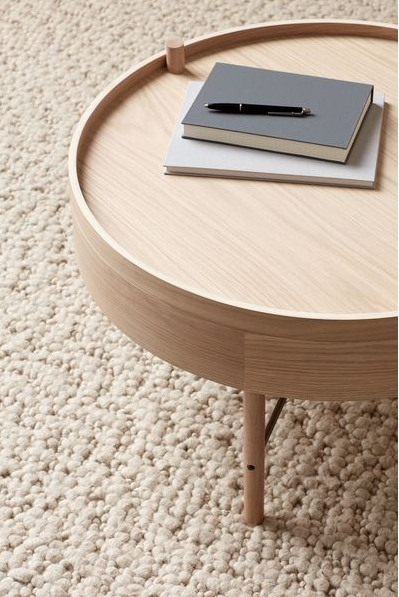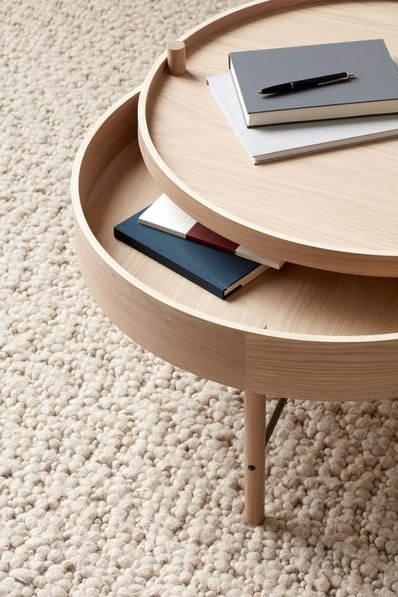 Den tyske designeren Theresa Arns eksperimenterte med måter å kunne kombinere et bord med lagringsplass. Det var da hun fikk en ide om å designe et lokk som kan åpnes av å bli rotert av et av bordbeinene. Resultatet ble et elegant og fasinerende bord. En virkelig eyecatcher i rommet.