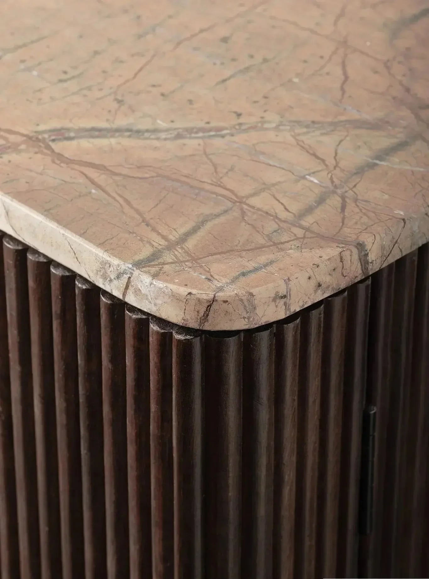 Det retro Brooklyn-barskapet fanger essensen av eleganse fra midten av århundret, og henter inspirasjon fra de ikoniske designene fra 1950- og 60-tallet. Dette eksklusive utstillingsmøblet kjennetegnes av raffinerte ribbedetaljer og omhyggelige håndverk, noe som gjør det til et iøynefallende tillegg til ethvert sofistikert interiør.