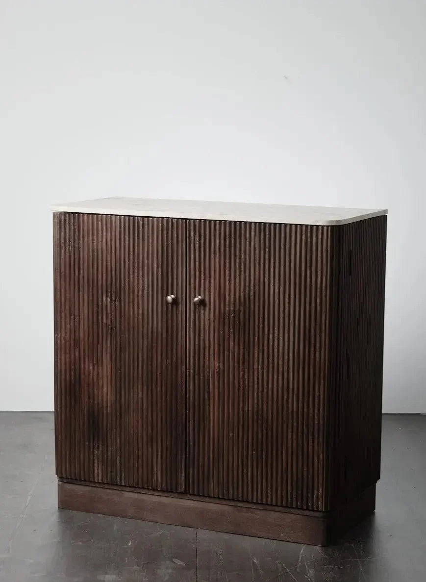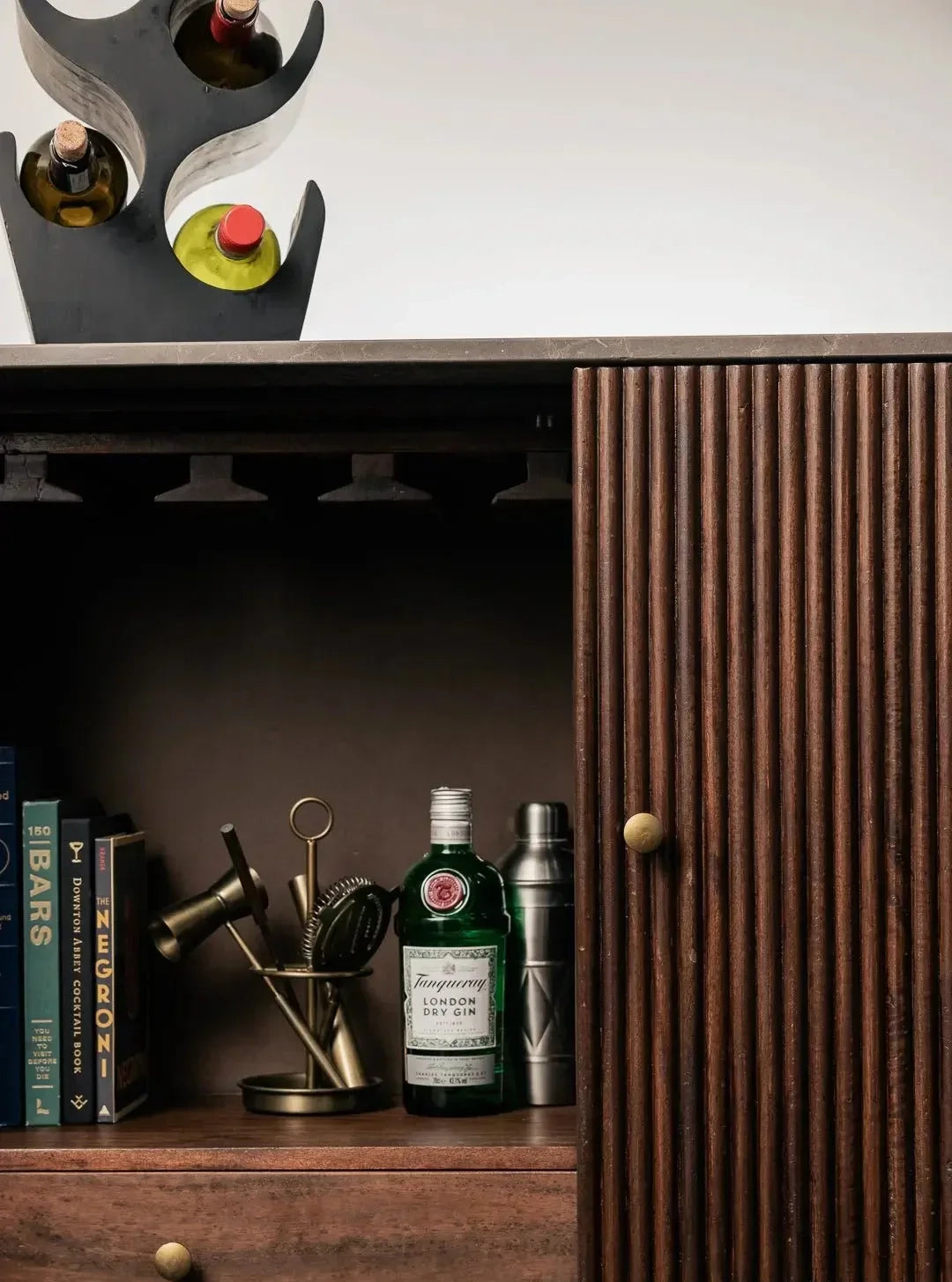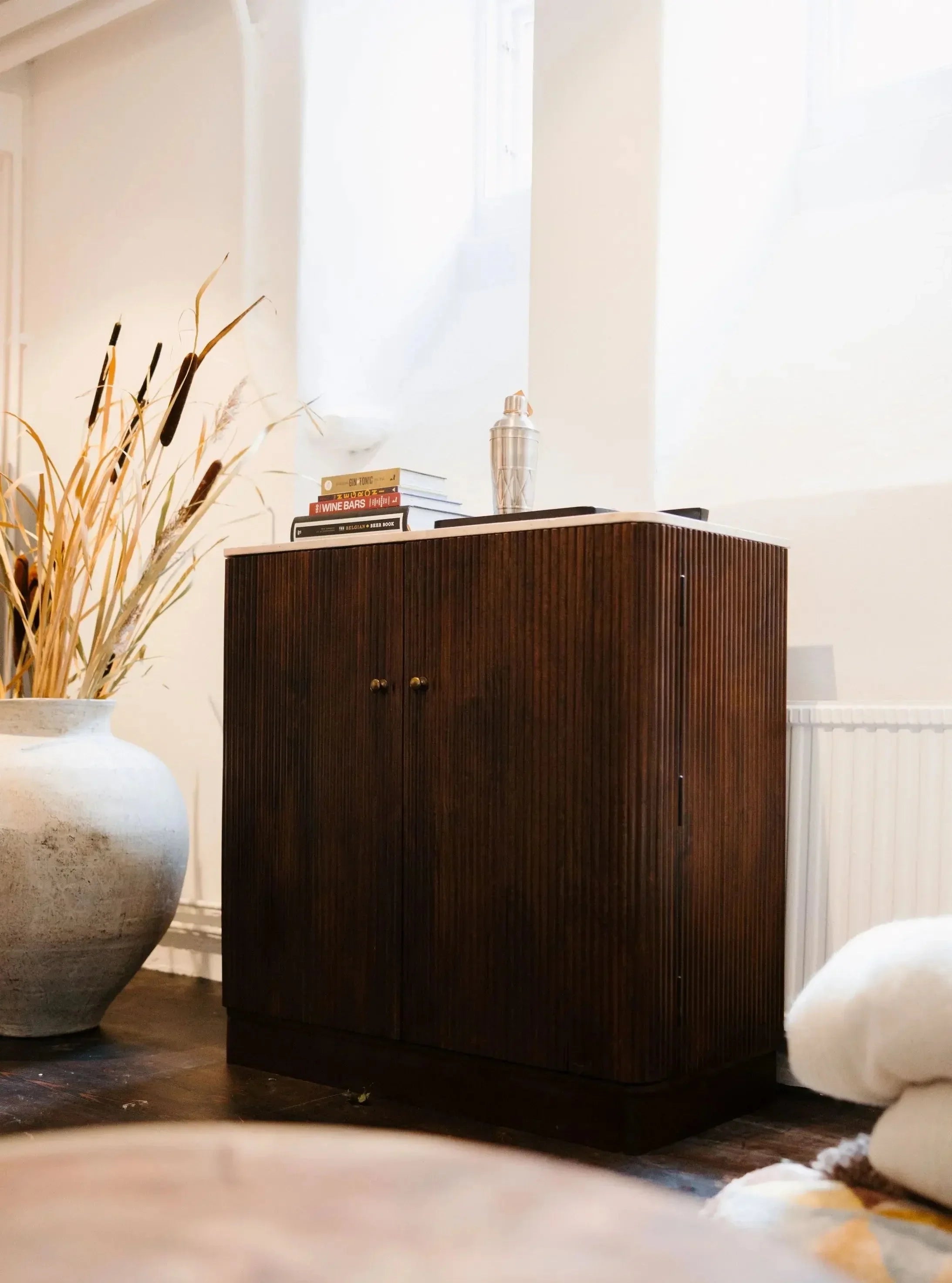 Brooklyn barskap med sokkel fanger essensen av eleganse fra midten av århundret, inspirert av de ikoniske designene fra 1950- og 60-tallet. Dette eksklusive utstillingsmøblet kjennetegnes av raffinerte ribbedetaljer og omhyggelige håndverk, noe som gjør det til et iøynefallende tilskudd til ethvert sofistikert interiør.