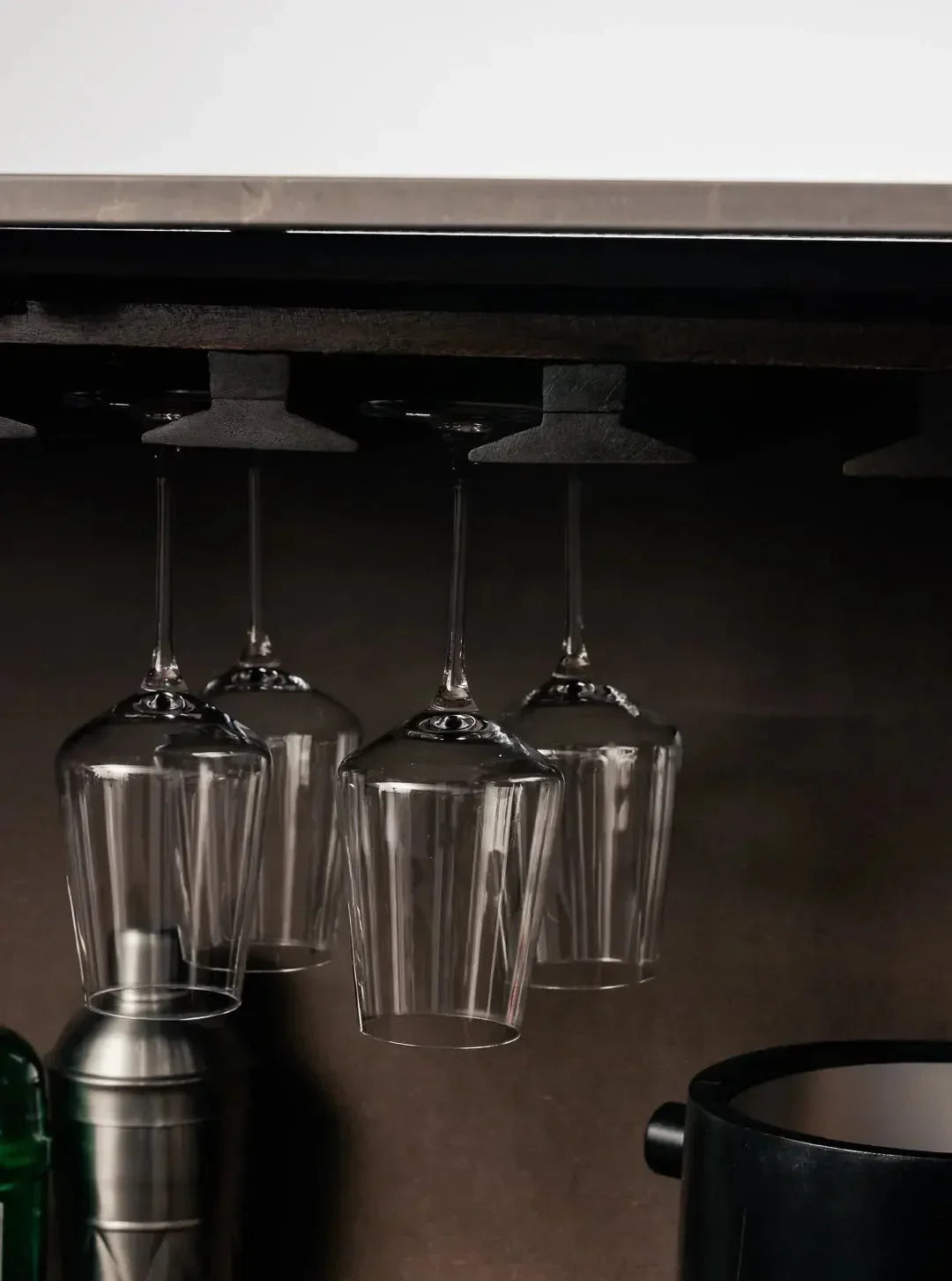 5 skyvemekanismer designet for elegant visning og oppbevaring av vinglass.