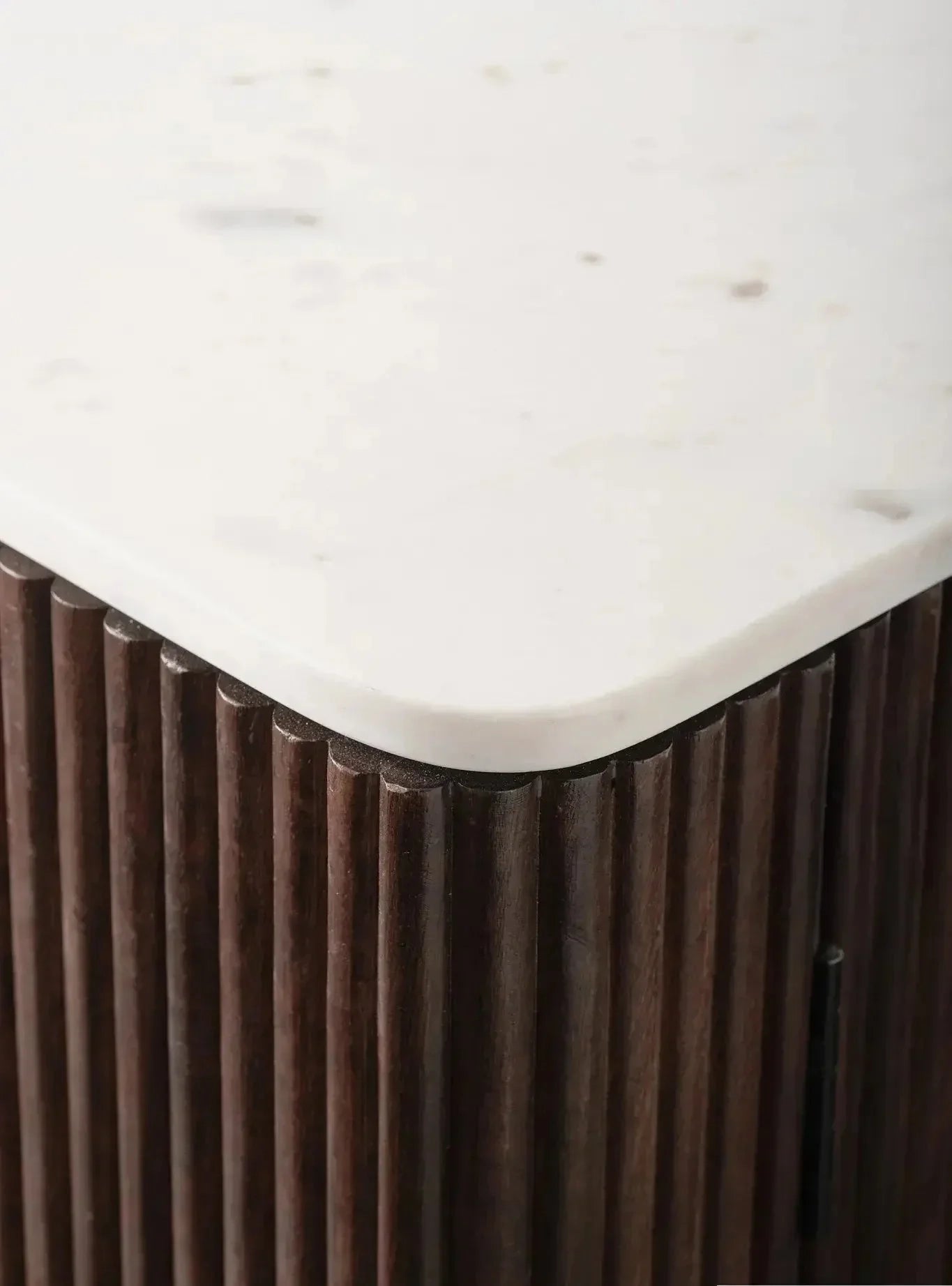 Skapet er toppet med en marmorplate, tilgjengelig i et utvalg av eksklusive finisher!
