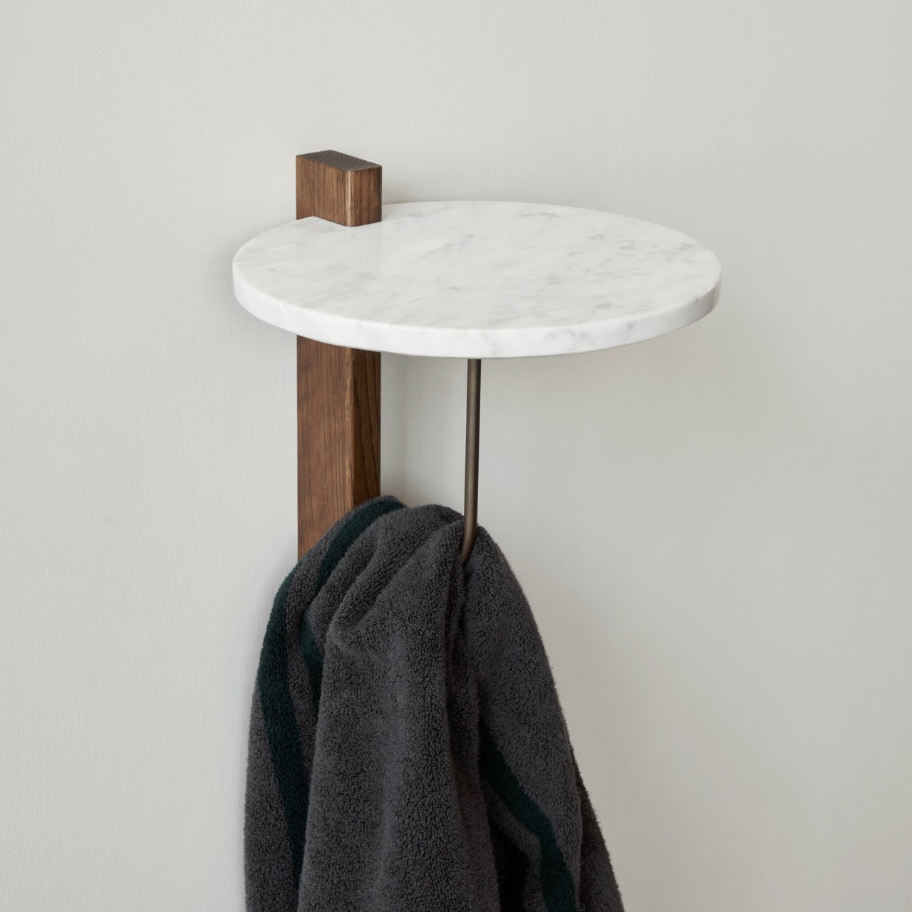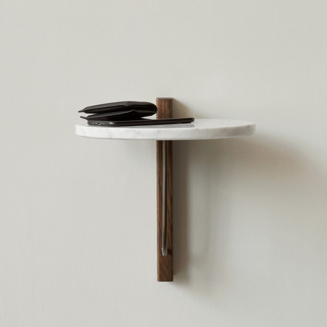Gi soverommet, gangen eller lesekroken et stilrent løft! I hyllen Corbel Shelf gir bruken av marmor, mørkbeiset eik og messing en ren stoppeffekt. Designet er laget av designstudioet Krøyer-Sætter-Lassen, med referanser til arkitektoniske braketter brukt for å støtte opp strukturer, gjerne i tre eller stein. Hyllen er den perfekte lille detaljen, spesielt når du har begrenset med plass.