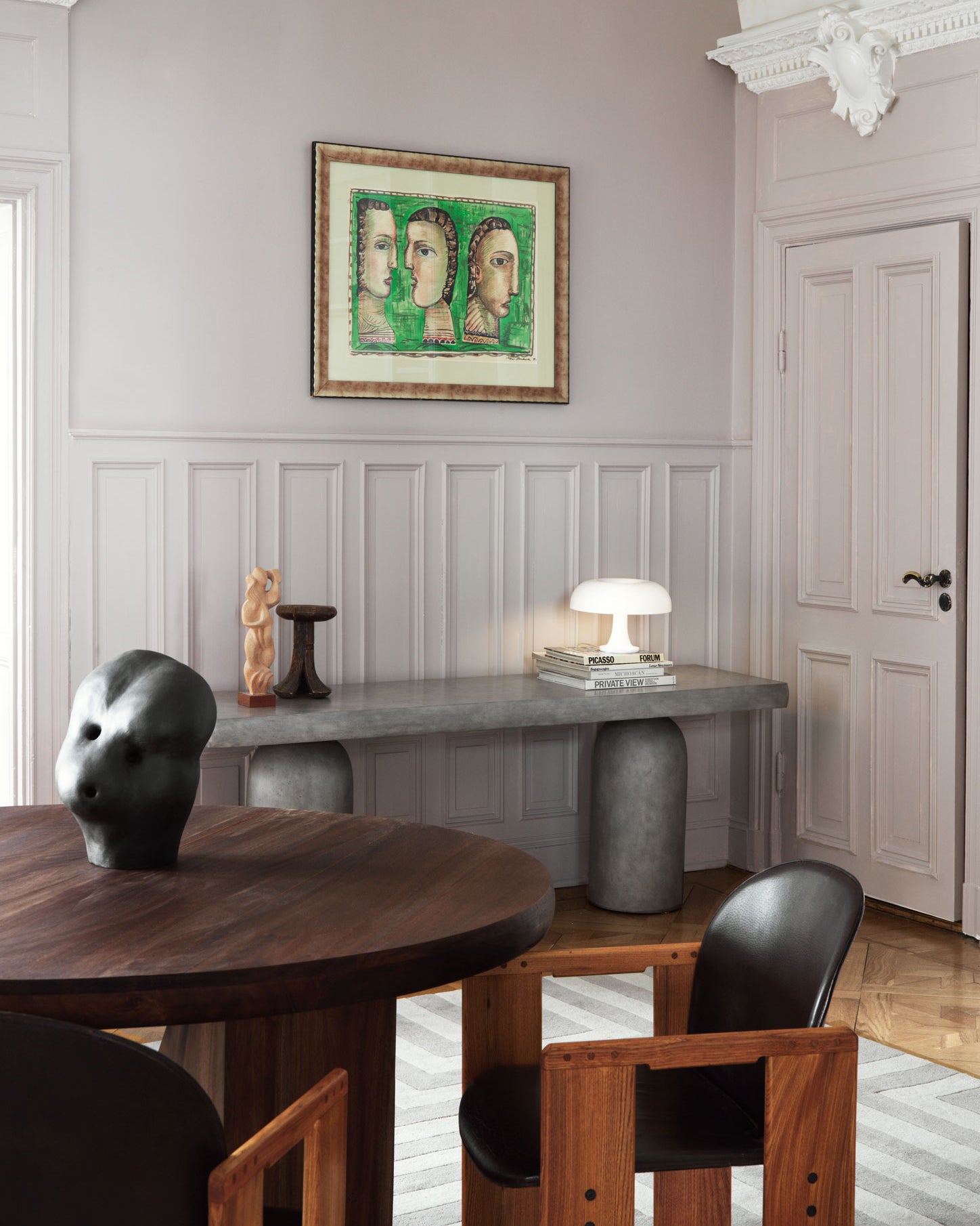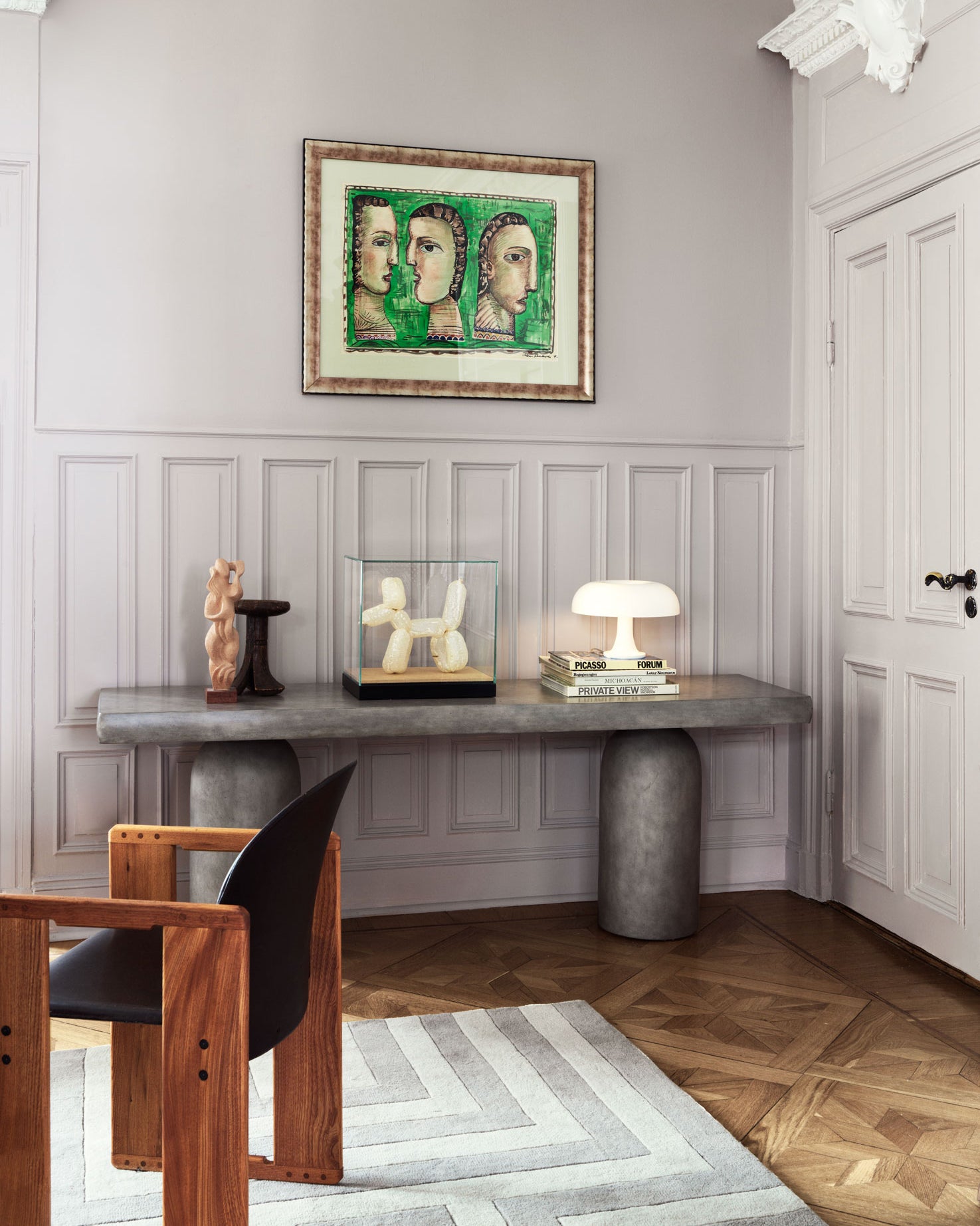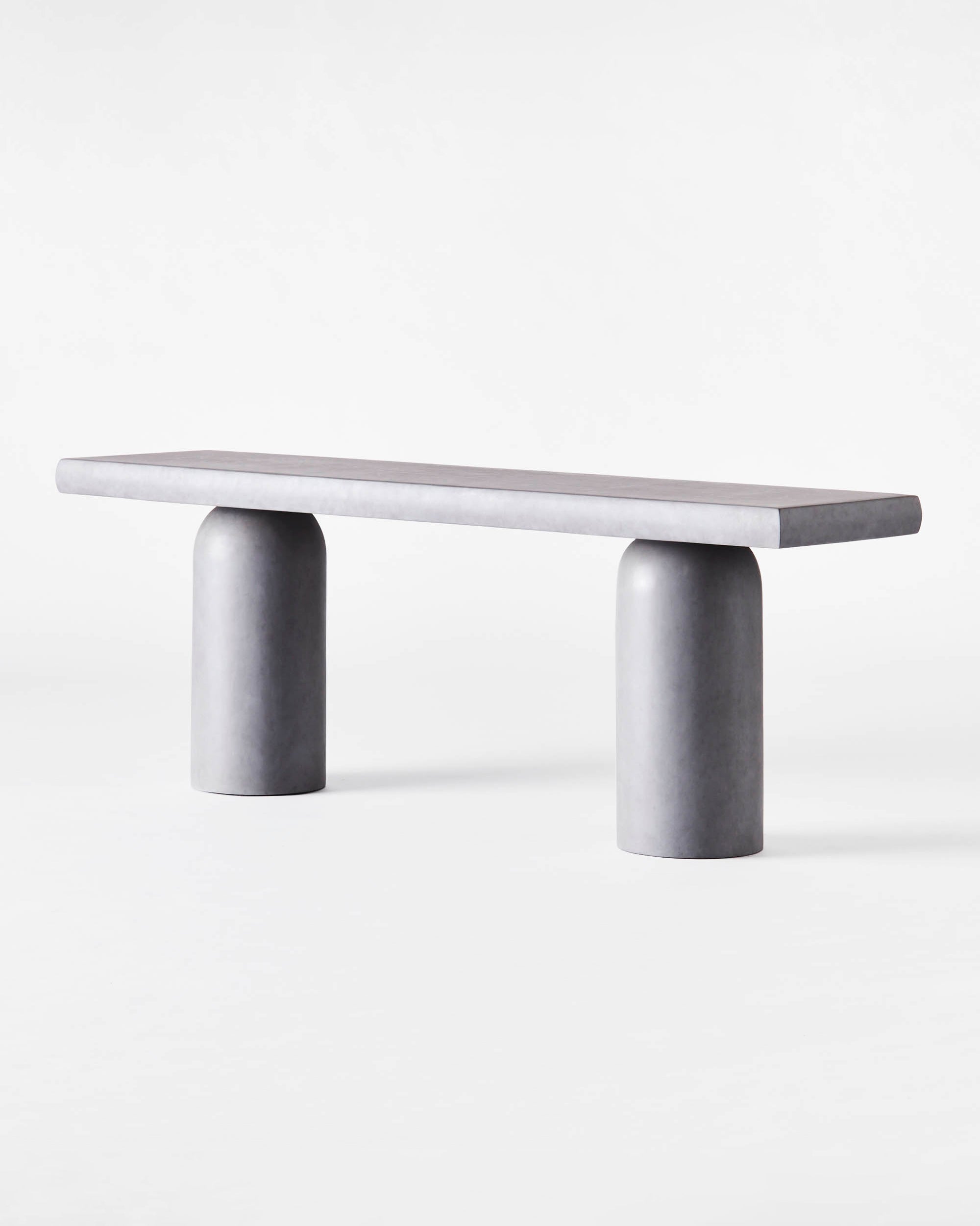 Konsollbordet har et design som kan oppfattes som av betong. Under malingen og det beskyttende laget av polyuretanharpiks er en ramme av mahogni og kryssfiner skjult. Totalt syv trinn må til for å oppnå ønsket betongutseende. Bordet med sine skulpturelle former gjør det til et perfekt tillegg i det moderne hjemmet. Den kan plasseres i mange rom som stuen, soverommet eller gangen.