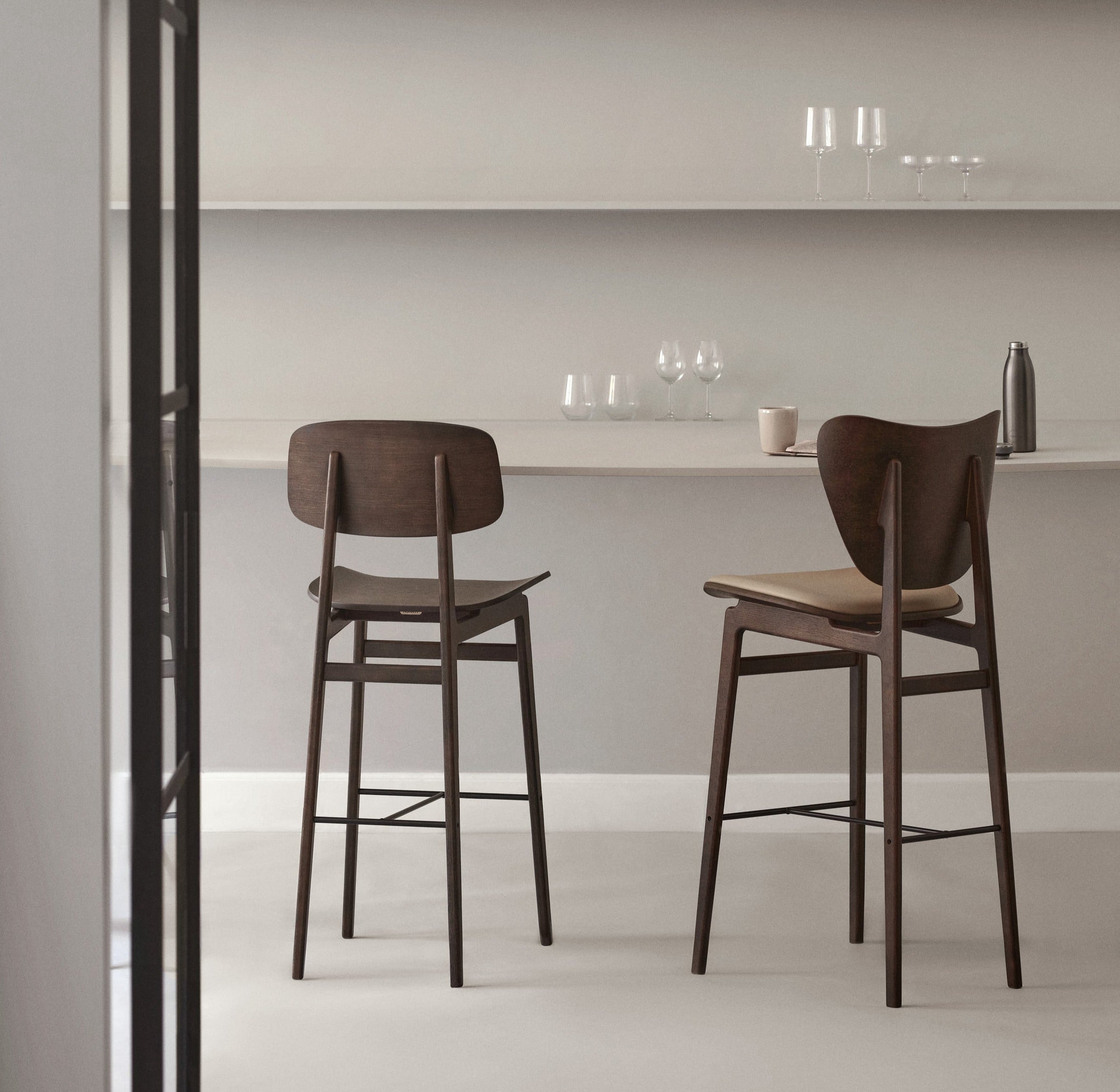 Med en lett buet rygg med samme myke kurve som Elephant-serien og en skulpturell trebase, tar Elephant Bar Chair komforten til et høyere nivå.