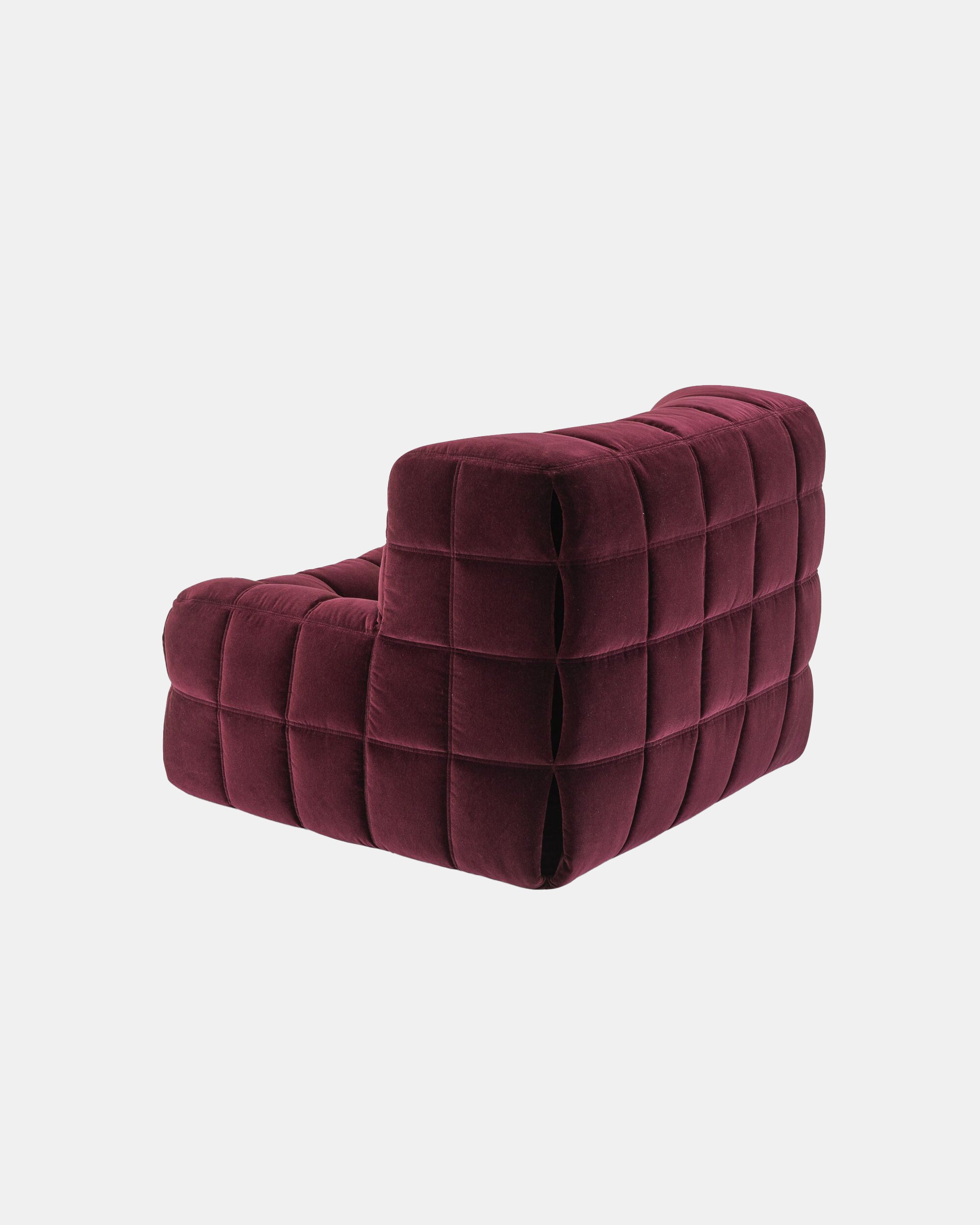 Med sine generøse former og avrundede silhuett inviterer Kashima til å synke ned og bli værende. Den skulpturelle utformingen gir et innbydende og beskyttende uttrykk, der rygg, armlener og sete flyter sømløst sammen til én helhetlig form.