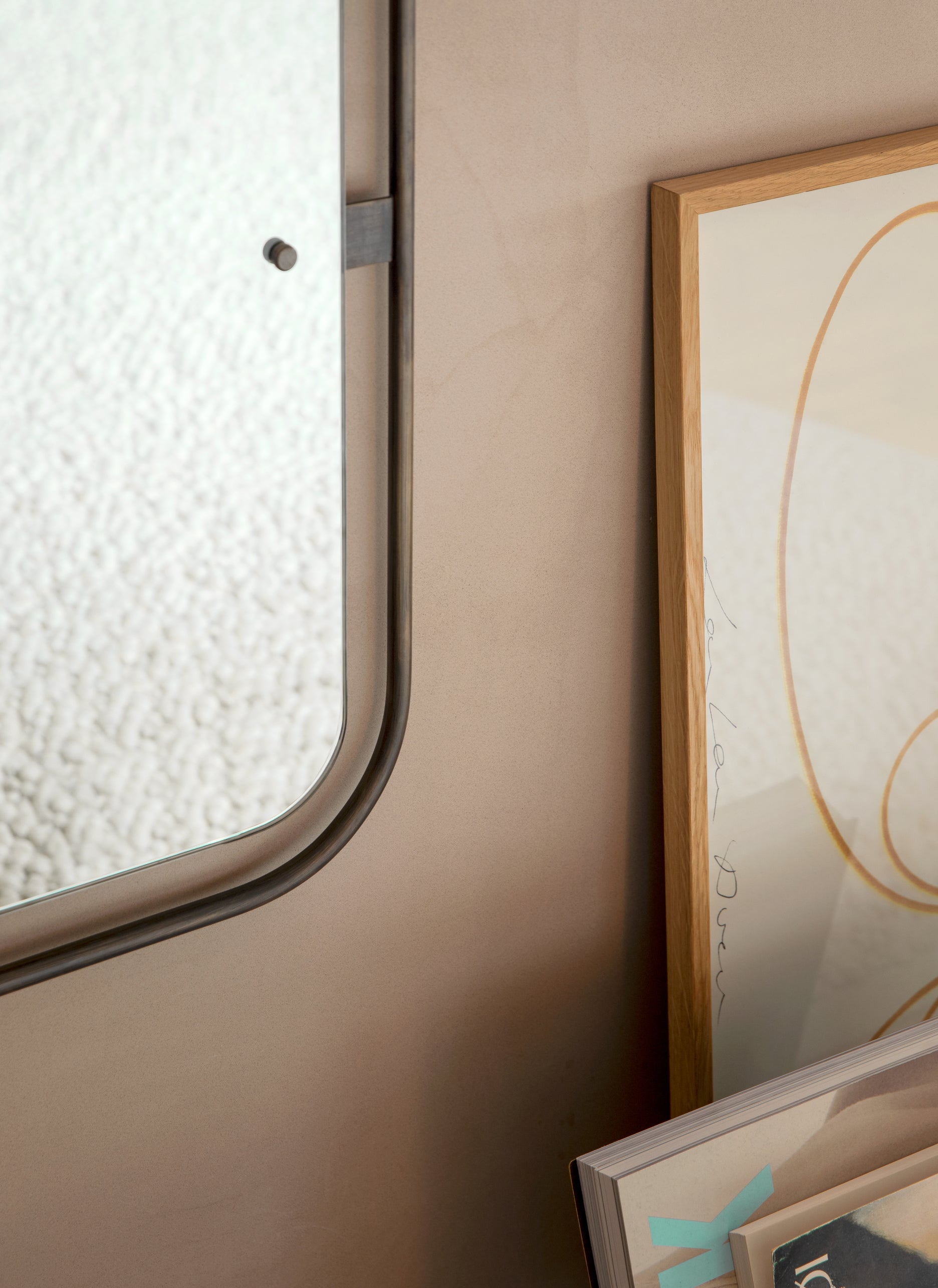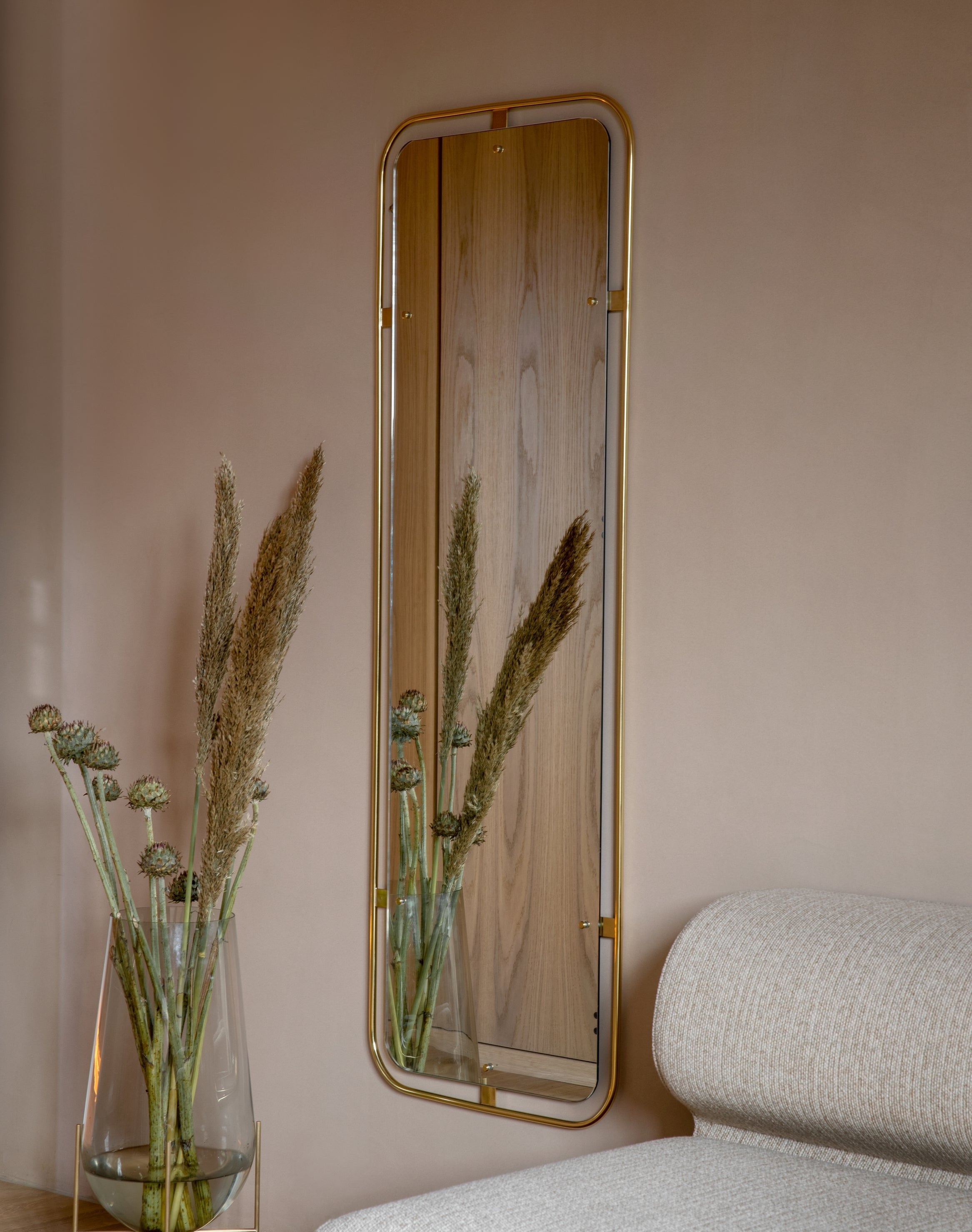 Når man ser på måten et bilde eller et maleri er innrammet på, undersøkte det københavnske designstudioet Krøyer-Sætter-Lassen hvordan en hel ramme kunne omgi et speil uten å gjemme glassets skjønnhet og refleksjon. Resultatet er Nimbus, et delikat enkelt speil i bronsert messing og lysreflekterende glass som definerer et rom med sin beroligende og sofistikerte runde form.