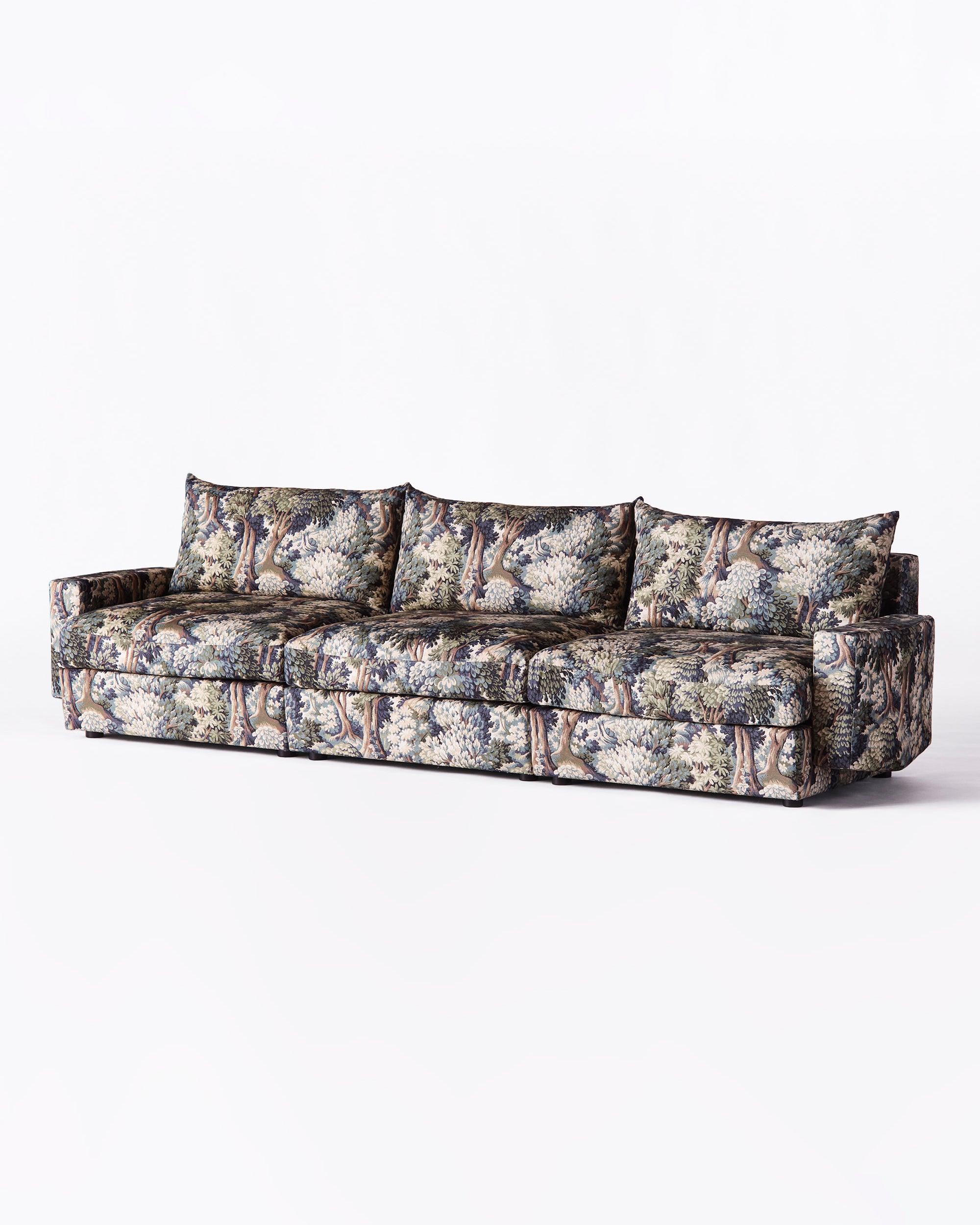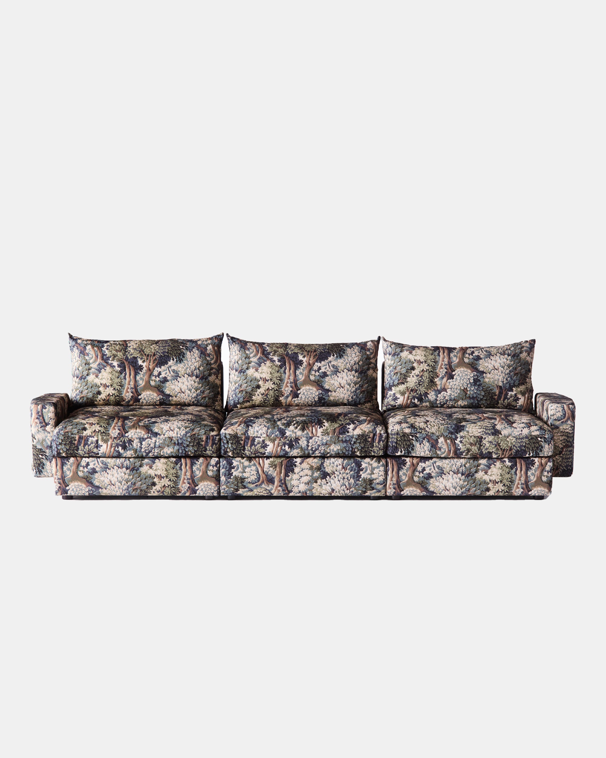 Laurel Sofa er en treseters sofa som kombinerer komfort og stil. Kledd i stoff fra Lauritzon med dype grønne nyanser og et vakkert mønster, blir den et blikkfang i rommet. Den elegante designen med myke puter passer sømløst inn i både moderne og klassiske interiører. Ideell for stuer eller loungeområder, tilbyr denne sofaen en perfekt blanding av holdbarhet og estetisk appell, noe som gjør den til et allsidig valg for ethvert hjem.
