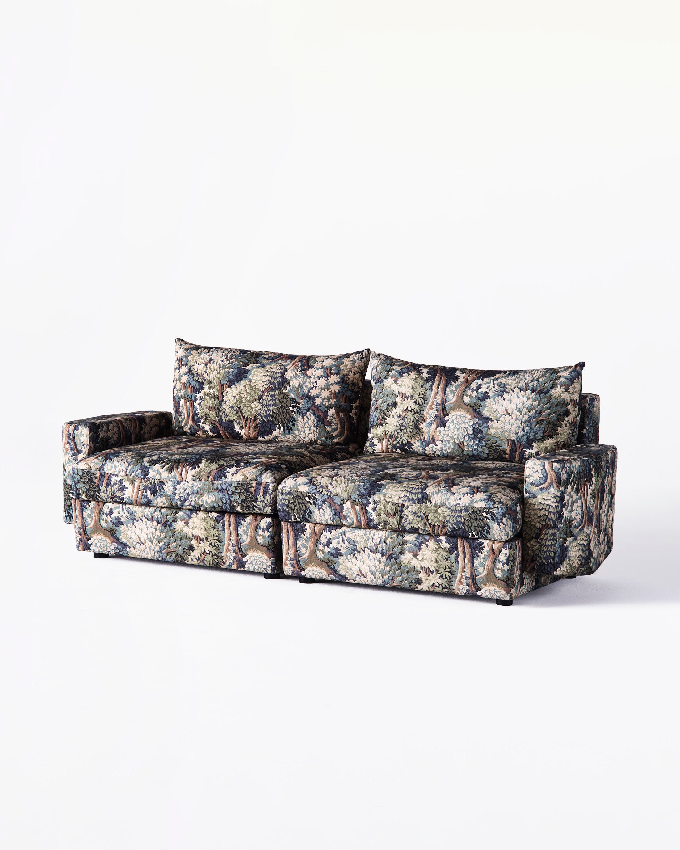 Laurel Sofa er en treseters sofa som kombinerer komfort og stil. Kledd i stoff fra Lauritzon med dype grønne nyanser og et vakkert mønster, blir den et blikkfang i rommet. Den elegante designen med myke puter passer sømløst inn i både moderne og klassiske interiører. Ideell for stuer eller loungeområder, tilbyr denne sofaen en perfekt blanding av holdbarhet og estetisk appell, noe som gjør den til et allsidig valg for ethvert hjem.