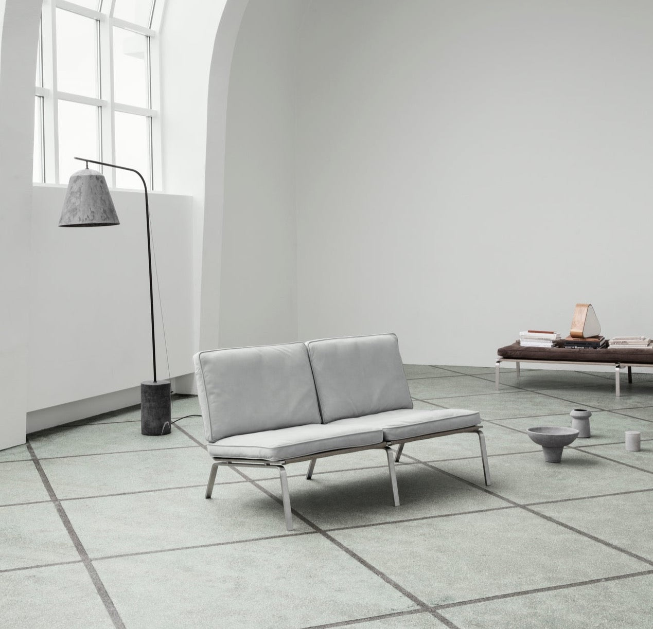 Ramme i rustfritt stål laget i Danmark, polstret i Polen