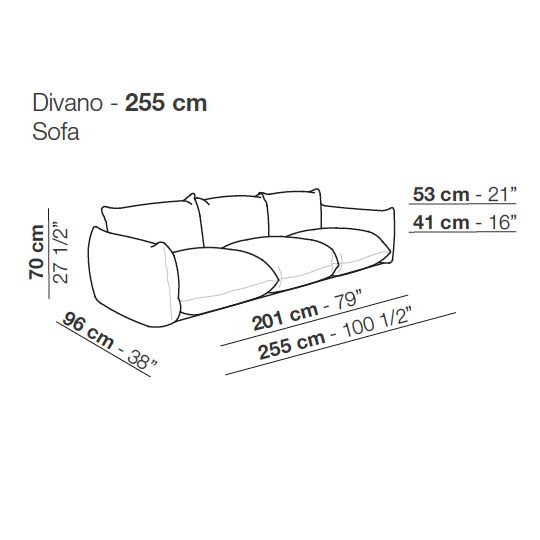 Sofaen har et stabilt rammeverk som består av metall og kryssfinèr. Konstruksjonen er laget på en måte som gjør at de store deilige putene settes enkelt i en metallrørramme som gir stivhet og motstand ved bruk av sofaen.