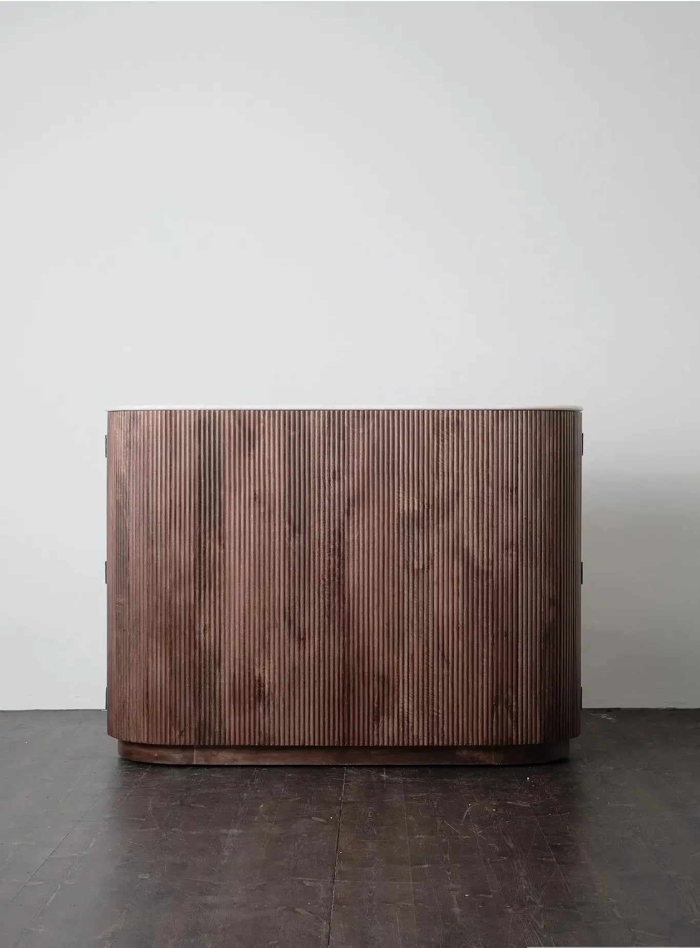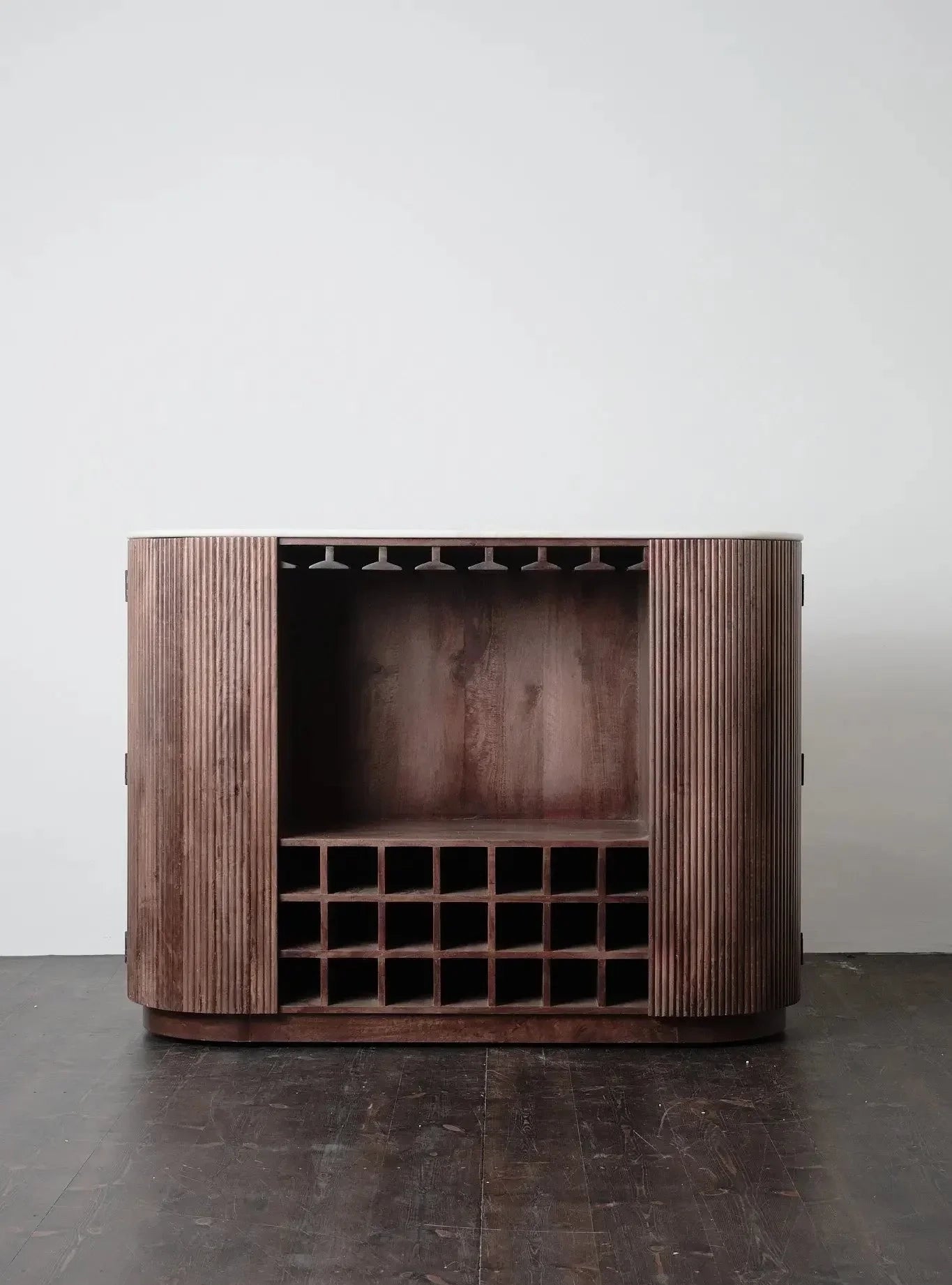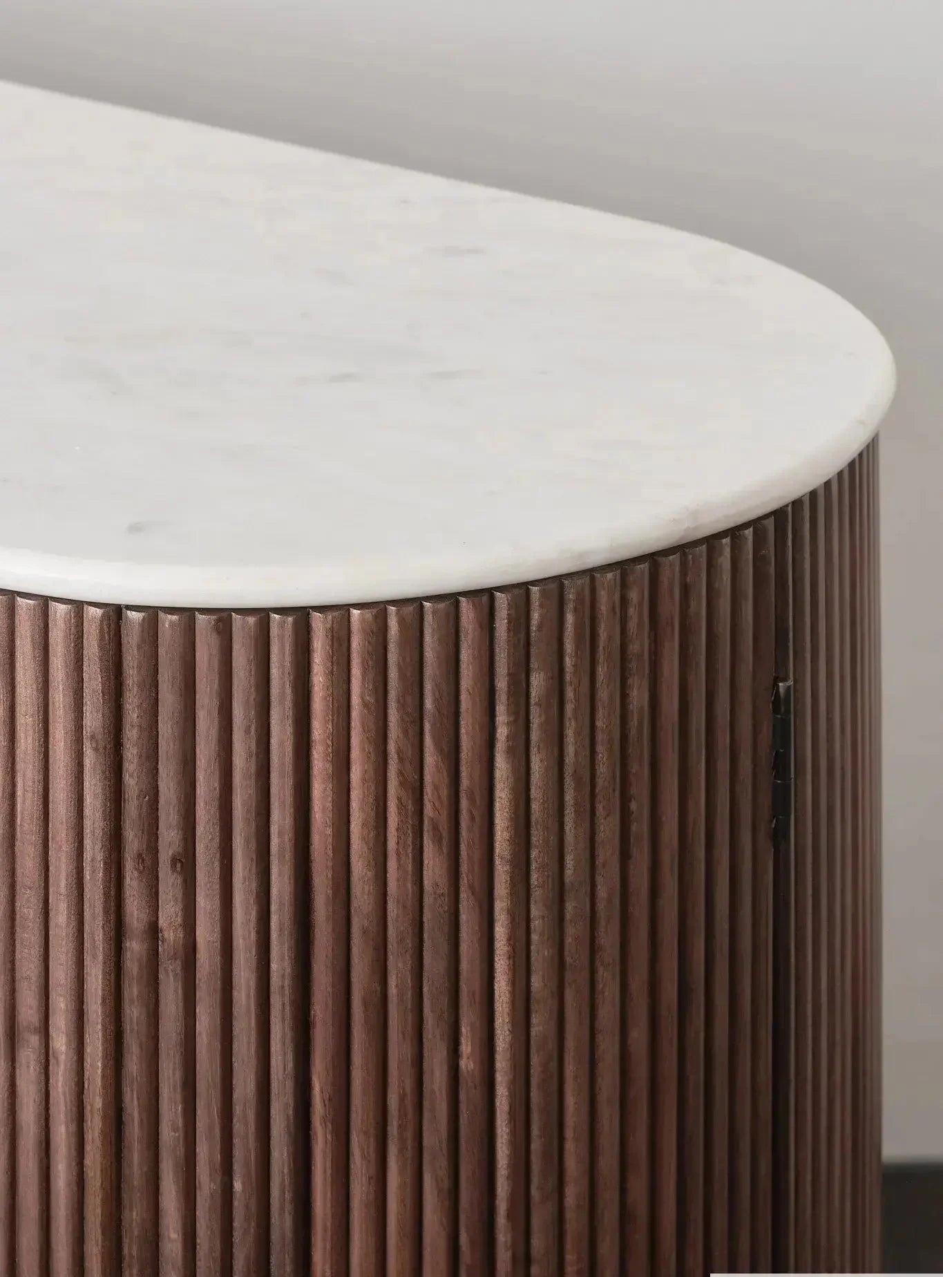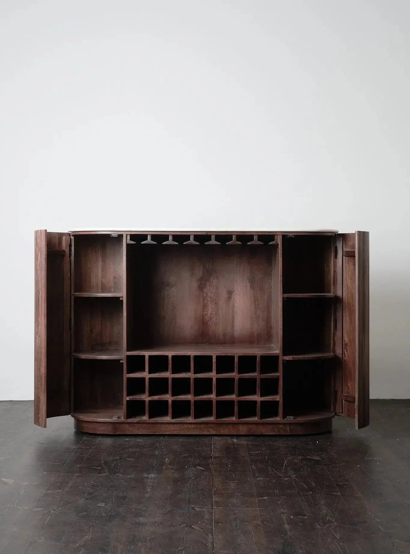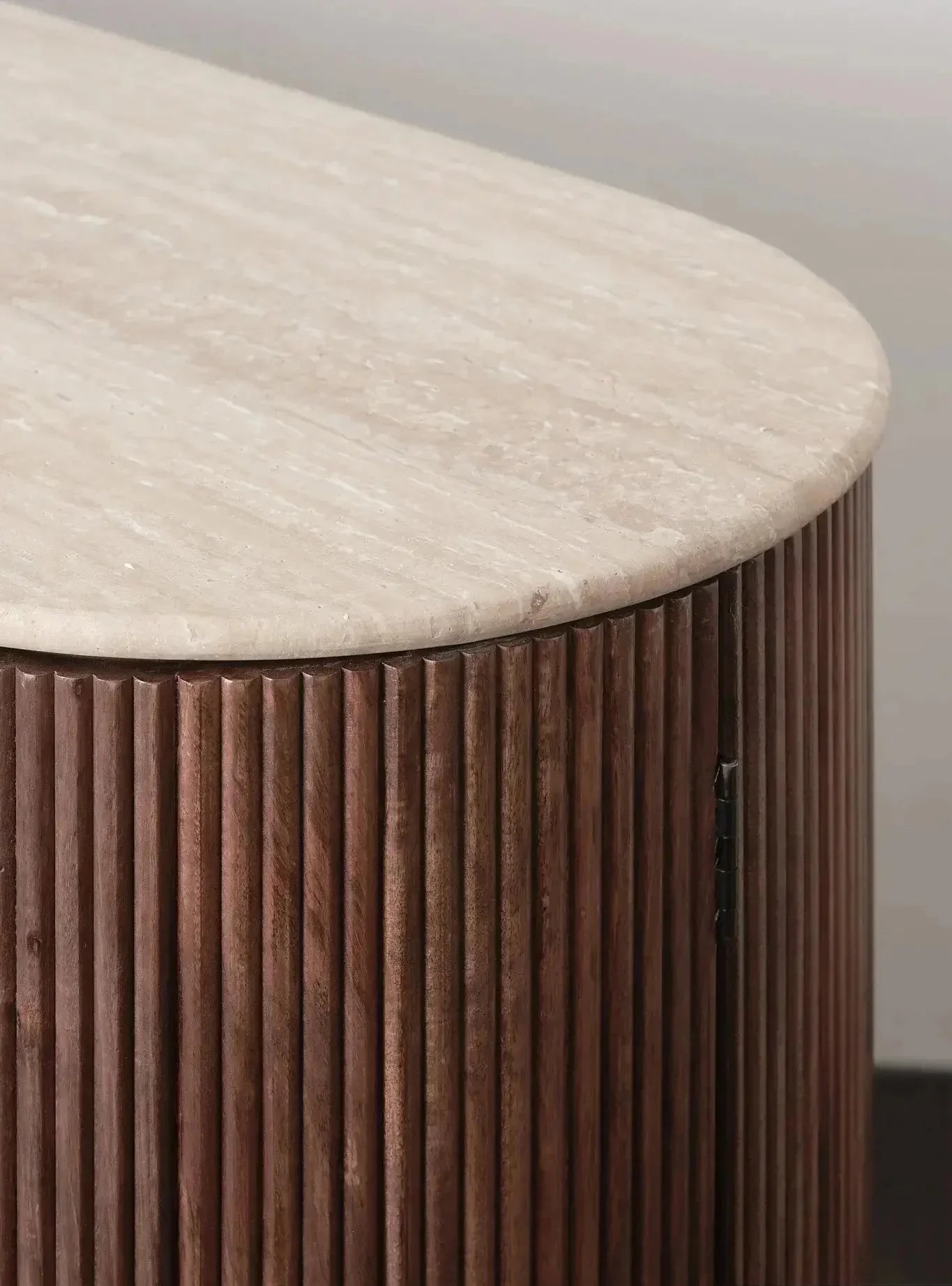 Memphis-barskapet kombinerer den naturlige skjønnheten til akasietre med den raffinerte luksusen til marmor. De dristige proporsjonene, avrundede dørene og de nøye håndlagde detaljene skaper et design som føles både tidløst og moderne. Enten du velger travertinbeige eller hvit marmor, setter Memphis et ekstraordinært preg på ethvert rom.