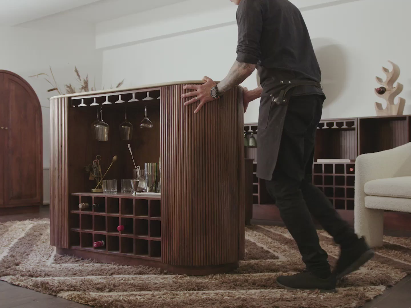 Memphis-barskapet er designet for å romme en omfattende samling av vin, glass og barutstyr: