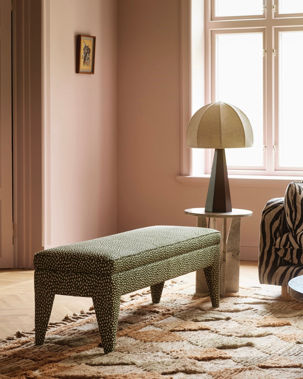 Otto Collection er en allsidig serie av statement-møbler, perfekt for å tilføre karakter til ethvert rom. Begge varianter er nøye håndlaget og kledd i Cathy Nordströms håndtrykte tekstiler, tilgjengelig i to fengslende mønstre: livlige Spotty Moss og varme Florence Tobacco.