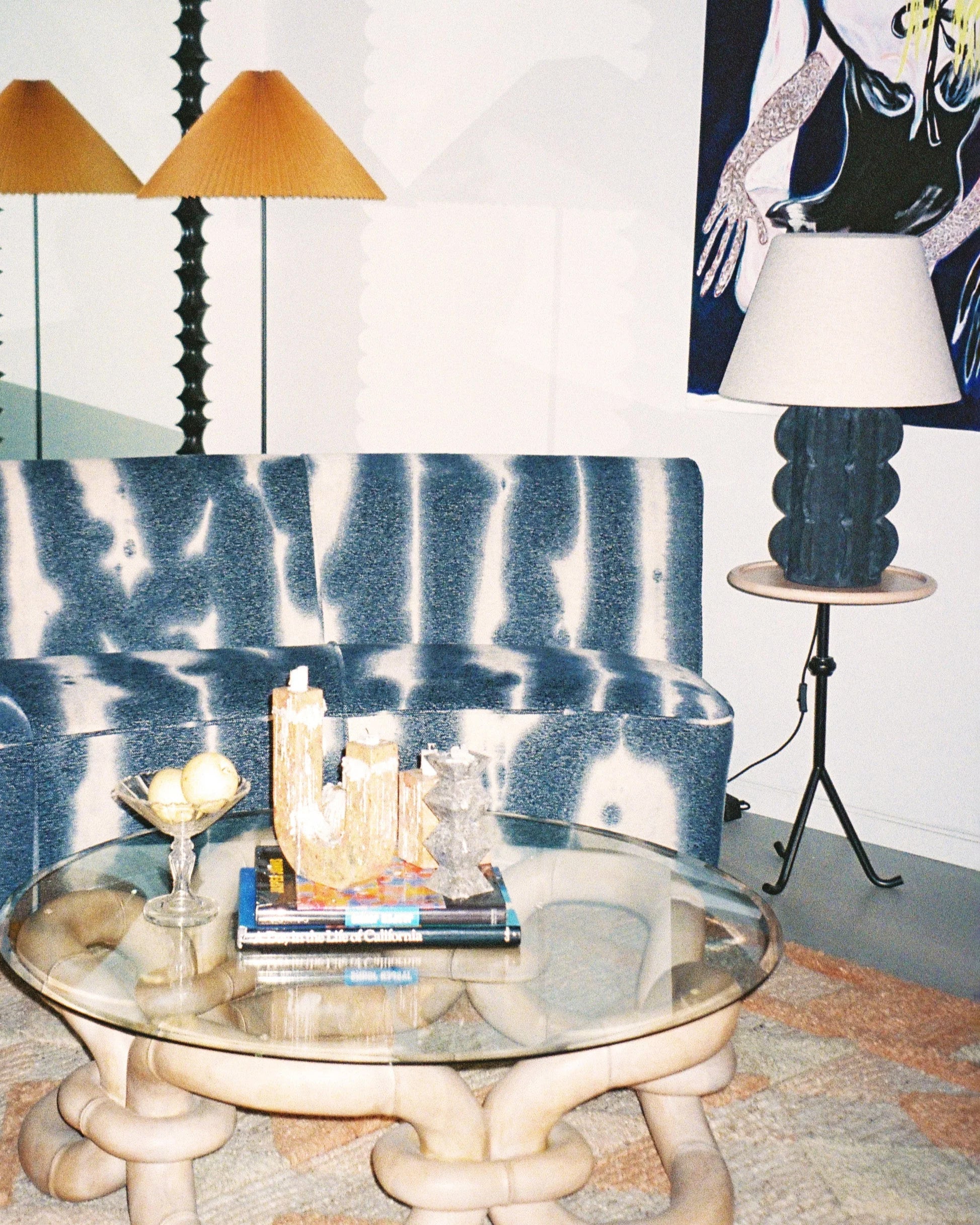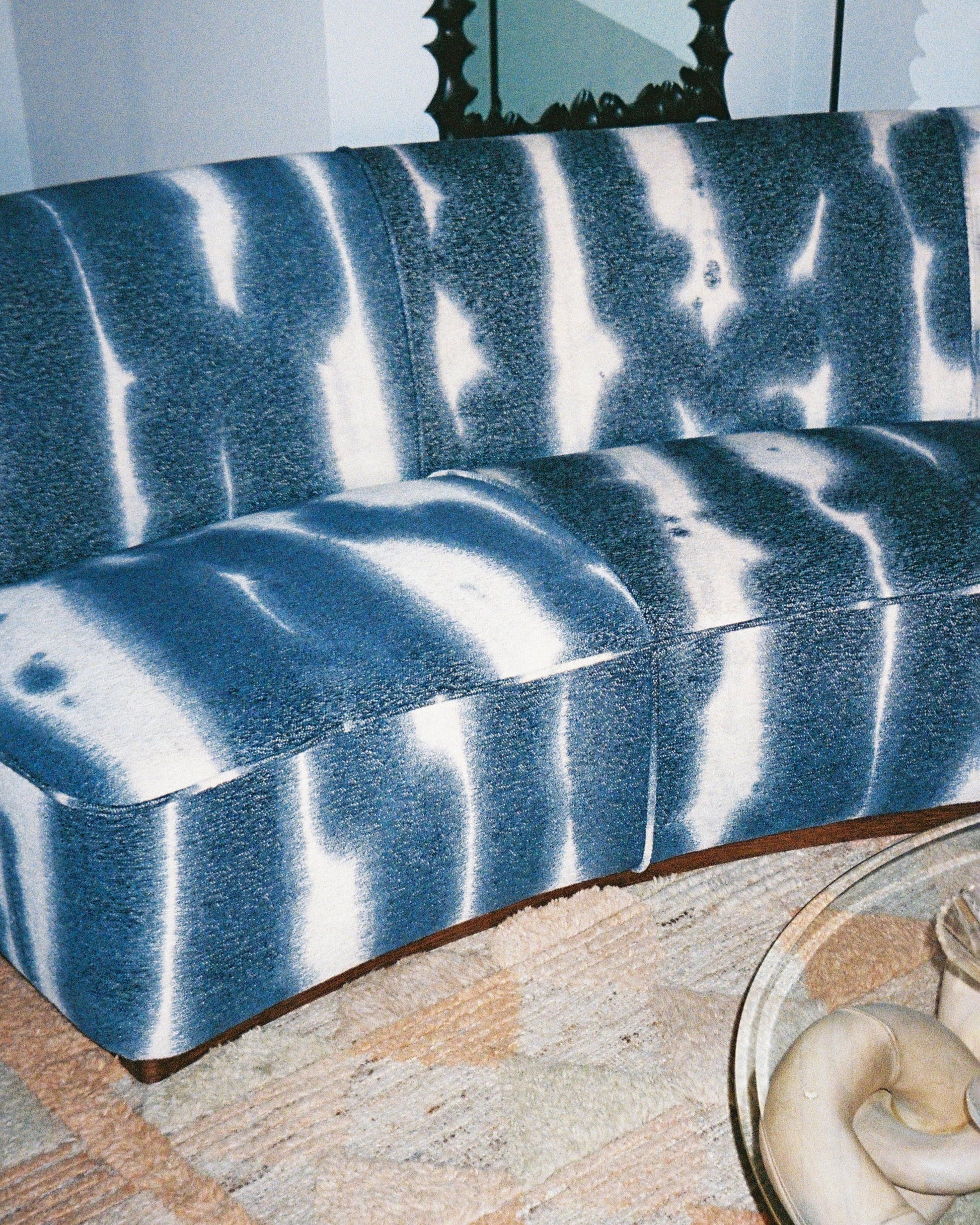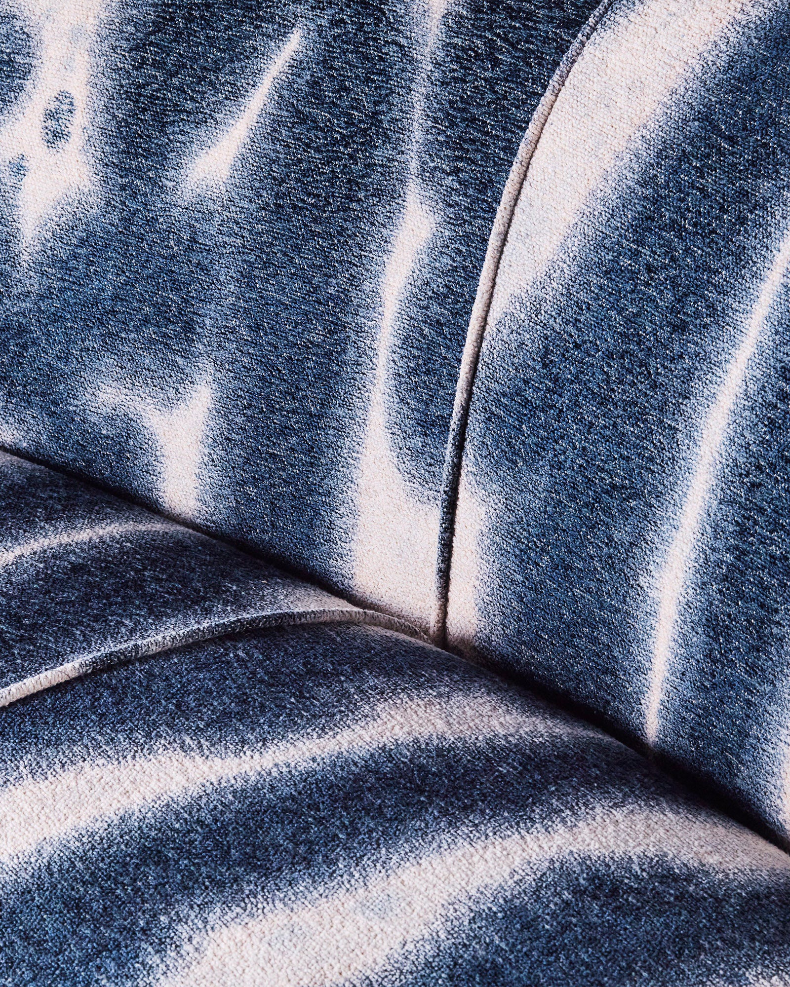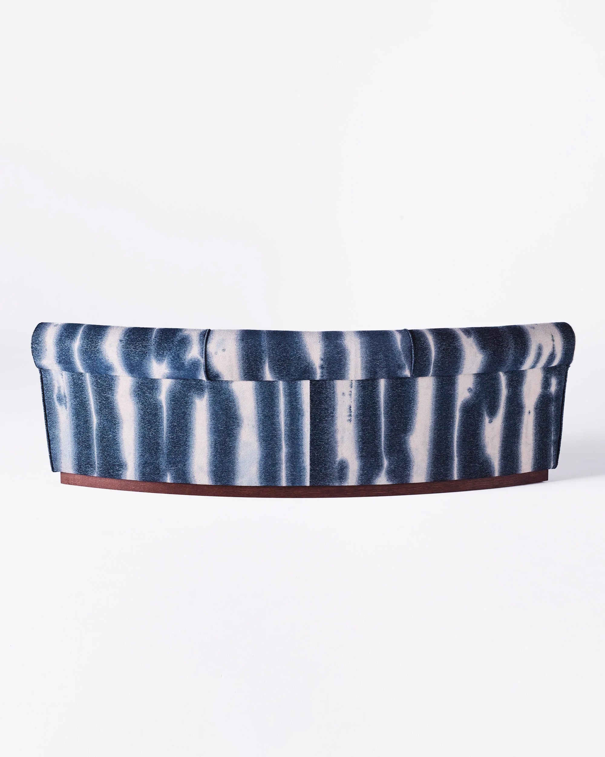 Paris Sofa er en sofistikert, buet design av Elias Svedberg (1913–1987), relansert av Dusty Deco i 2023. Med sin solide ramme i bøk, lag med fjær og høykvalitets skum, kombinerer den stabilitet med dyp komfort. Denne utgaven er trukket i et abstrakt, spraymønstret chenillestoff som tilfører en dristig, men elegant karakter til den tidløse silhuetten.