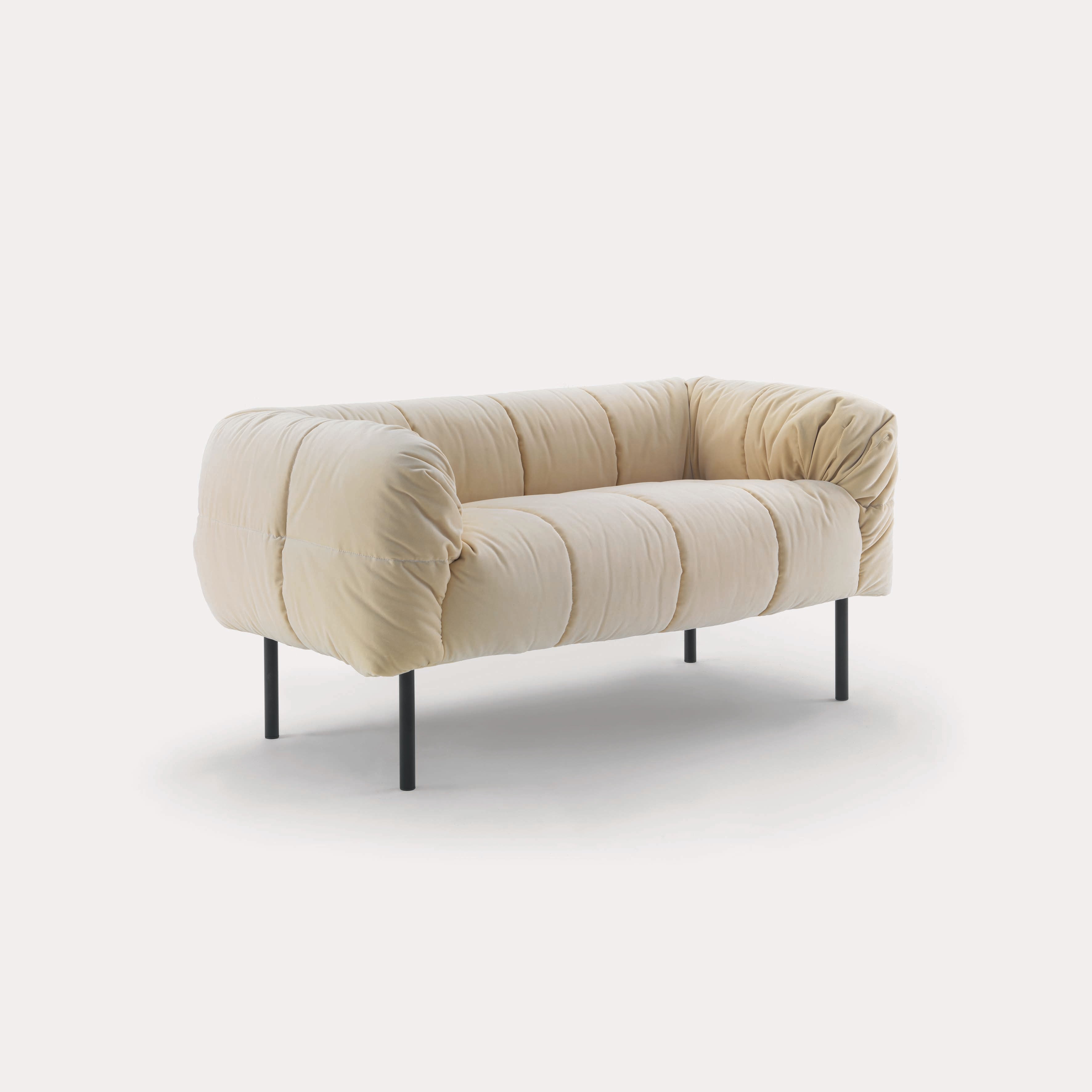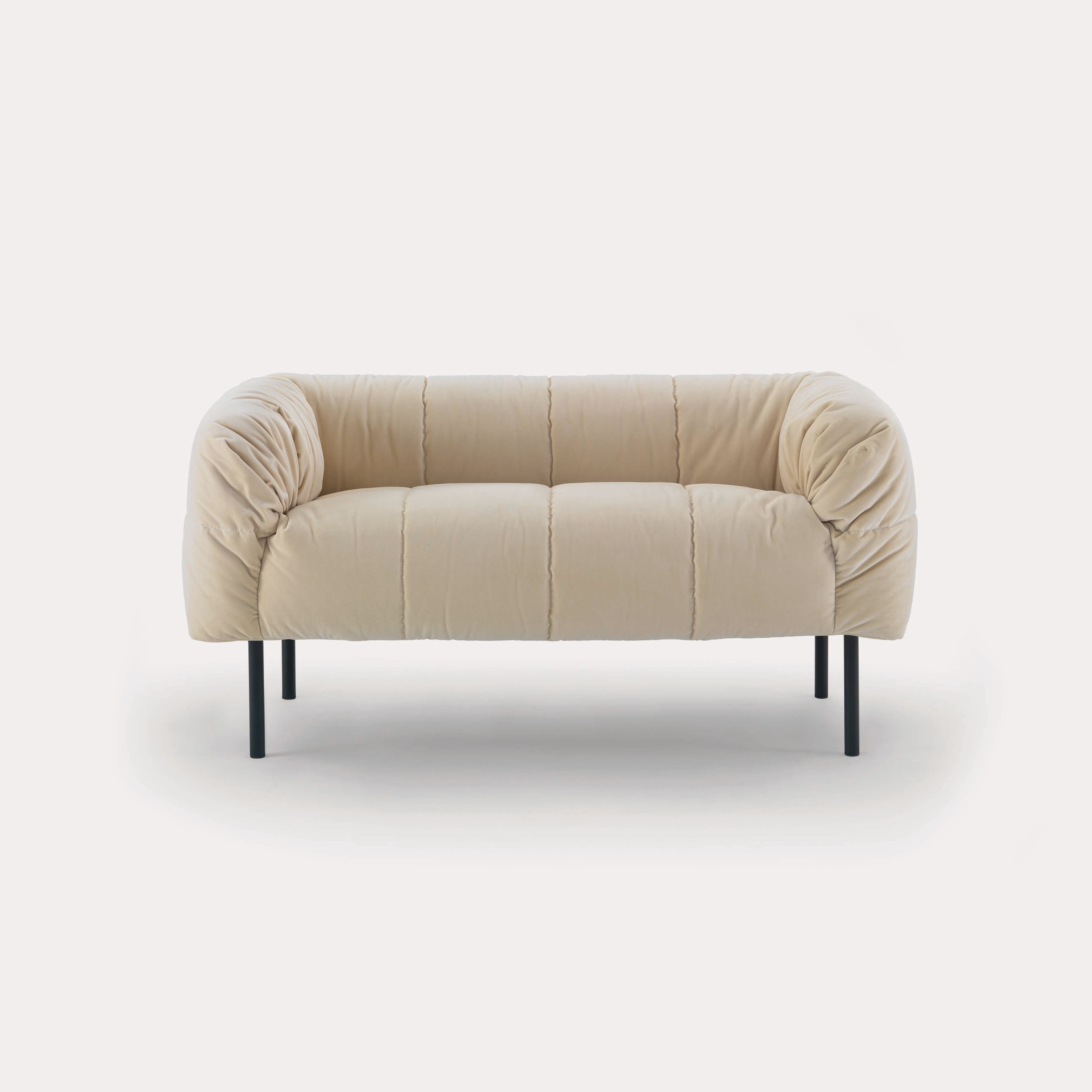 Sofaen har en treramme, avtakbart møbeltrekk som kan velges i flere forskjellige farger og strukturer, samt høye, pene metallben som gir et luftig inntrykk. Med sine myke former og tidløse uttrykk er Pecorelle en komfortabel og elegant sofa som passer like bra i stuen som på kontoret.