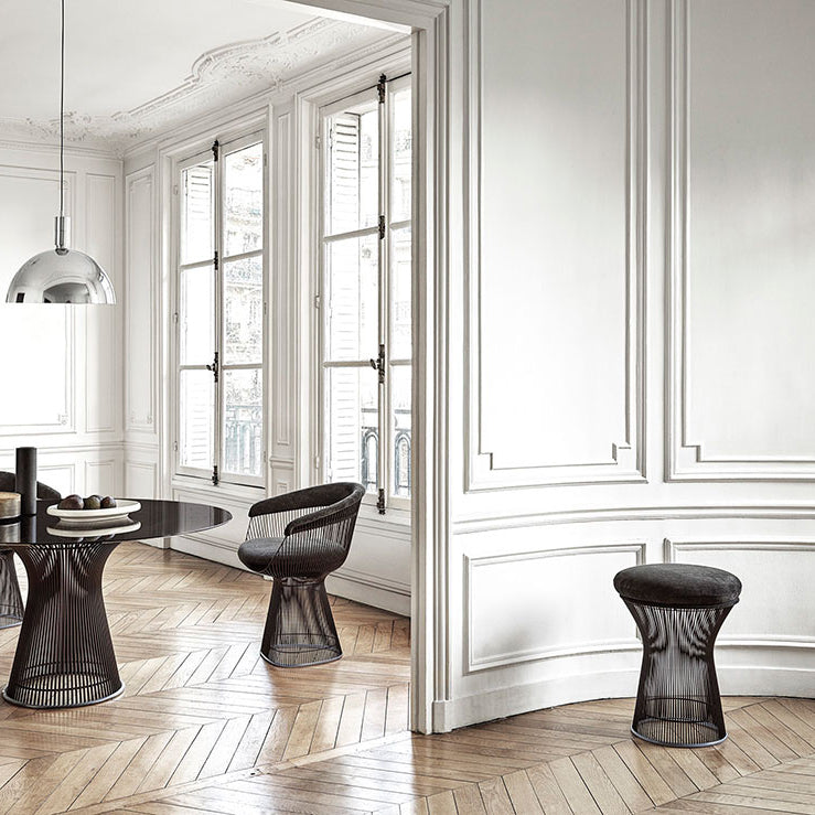 Stolen kan brukes både som spisestol og ved skrivebordet, og den har et komfortabelt polstret sete. Kolleksjonen inkluderer også en sidestol, krakk og spise- og salongbord. Platner Arm Chair er en utrolig komfortabel stol med et mykt uttrykk. Plasseres med fordel sammen med flere lignende stoler rundt Platner Dining Table. Stolen er en favoritt hos oss på Nordiska Galleriet, og vi bruker den gjerne i utstillingen vår. Takket være det nøkterne uttrykket og den høye komfortfaktoren er Platner Side Chair en moderne klassiker.