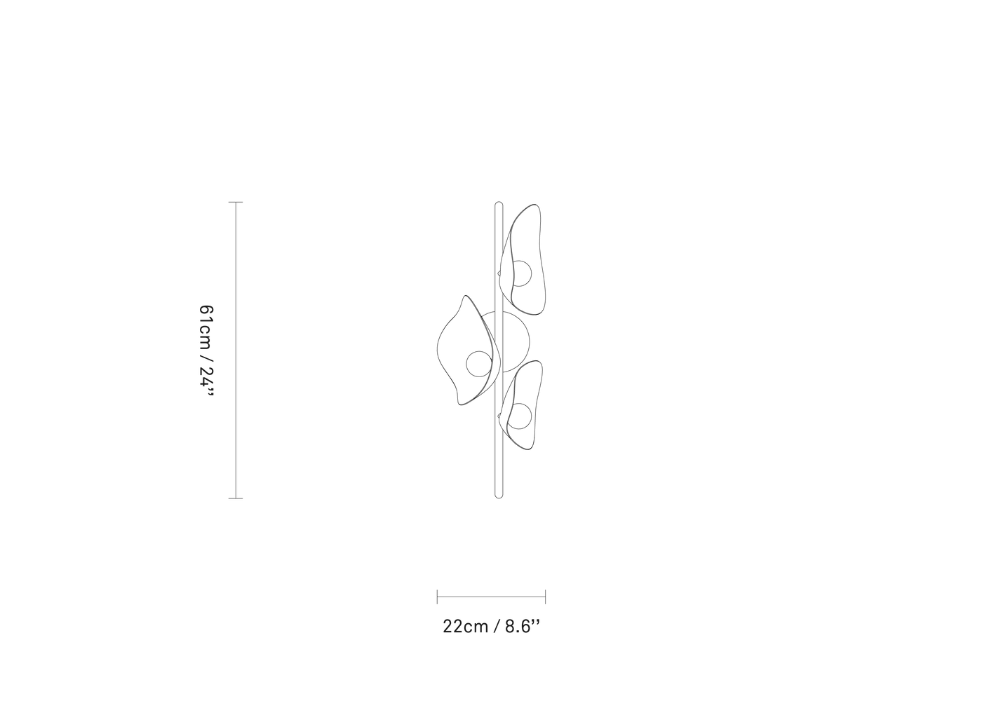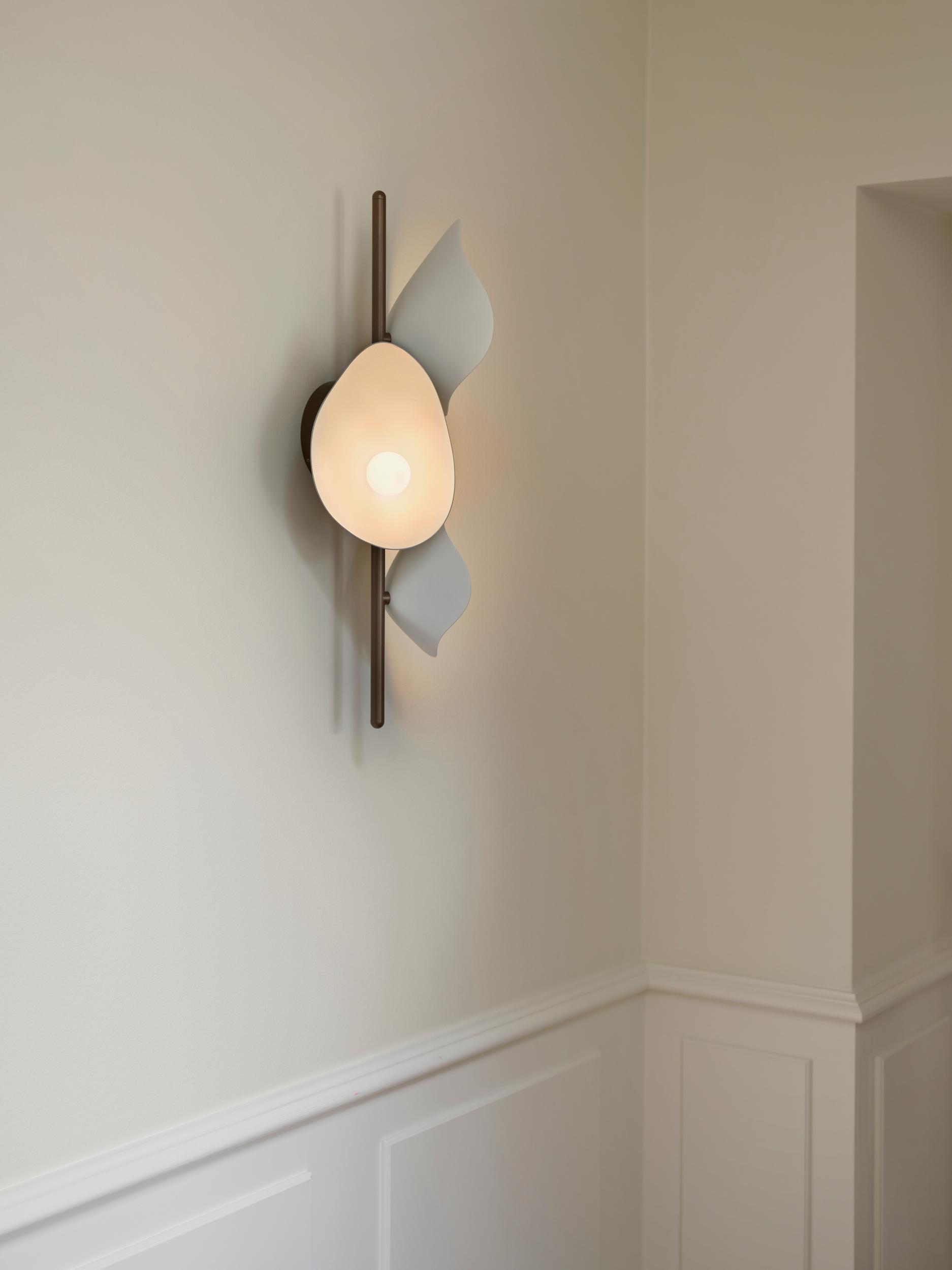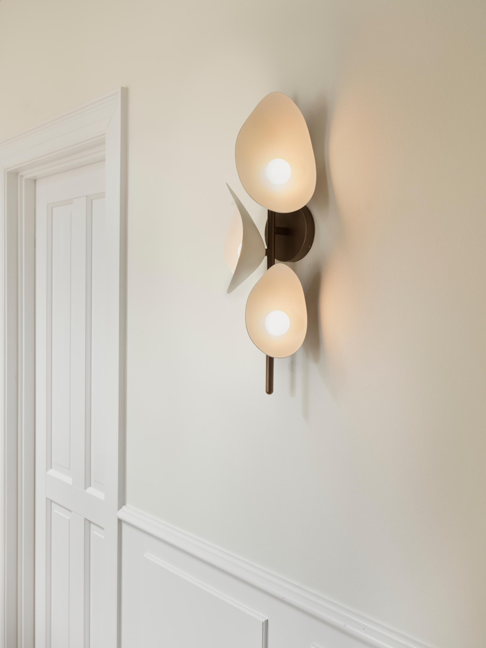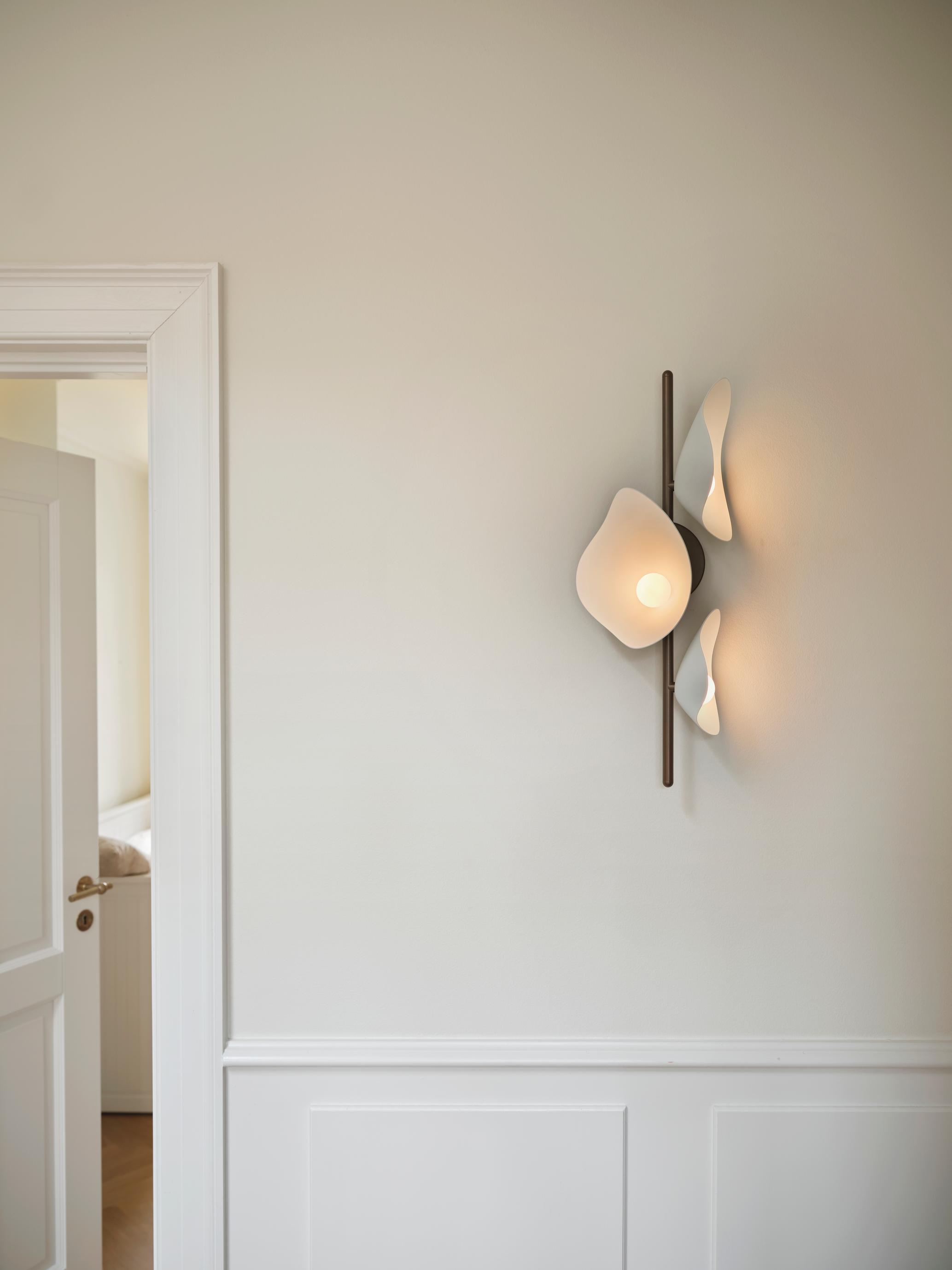 Florii 3 vegglampe sitt skulpturelle uttrykk egner seg godt til haller og bad, hvor det rammer inn speilet med sin grasiøse tilstedeværelse og med den integrerte LED-en som gir effektiv og langvarig belysning som enkelt kan skiftes ut uten verktøy.