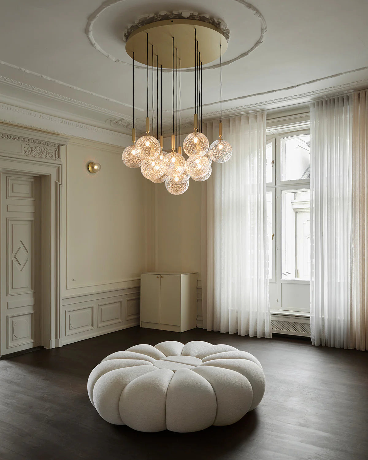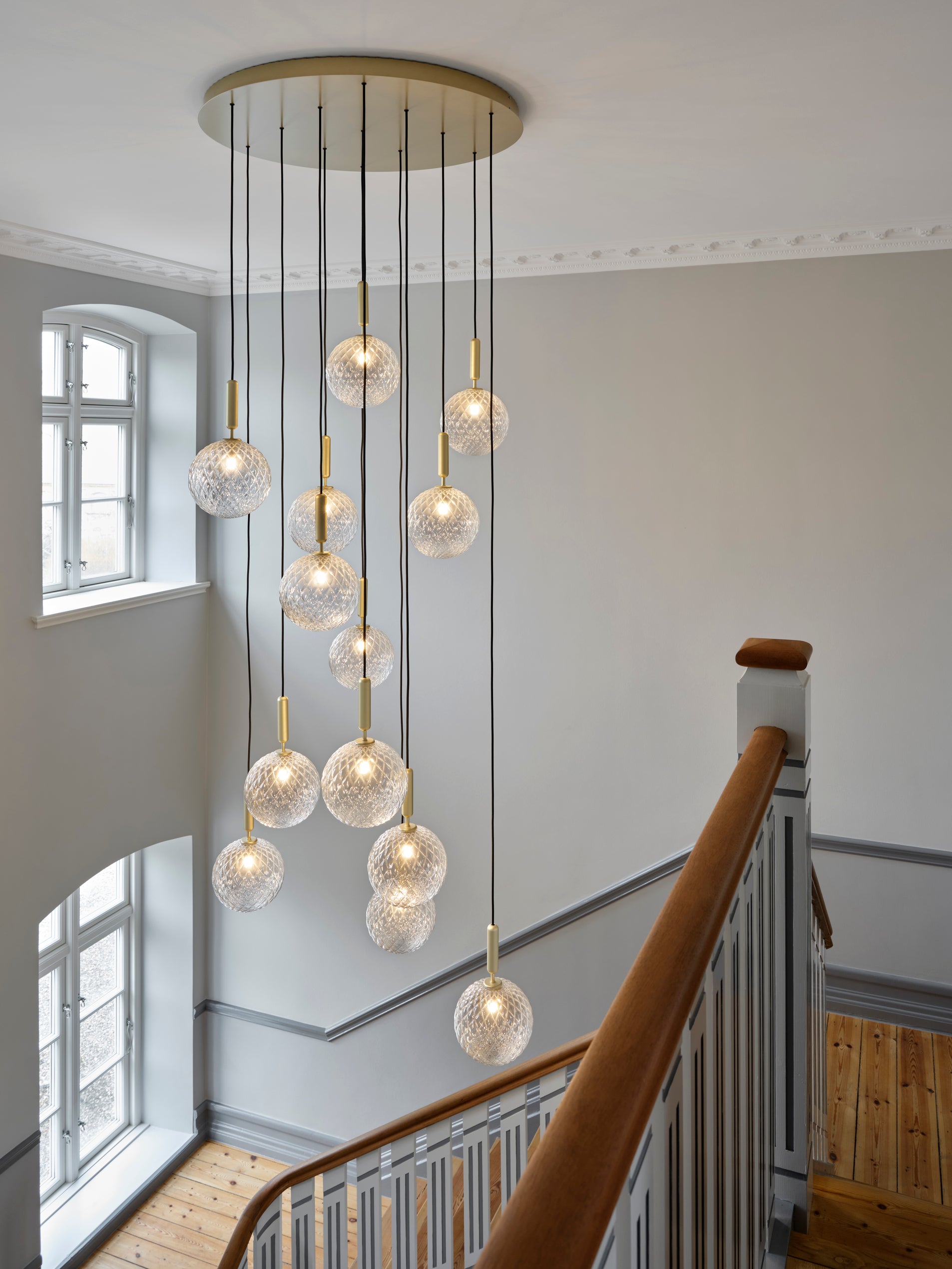Miira 13 Large lysekronen egner seg som midtpunkt i en stor hall, hengende over en trapp eller i rom med stor takhøyde.
