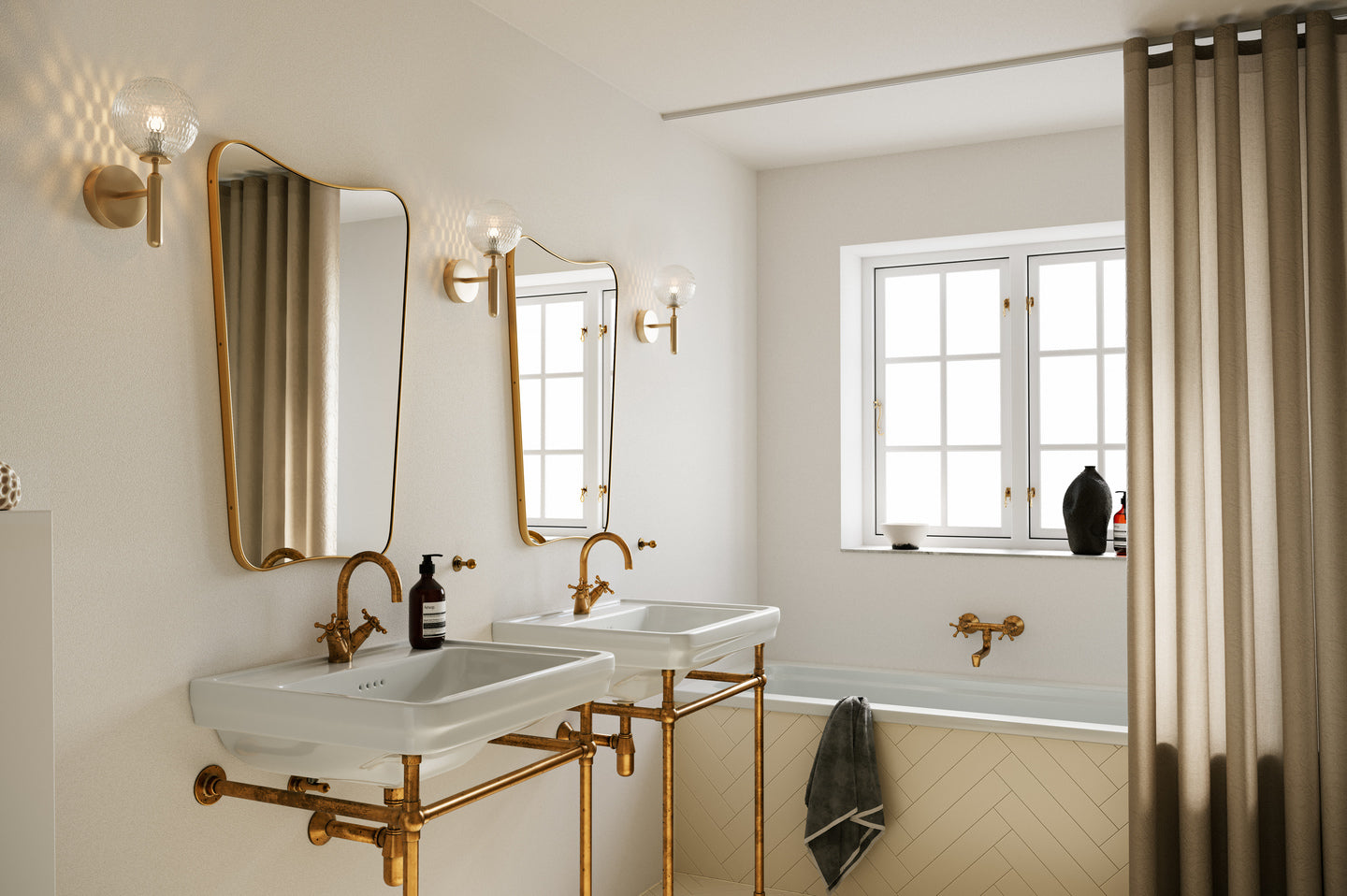 Miira vegglampen er ideell som nattbordslampe eller baderomsbelysning på begge sider av et speil. Merk at kabel ikke er inkludert.