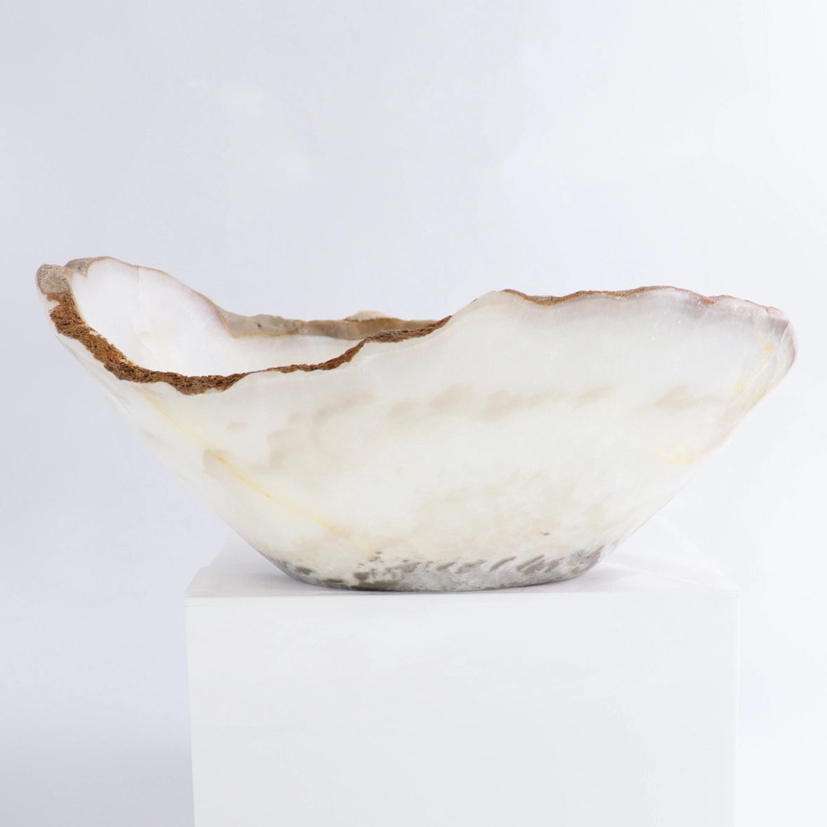 En unik vakker håndlaget skål i ren lys onyx! Et perfekt element som er like fin til dekor som til servering eller oppbevaring!