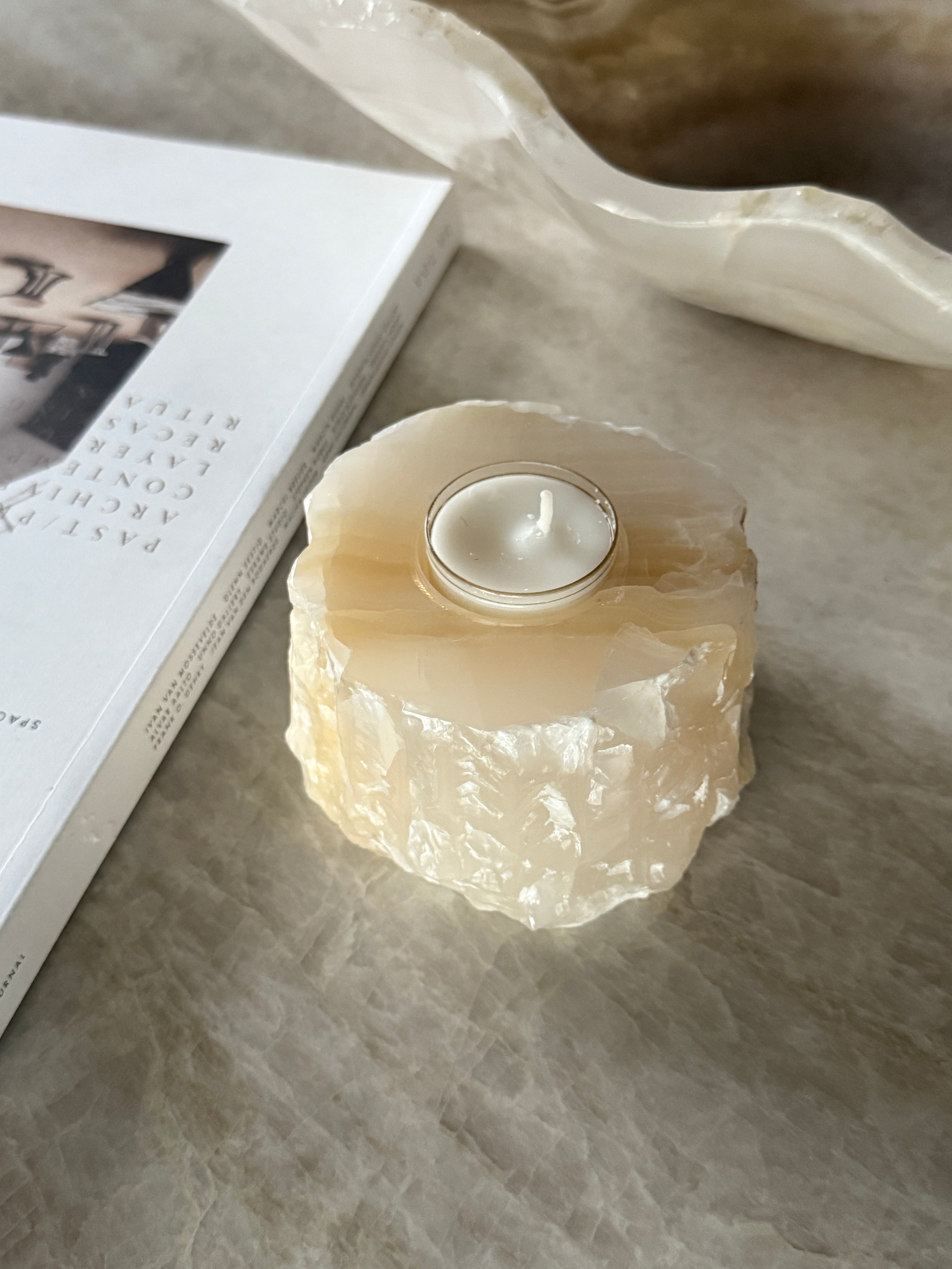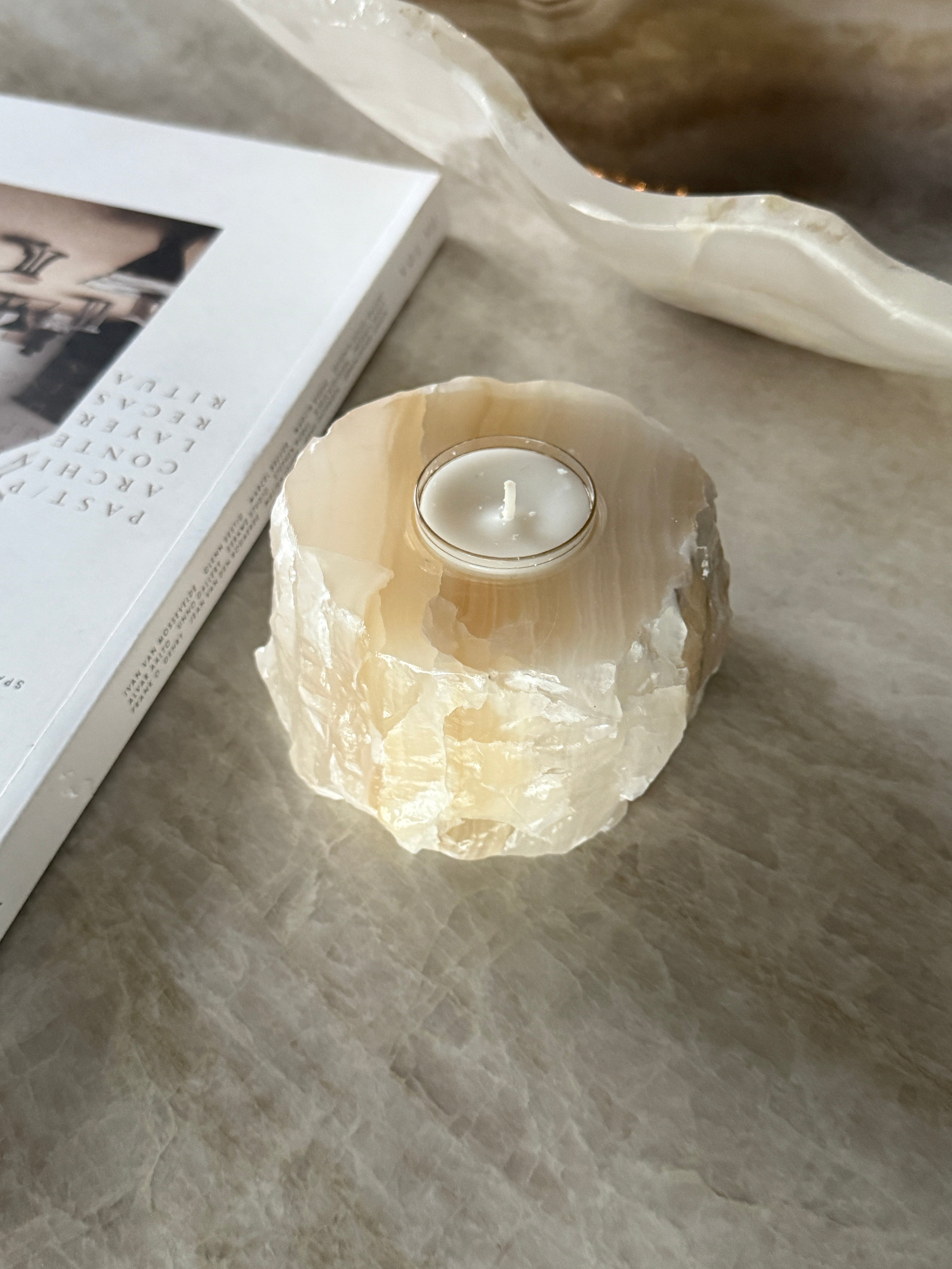 Vakker, rå og grov onyx-telysholder, håndlaget av høykvalitets onyx i Mexico. Dens elegante og unike farge gir et snev av raffinement til ethvert rom. Perfekt som en dekorativ tilegg; hvert stykke viser frem kunstnerisk meksikansk håndverk. Tidløs skjønnhet og vakkert håndverksmessige kvalitet!