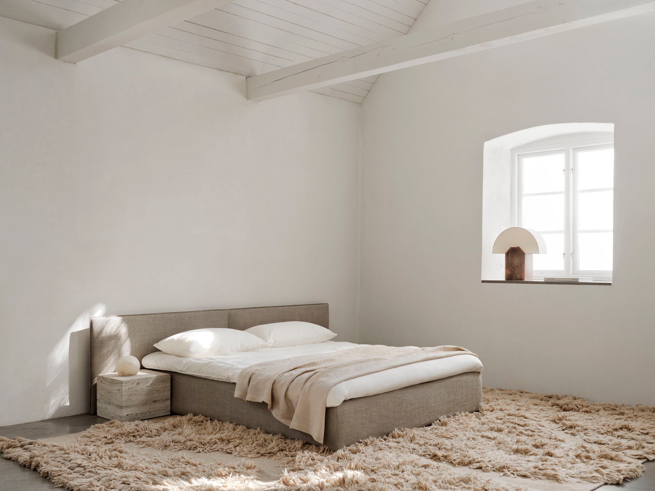Designet av Sofia Ristić bygger på kontraster, der det solide møter det myke, og hvor enkle former får spille hovedrollen. Resultatet er et funksjonelt, men samtidig skulpturelt objekt som fungerer like godt som sidebord som nattbord.