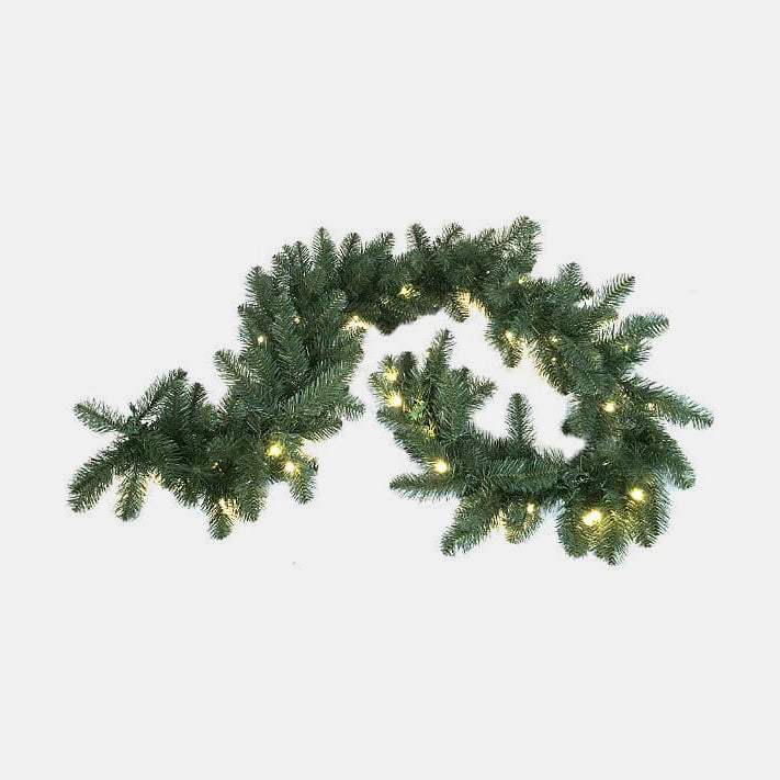 Denne furu-girlanderen har ett mer stoffaktig utseende. Den er fyldig, har en dyp grønnfarge, og alle grenene kan bøyes etter ønske. Girlanderen har 50 stk led-lys IP44 for inne og ute-bruk.