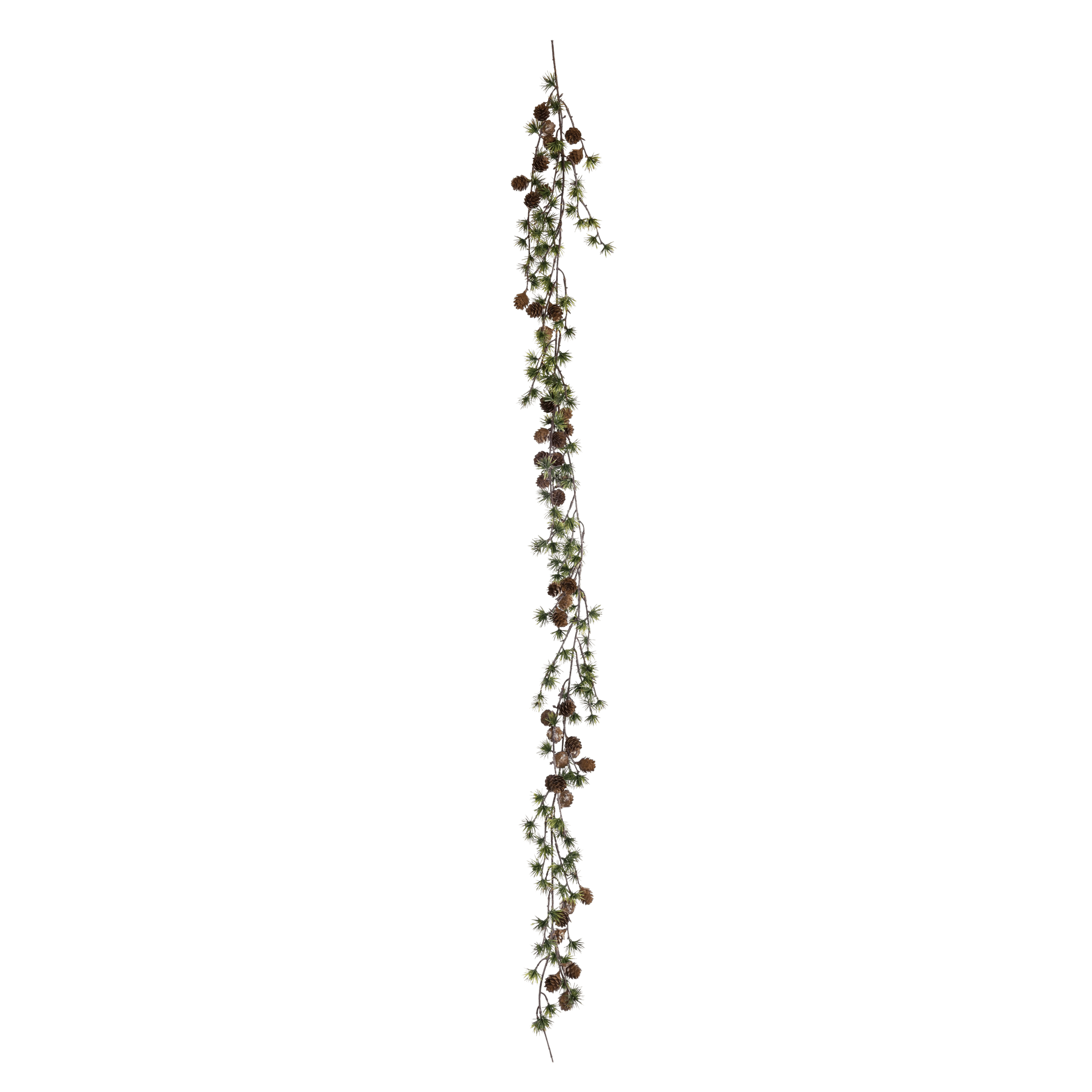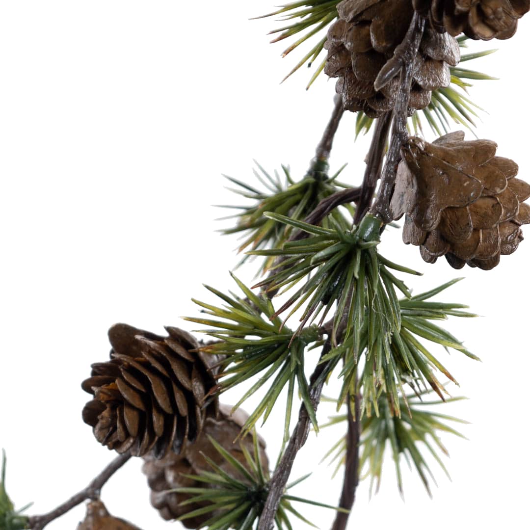 Kunstig lerk girlander med ekte små kongler. Ståltråd kjerne og løkke i enden. Bruk den til dekor på bordet eller heng den opp der du ønsker.