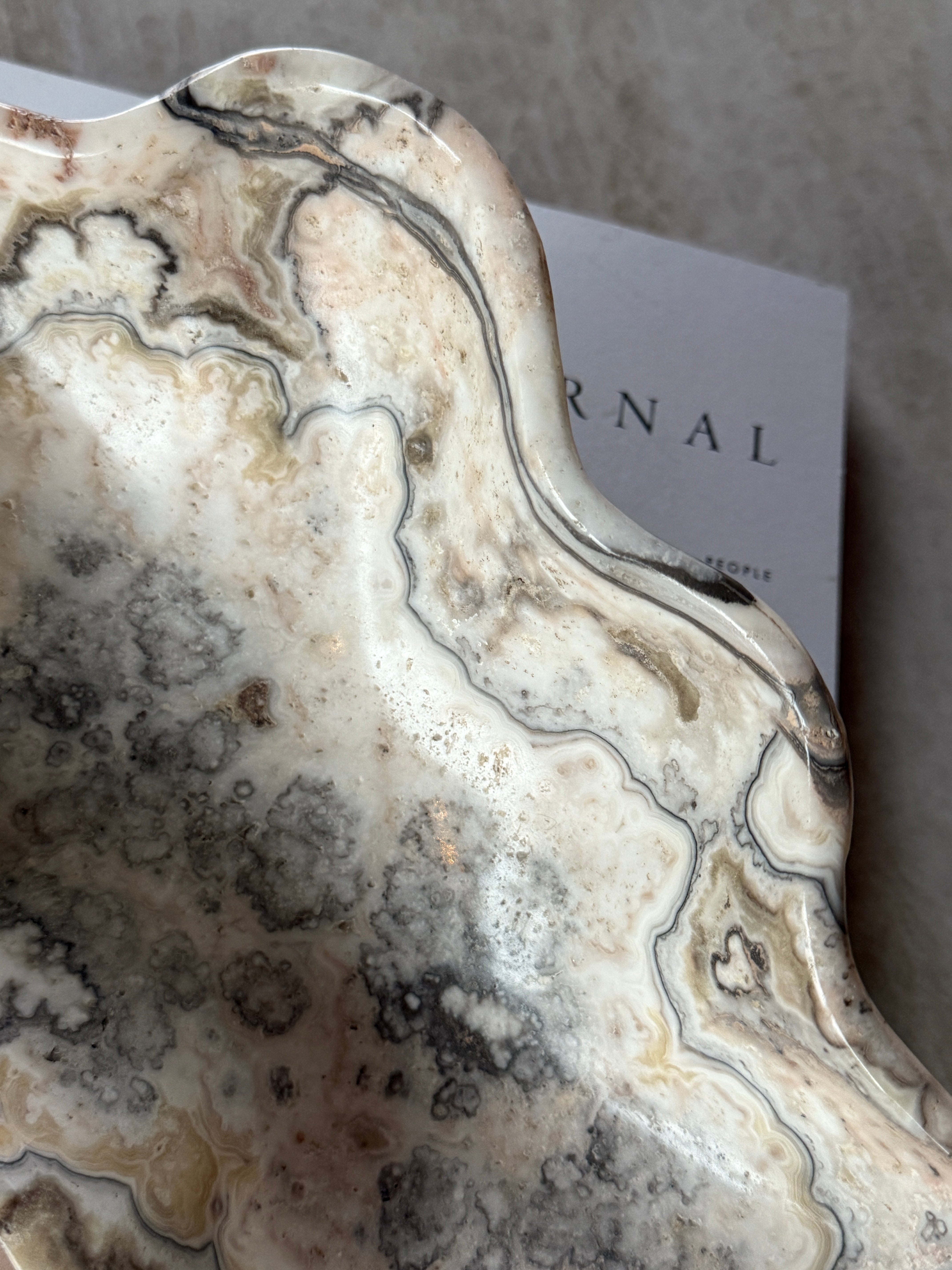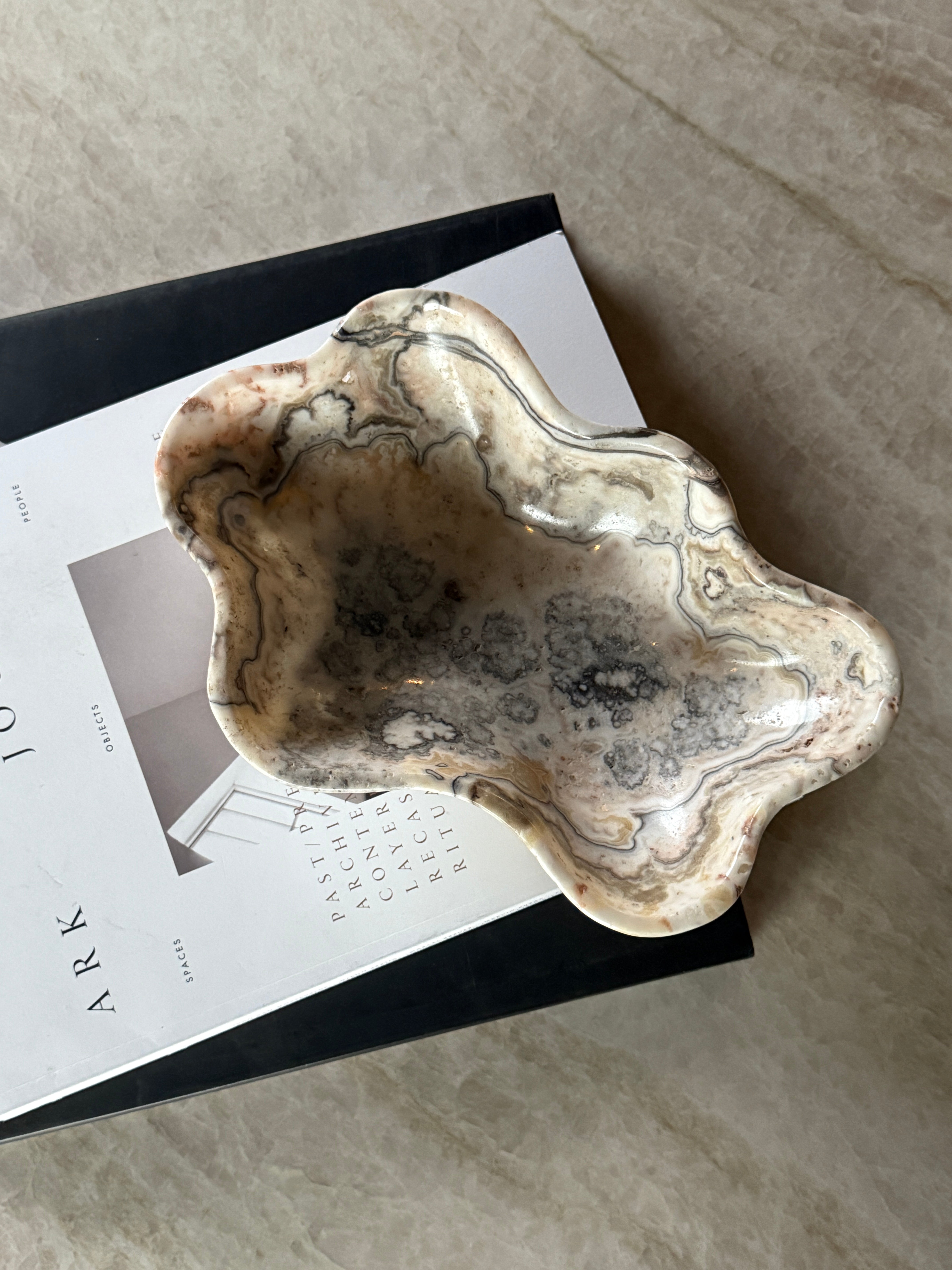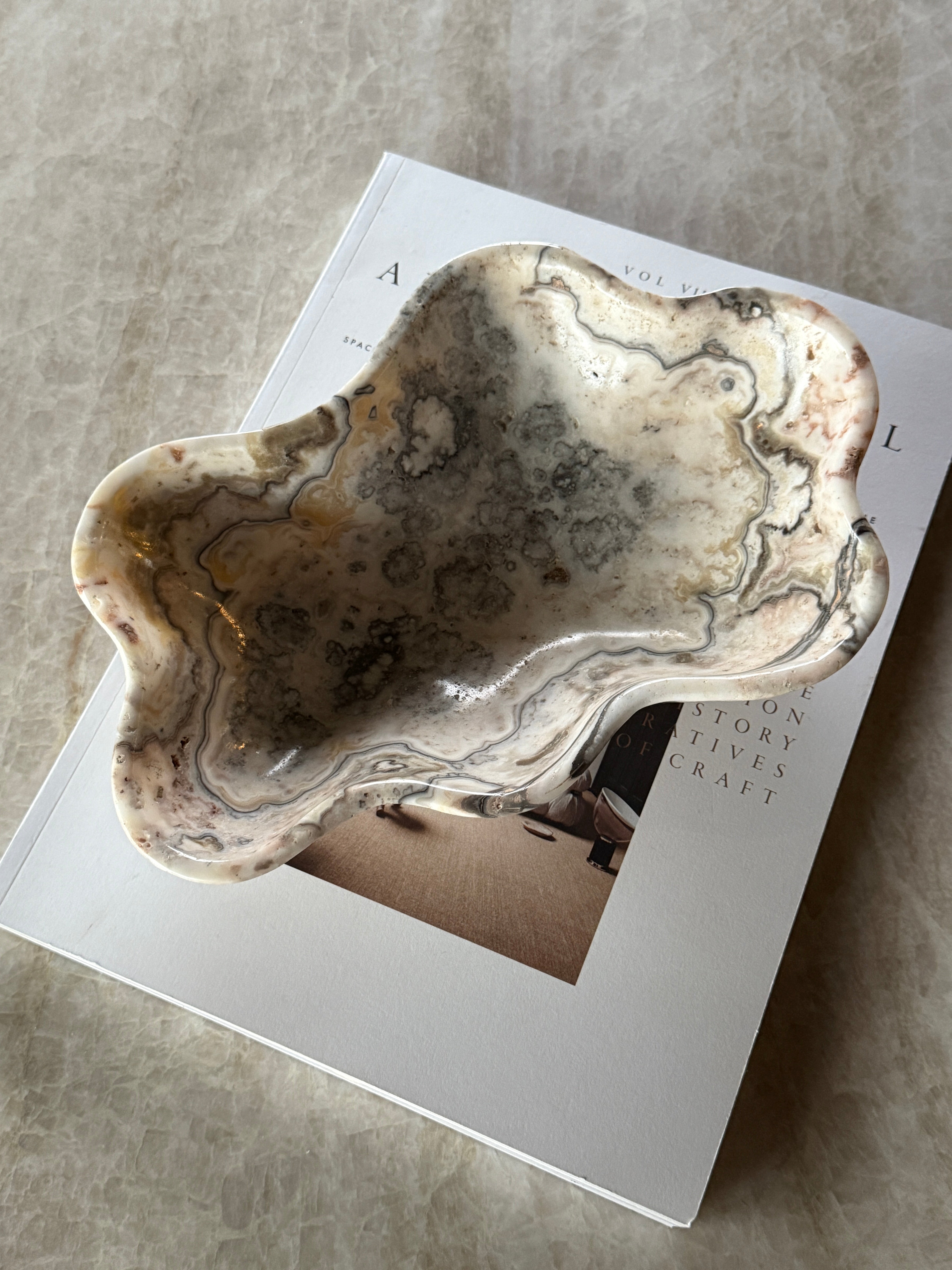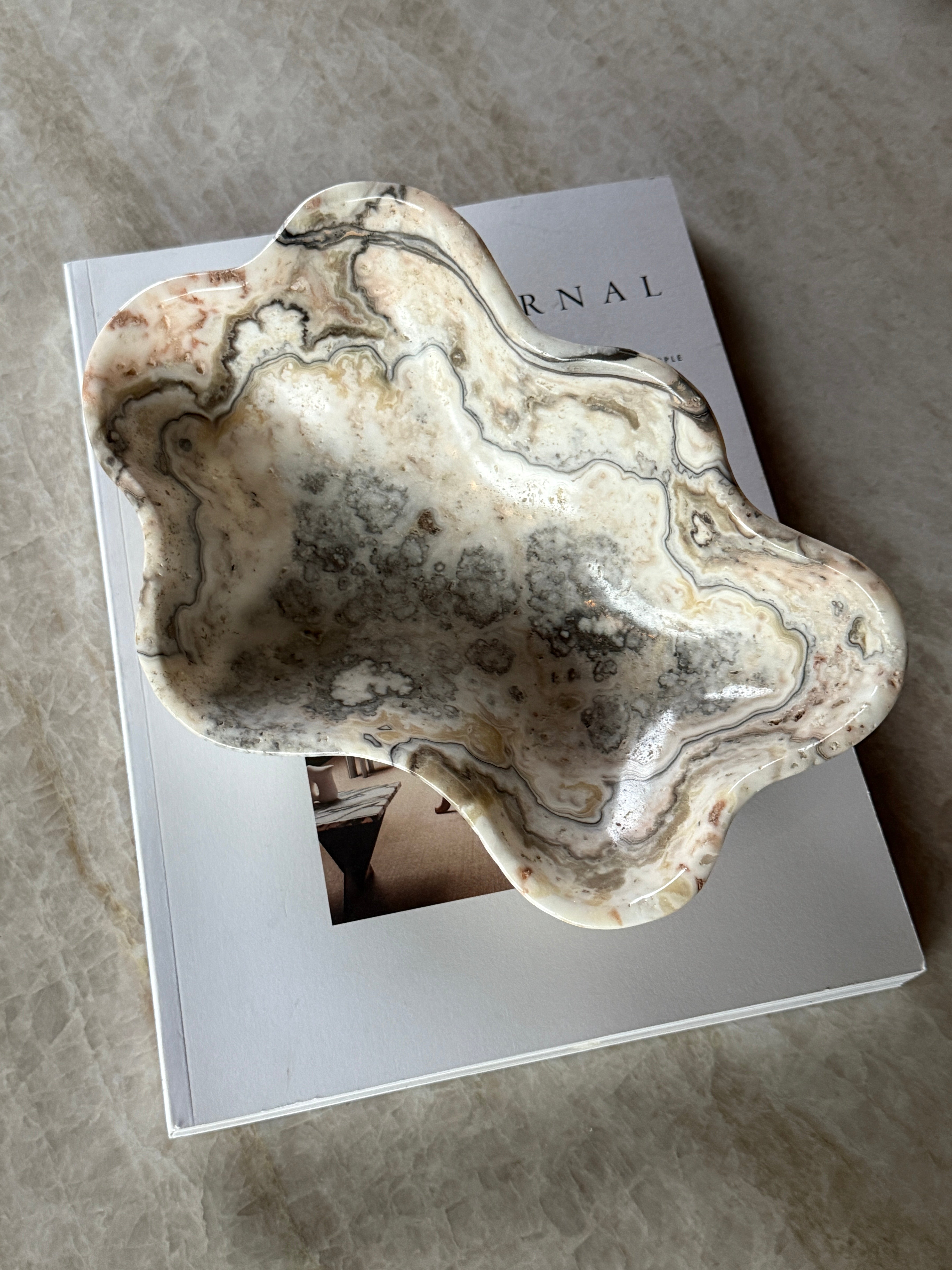 En unik vakker håndlaget skål i ren lys onyx! Et perfekt element som er like fin til dekor som til servering eller oppbevaring!