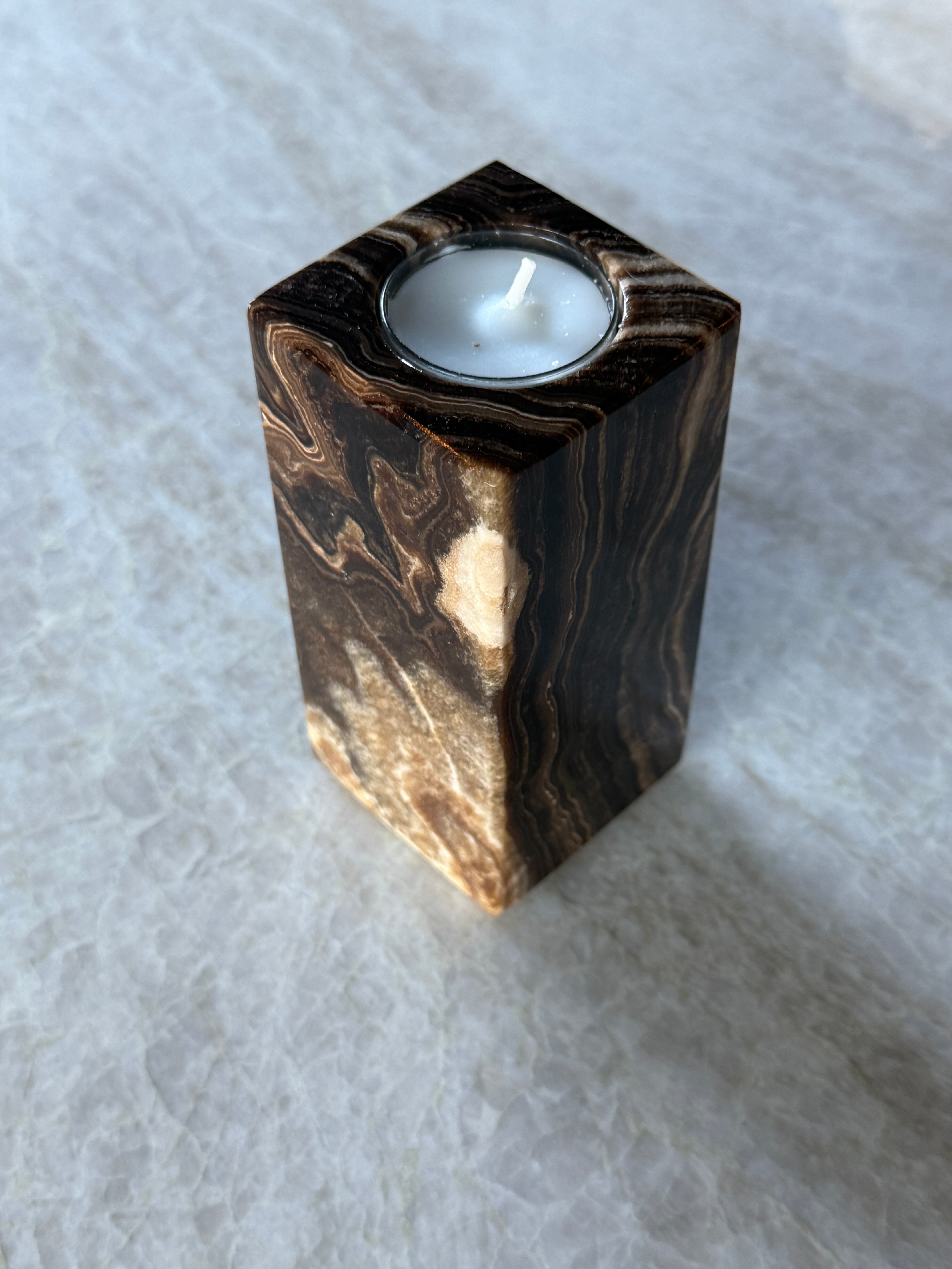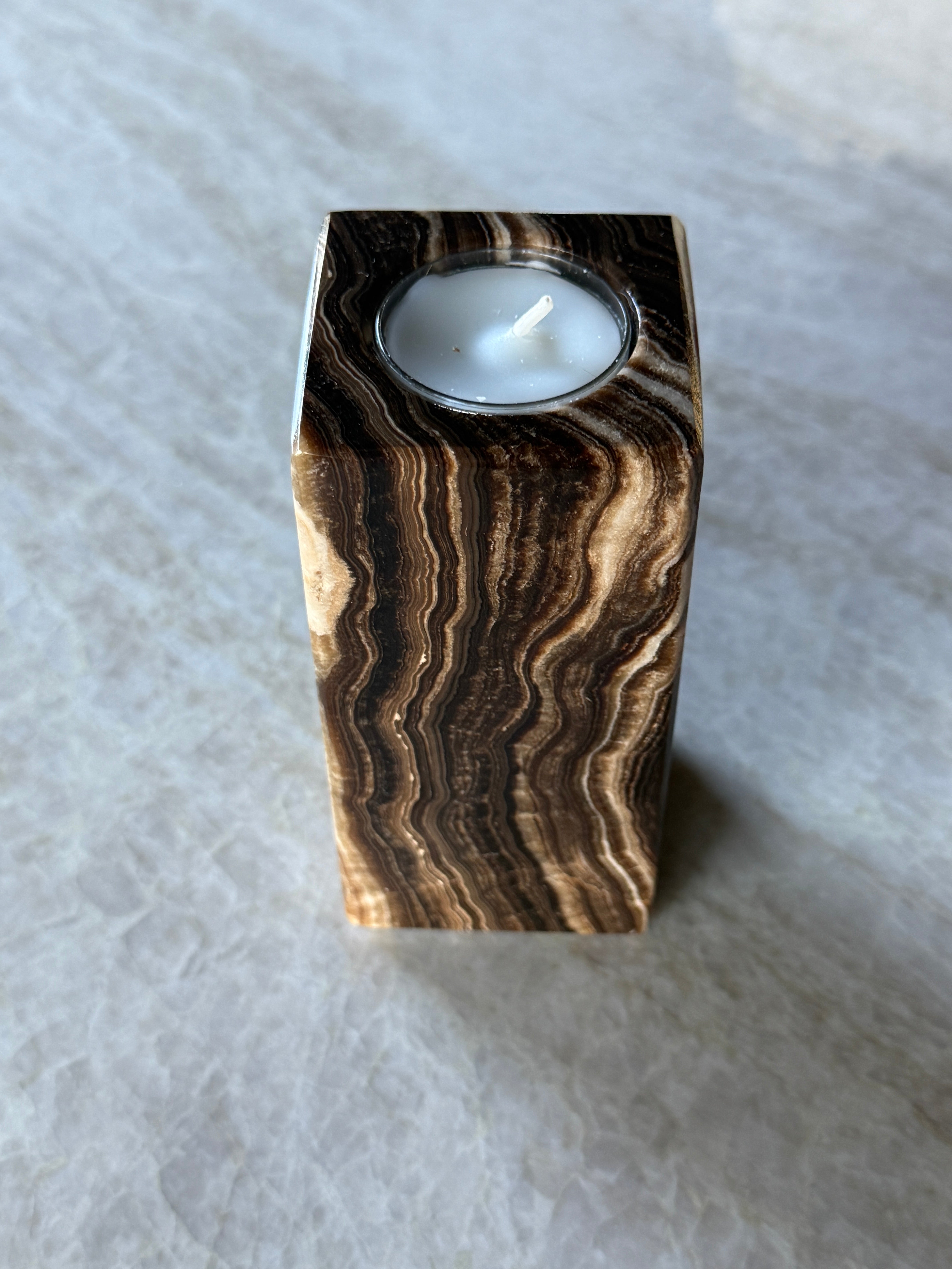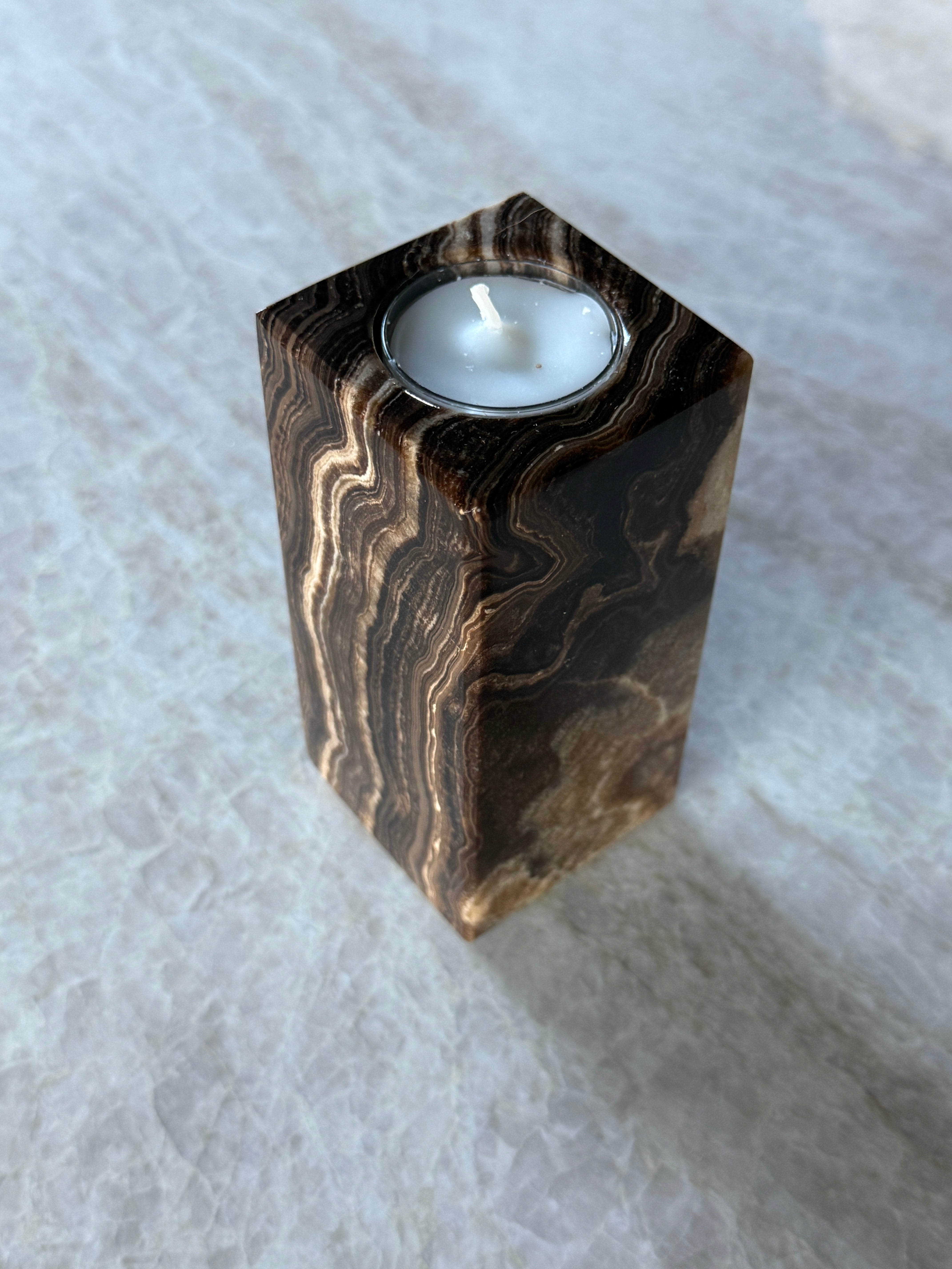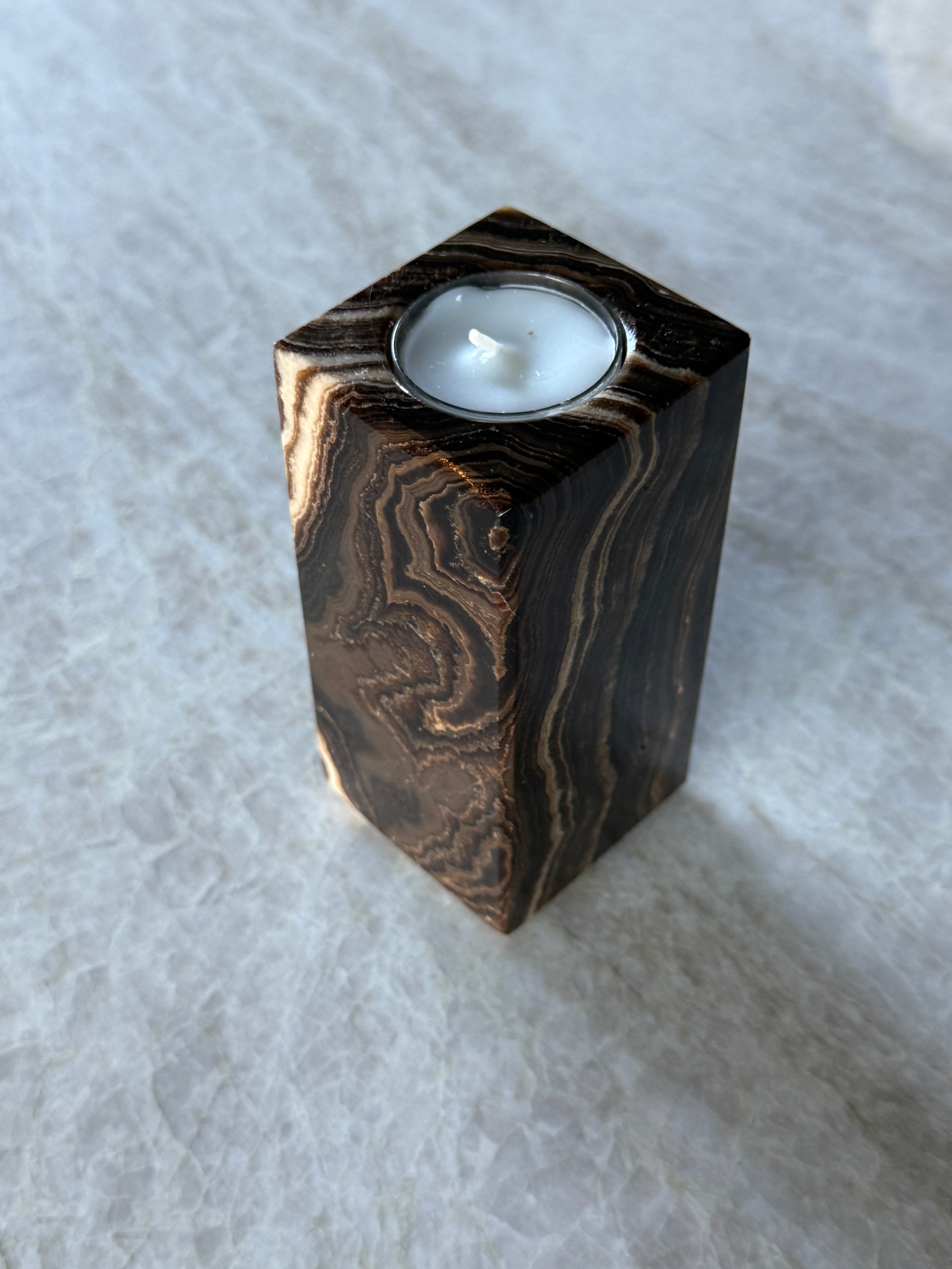 Unik og vakker telysholder i brun lekker onyx!