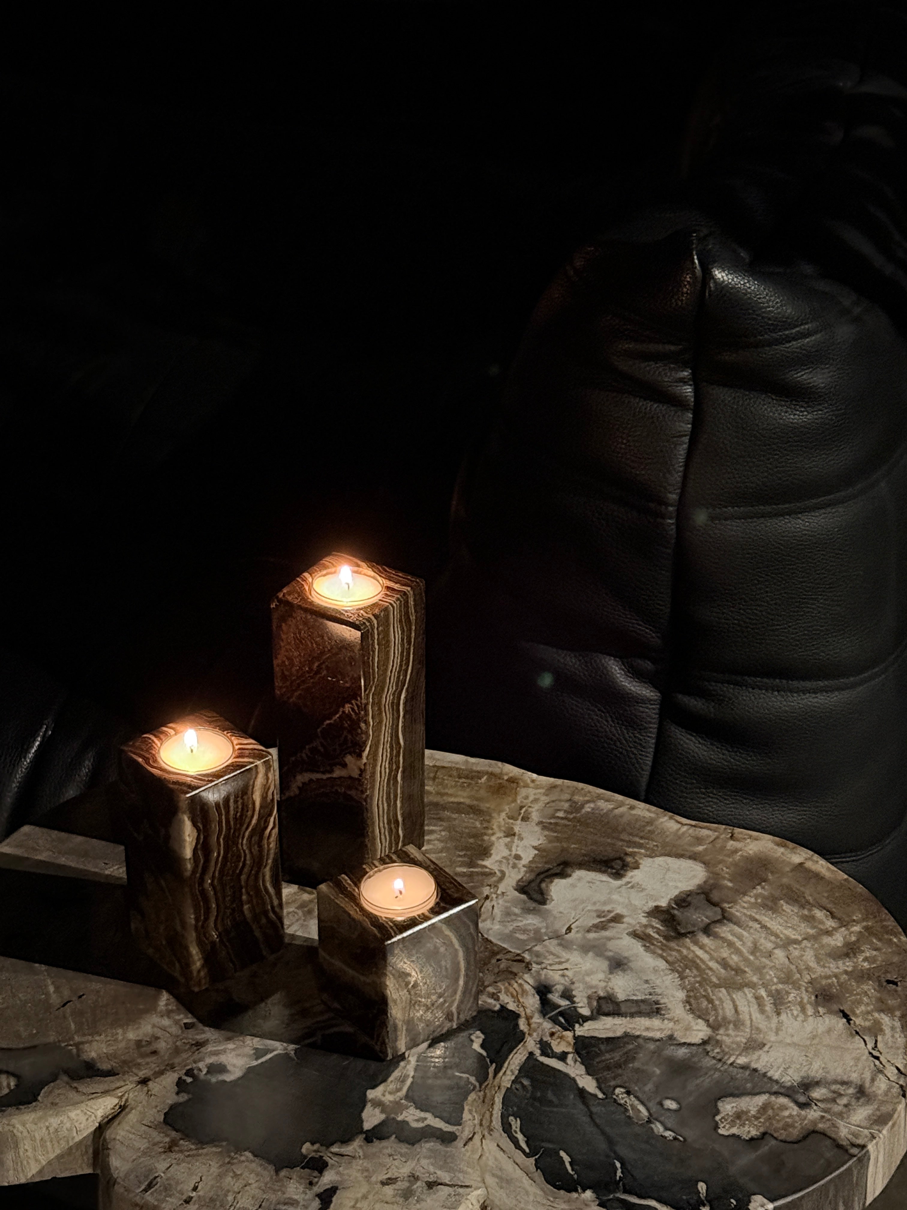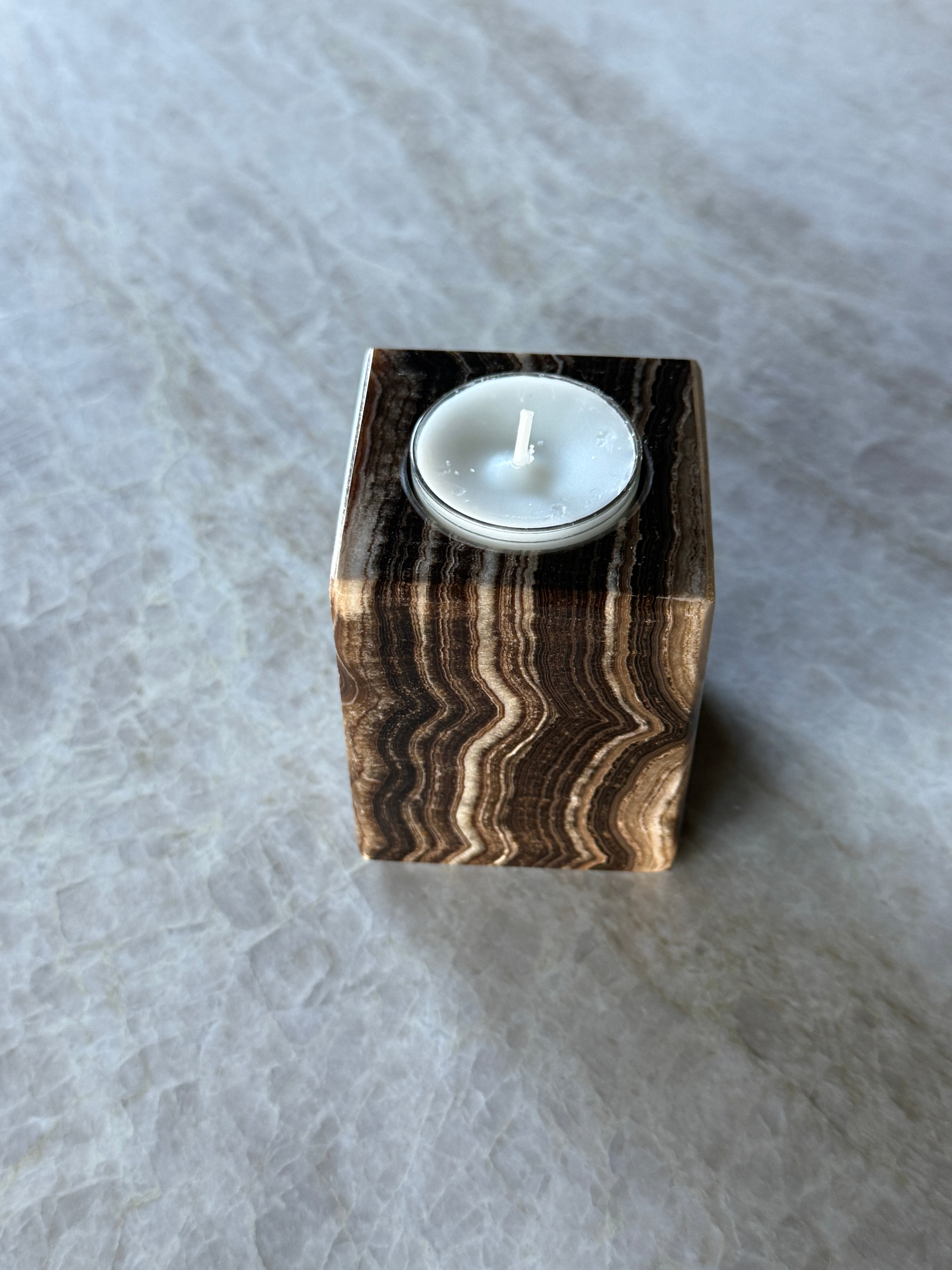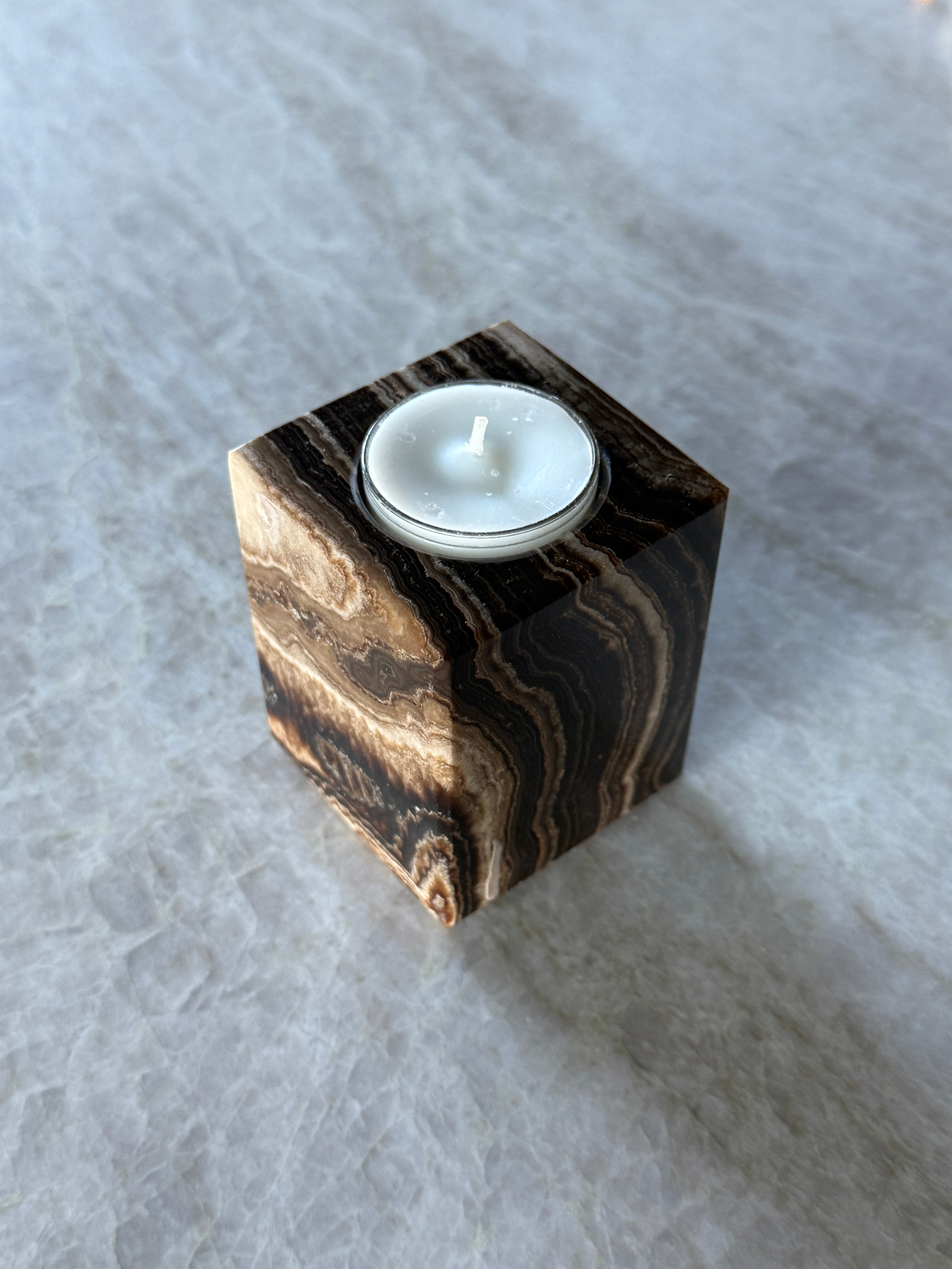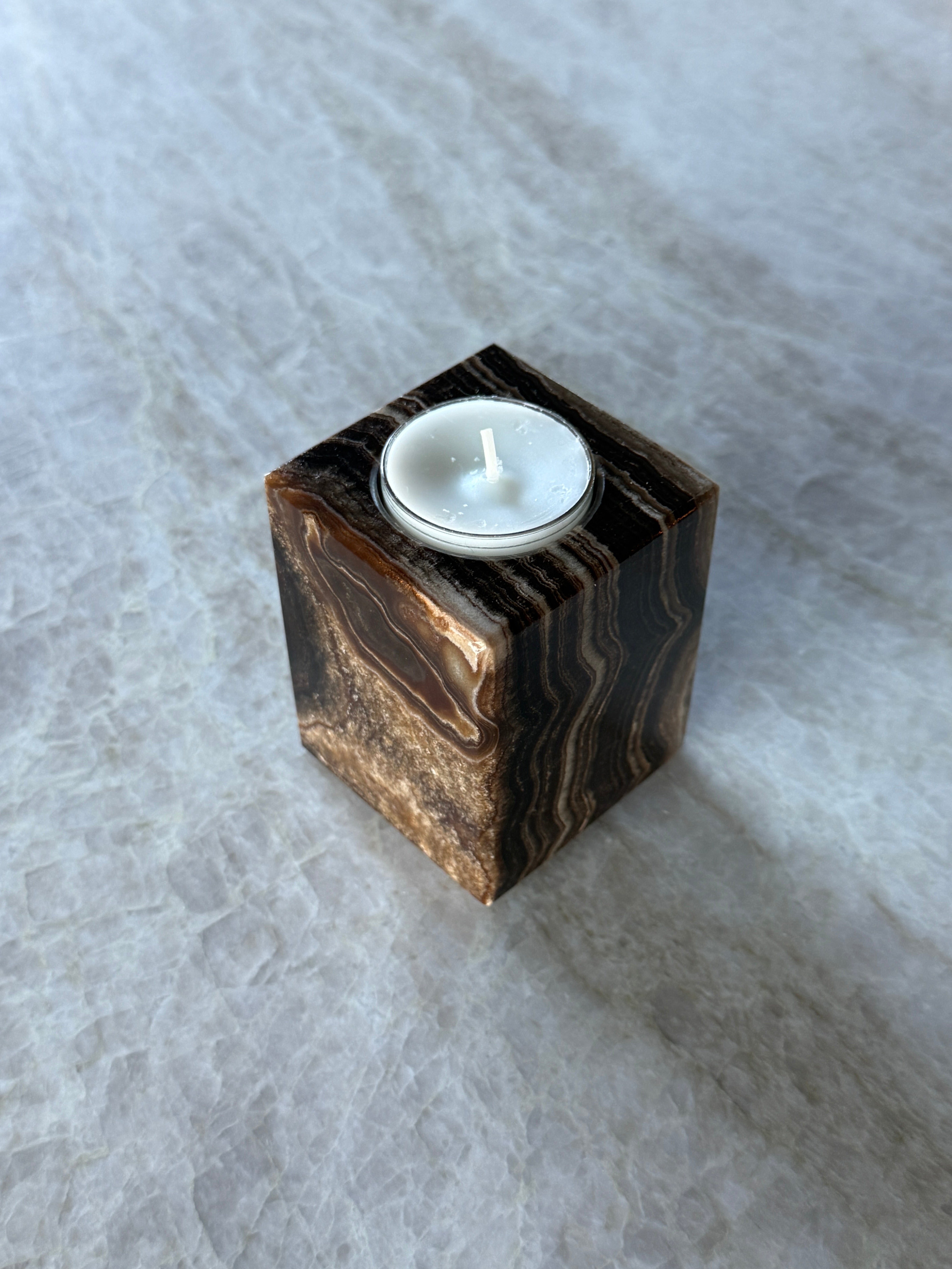 Unik og vakker telysholder i brun lekker onyx!