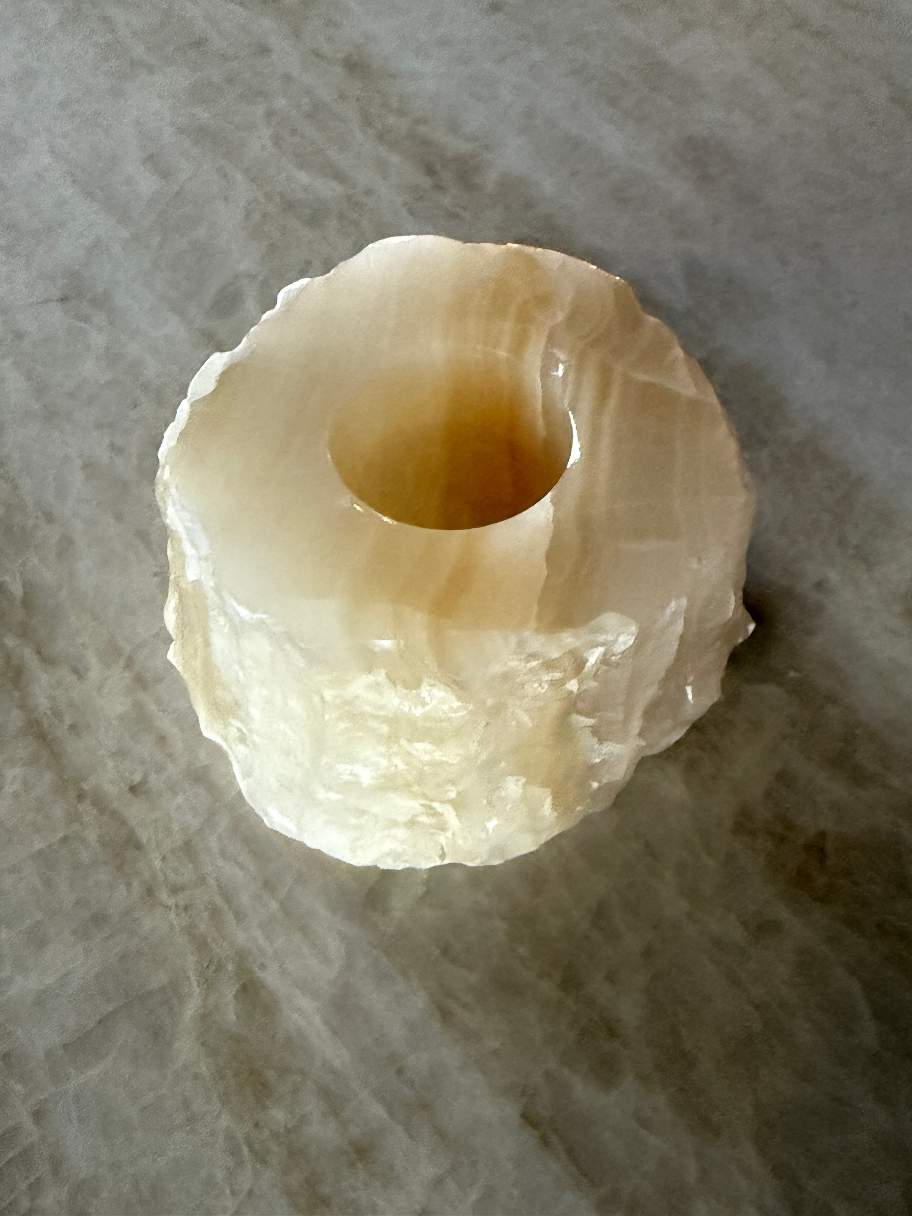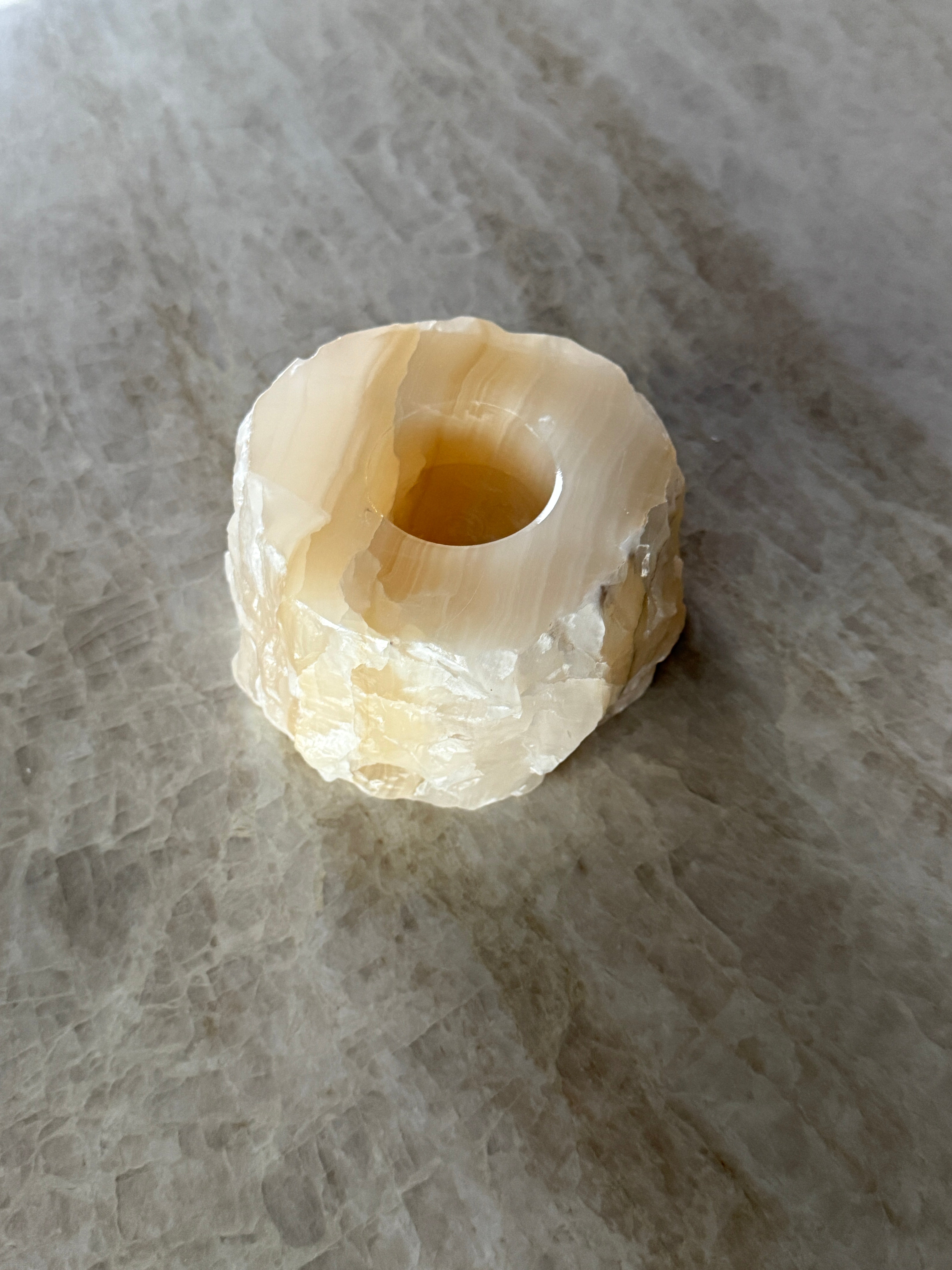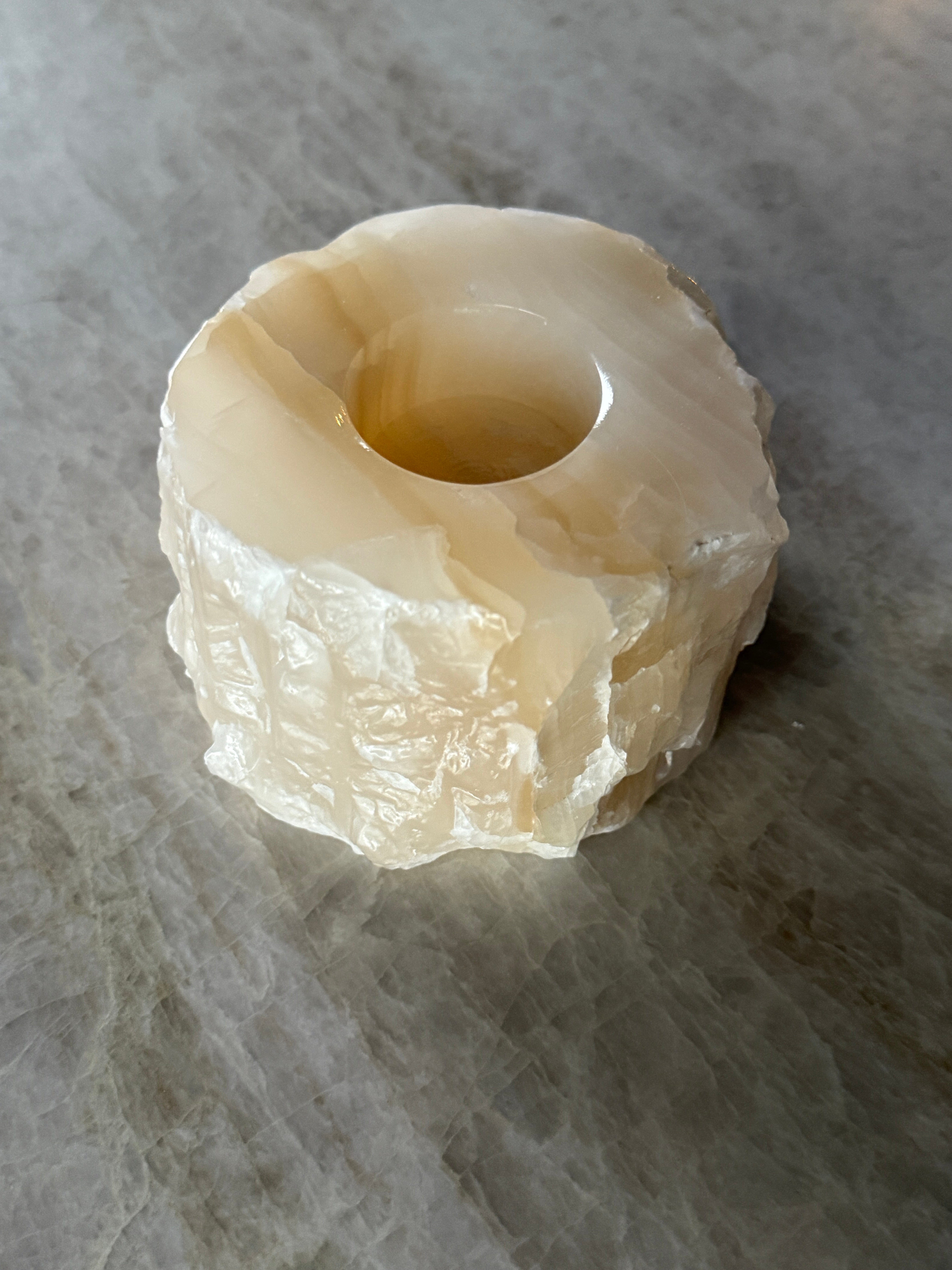 Vakker, rå og grov onyx-telysholder, håndlaget av høykvalitets onyx i Mexico. Dens elegante og unike farge gir et snev av raffinement til ethvert rom. Perfekt som en dekorativ tilegg; hvert stykke viser frem kunstnerisk meksikansk håndverk. Tidløs skjønnhet og vakkert håndverksmessige kvalitet!