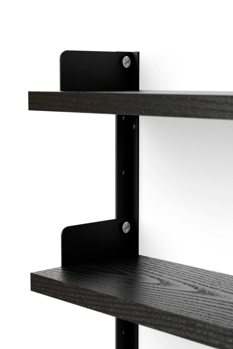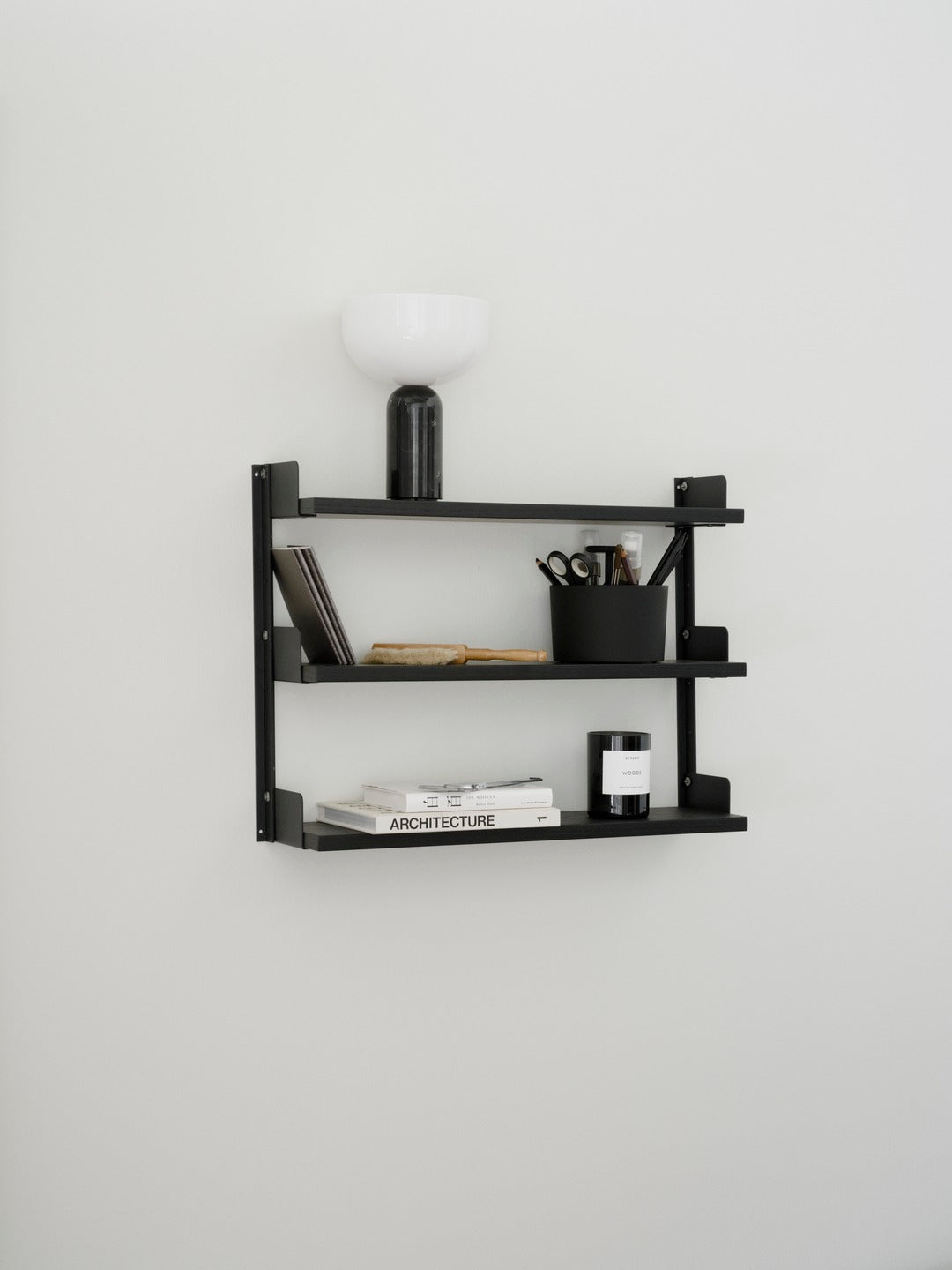 Noen ganger viser det seg at de enkleste møblene er de vanskeligste å finne – for eksempel den perfekte vegghyllen. Med diskrete detaljer og ukomplisert fleksibilitet, har New Works hyllesystem som mål å være nettopp det. Det enkle hyllesystemet er designet for å enkelt blande seg inn i forskjellige rom. Ingenting er overflødig og alt er nøye gjennomtenkt, fra de kantede profilene på veggskinnene til de integrerte bokstøttene som holder eiendelene dine på plass. Hyllene er satt sammen med flate tommeskruer i rustfritt stål, som tilfører en ærlig og gjennomtenkt detalj til designet. Et system som er ment å vokse – i hjemmet og som en samling – for å møte ulike oppbevaringsbehov.