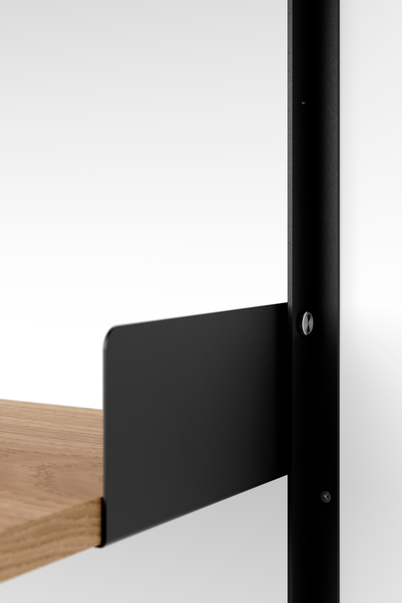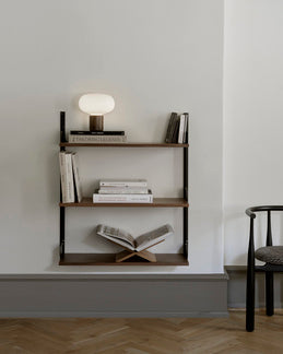 Noen ganger viser det seg at de enkleste møblene er de vanskeligste å finne – for eksempel den perfekte vegghyllen. Med diskrete detaljer og ukomplisert fleksibilitet, har New Works hyllesystem som mål å være nettopp det. Det enkle hyllesystemet er designet for å enkelt blande seg inn i forskjellige rom. Ingenting er overflødig og alt er nøye gjennomtenkt, fra de kantede profilene på veggskinnene til de integrerte bokstøttene som holder eiendelene dine på plass. Hyllene er satt sammen med flate tommeskruer i rustfritt stål, som tilfører en ærlig og gjennomtenkt detalj til designet. Et system som er ment å vokse – i hjemmet og som en samling – for å møte ulike oppbevaringsbehov.