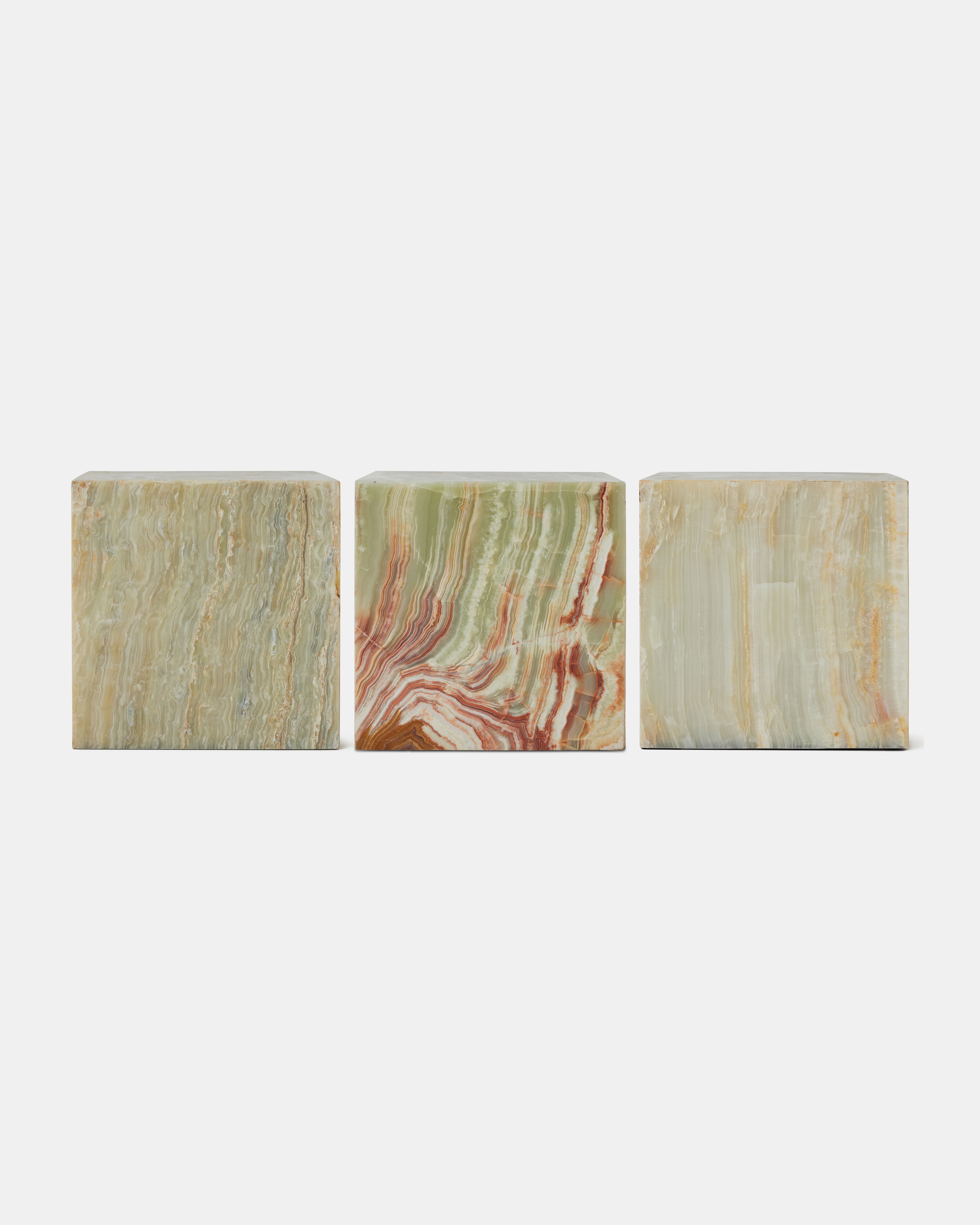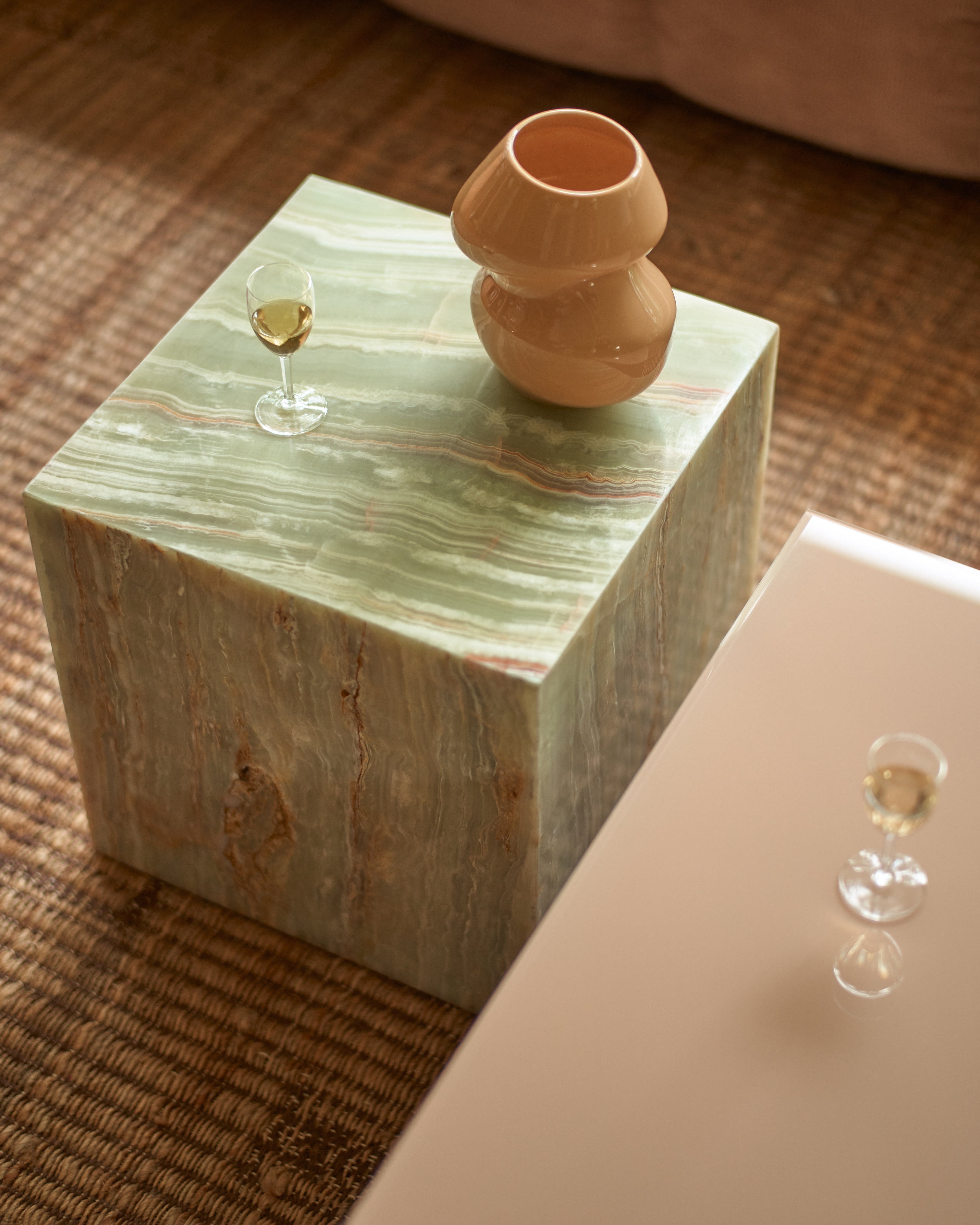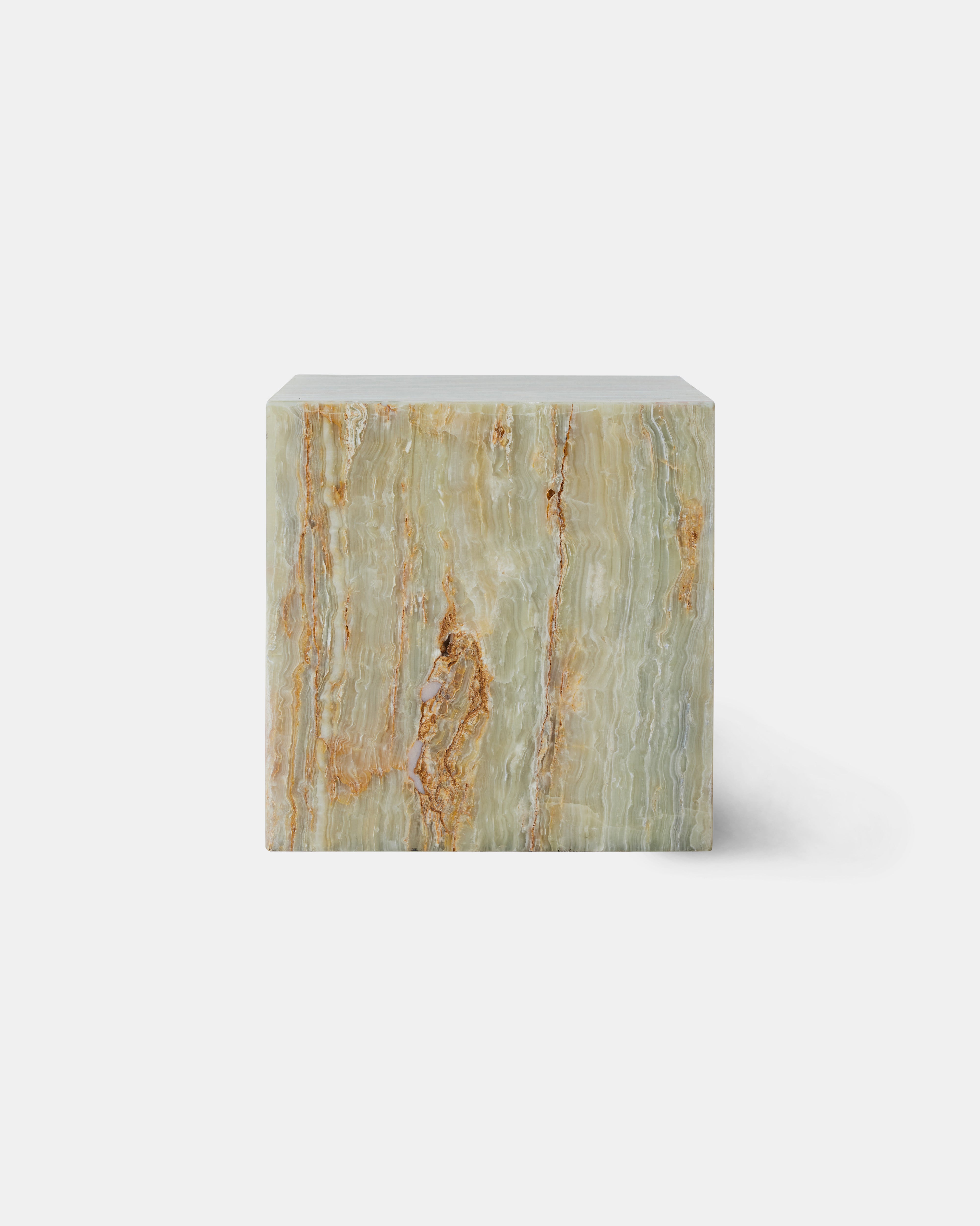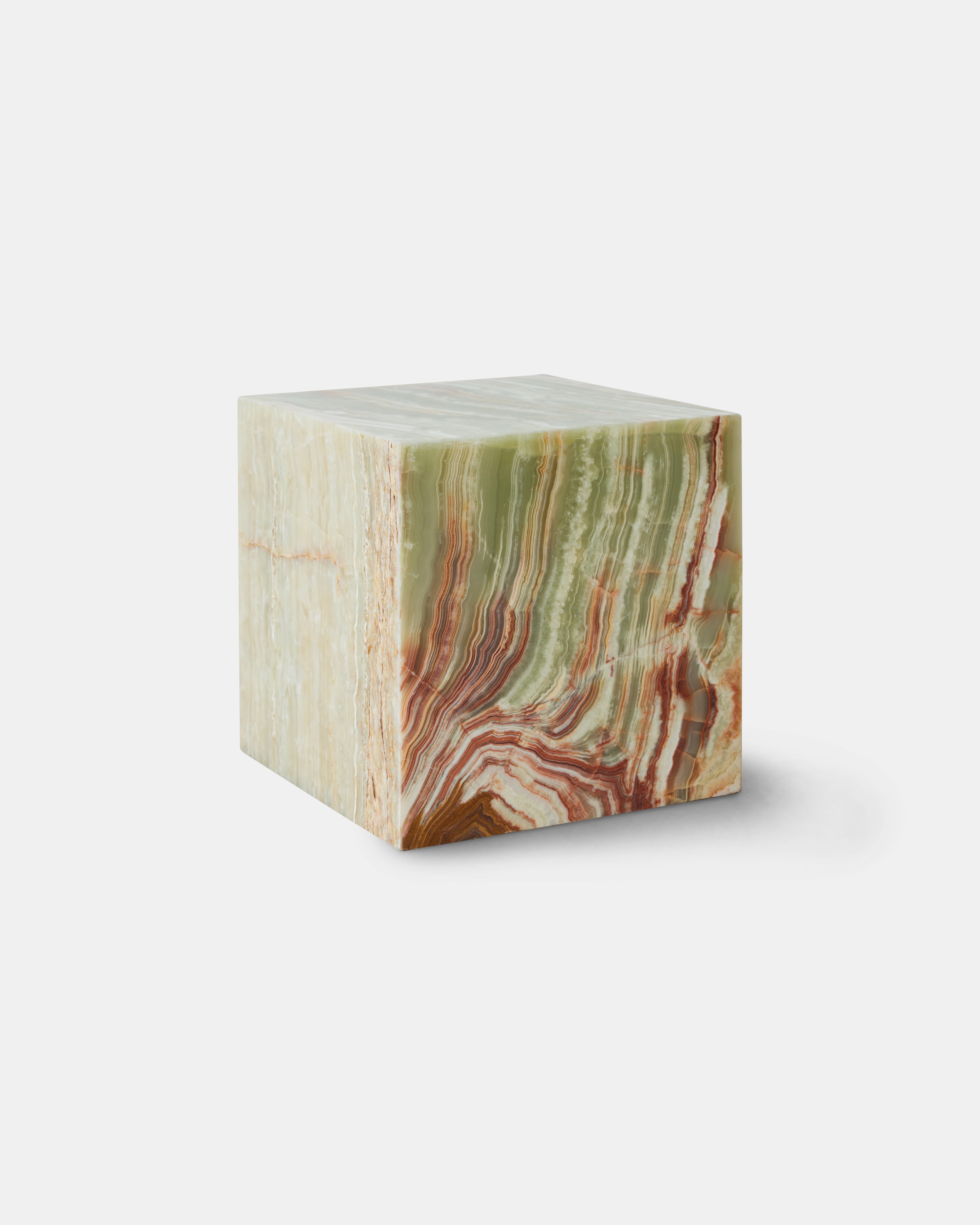 Dette unike sidebordet fra HK Living kombinerer funksjonalitet og estetikk i en kubeformet design i massiv onyxmarmor med en stilfull mineralgrønn farge. Inspirert av 70-tallets eleganse, er bordet skåret ut av ett stykke naturstein, noe som gir hvert bord et helt unikt uttrykk og særpreg. Onyxmarmoren gir et luksuriøst preg, og bordet passer perfekt som sidebord, nattbord eller lav pidestall. Kombiner det gjerne med myke tekstiler, treverk og keramikk for en varm og innbydende stil. Bordet finnes også i en rødrosa marmor og dus rosa onyx variant for et spennende fargealternativ.