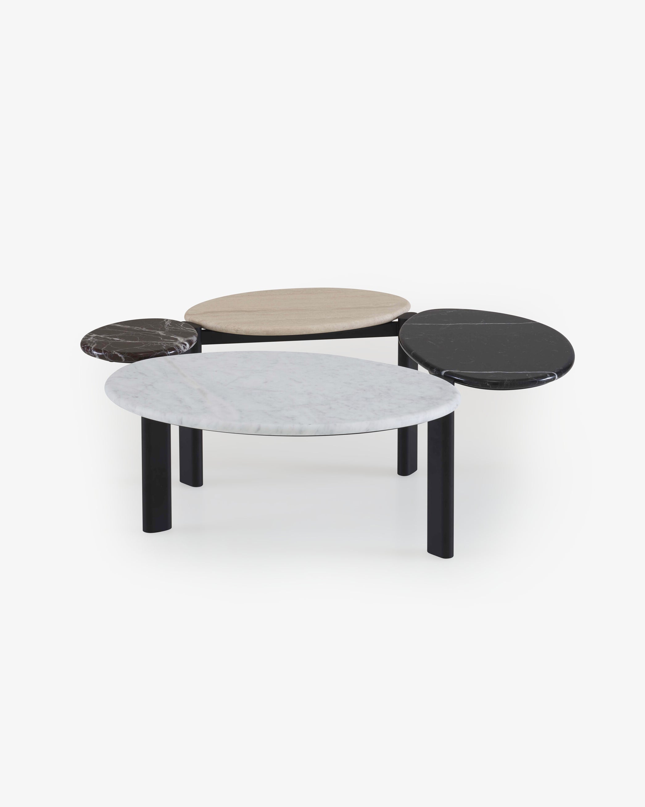 Ressac sofabord er et lavt bord som kommer fra den organiske inspirasjonen fra strandstrender. Den sentrale delen er fint uthulet og toppen delt inn i fire deler, som flate småstein. Bordet tilbyr en blanding av farger og teksturer. Hver av småsteinene er formet av en annen marmor (Carrara, Rosso Levante, Marquina og Travertine) som fremkaller mangfoldet og skjønnheten til kysten.