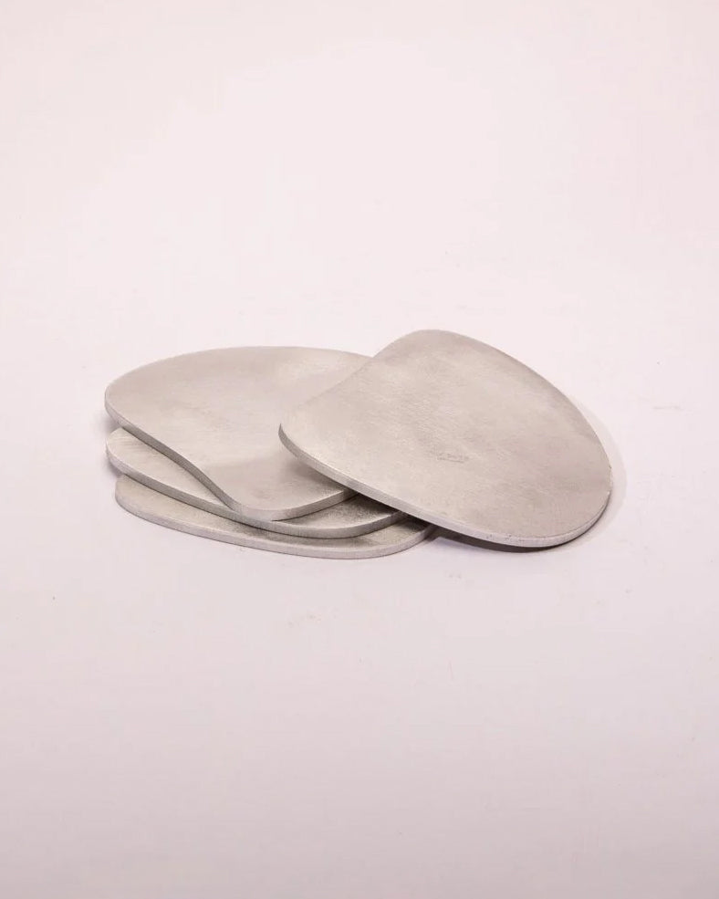 Dette settet med fire håndlagde aluminiumunderlag er det ideelle stedet for å sette fra seg et nattens siste glass. Hver enkelt underlag er håndlaget på verksted i Nord-London og er stemplet for autentisitet.
