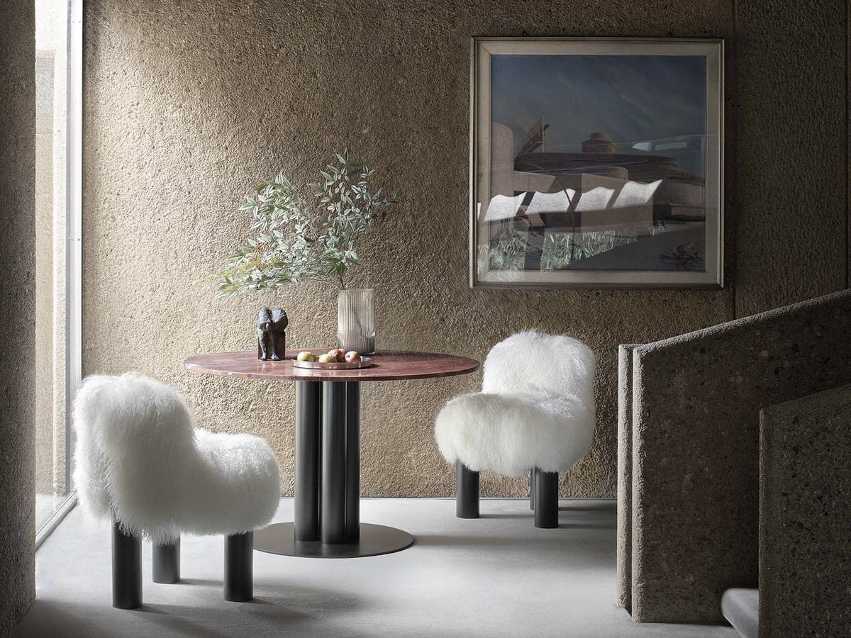 Botolo High Armchair ble designet av Cini Boeri designet Botolo i 1973 og er en del av Botolo serien med forskjellige stoler. Denne rå varianten kommer med pels og gir stolen et unikt utseende. Perfekt møbel for den som ønsker noe unikt i hjemmet som virkelig er et blikkfang.