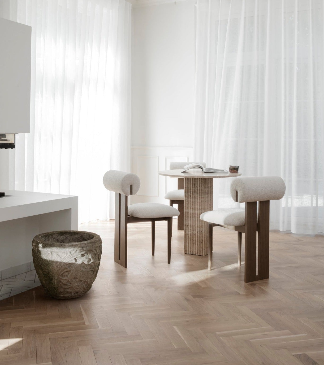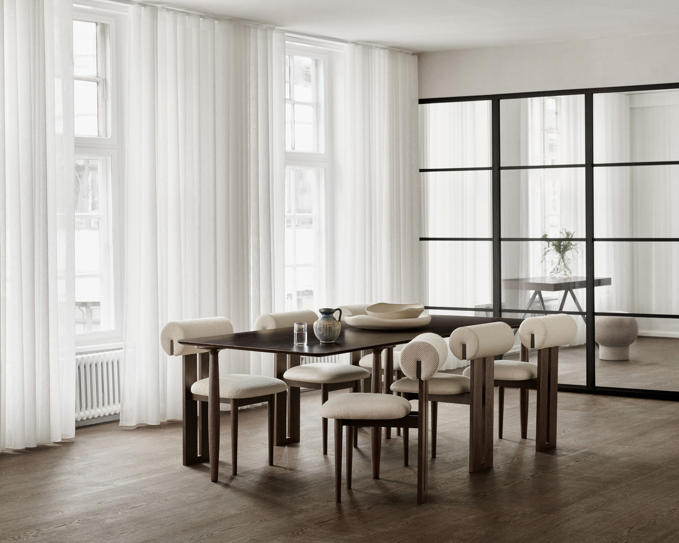 Kolleksjonen består av en spisestuestol, barstol, loungestol (tilgjengelig med tre- eller helpolstret profil), samt en sofa.
