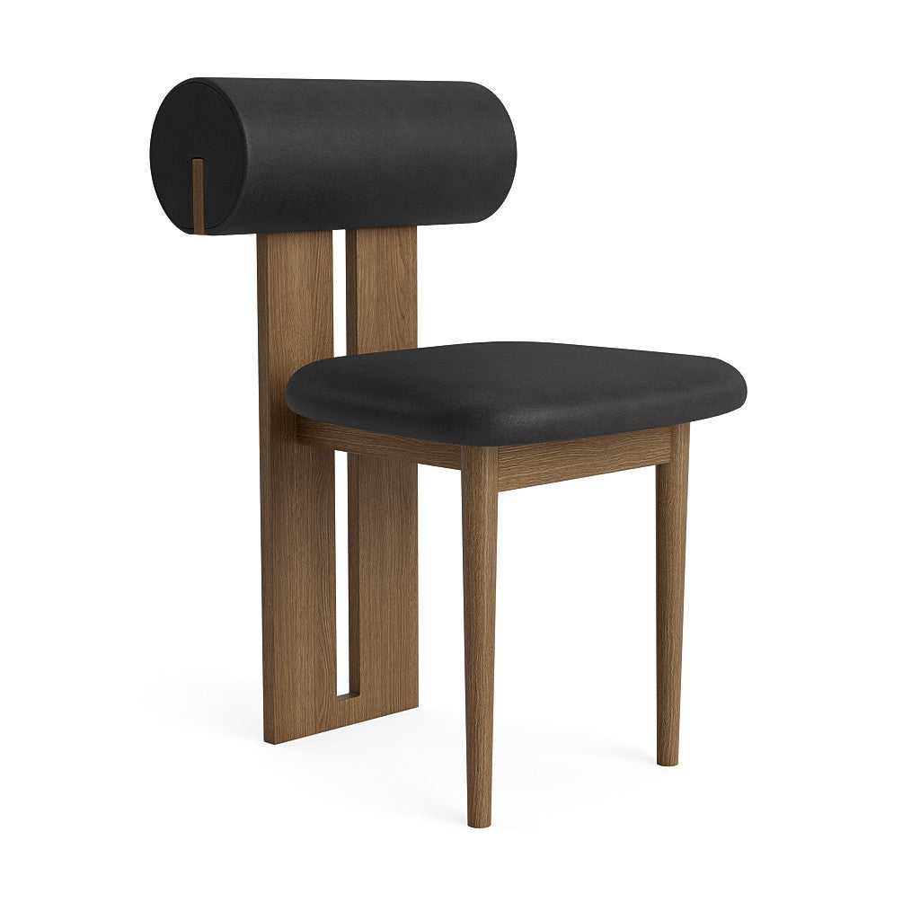 Hippo-familien kjennetegnes av myke, lekne former inspirert av de avrundede linjene fra 70-tallsmøbler. Navnet «Hippo» oppsto under designprosessen, da stolens bakside minnet om en flodhest. Den unike treprofilen fungerer som et arkitektonisk element og skaper en markant kontrast til de myke, avrundede linjene i rygg og sete.
