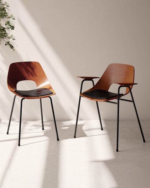 Uten armlener – En strømlinjeformet versjon som passer perfekt rundt spisebordet eller i offentlige rom.