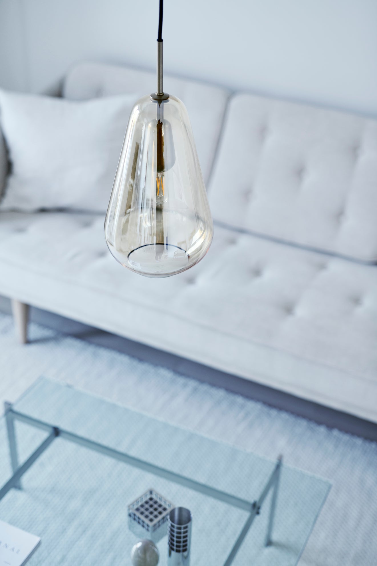 I 2018 utgor Nuuras designer Sofie Refer denne pendelen i håndblåst glass som er inspirert av stemningen fra fallende vanndråper.