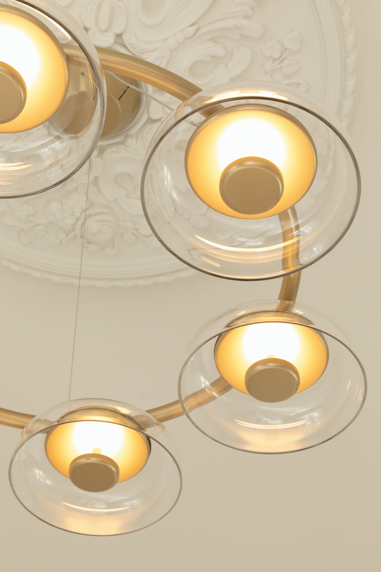 Blossi er inspirert av sollys som filtrerer gjennom høstens fargerike blader. Med sine avrundede, munnblåste glassskjermer og minimalistisk design, skaper den et varmt, mykt lys i rommet og reflekterer essensen av dansk designtradisjon.