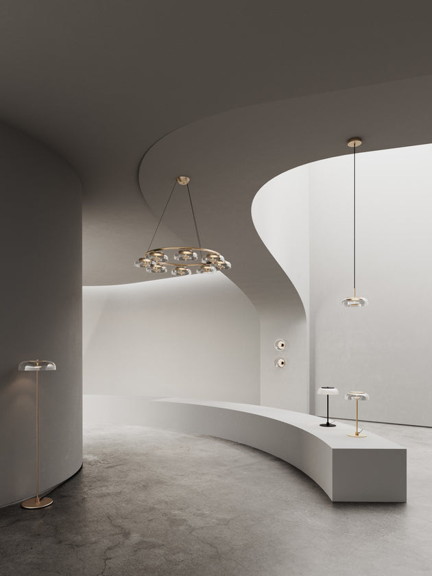 Blossi er inspirert av sollys som filtrerer gjennom høstens fargerike blader. Med sine avrundede, munnblåste glassskjermer og minimalistisk design, skaper den et varmt, mykt lys i rommet og reflekterer essensen av dansk designtradisjon.