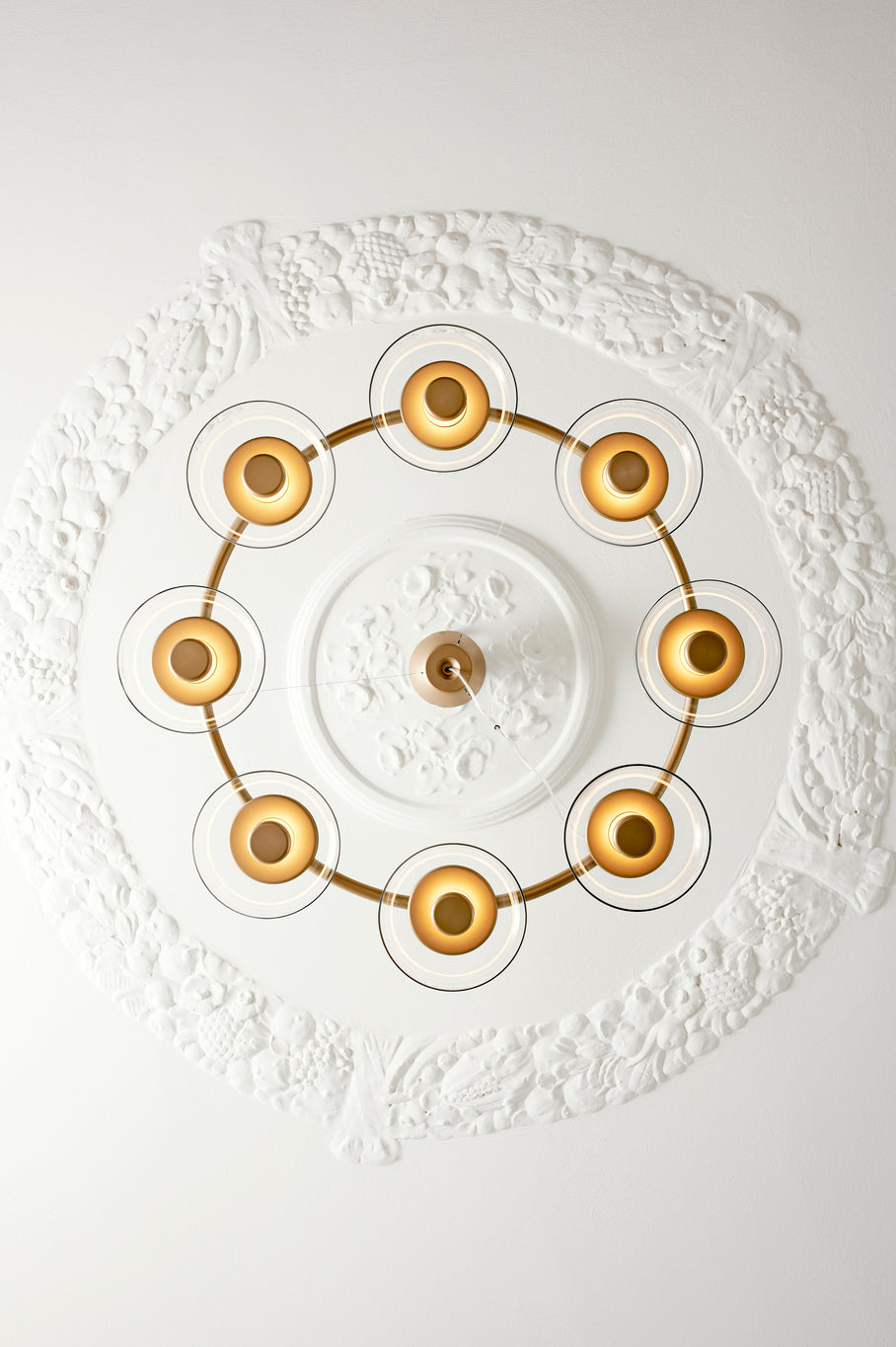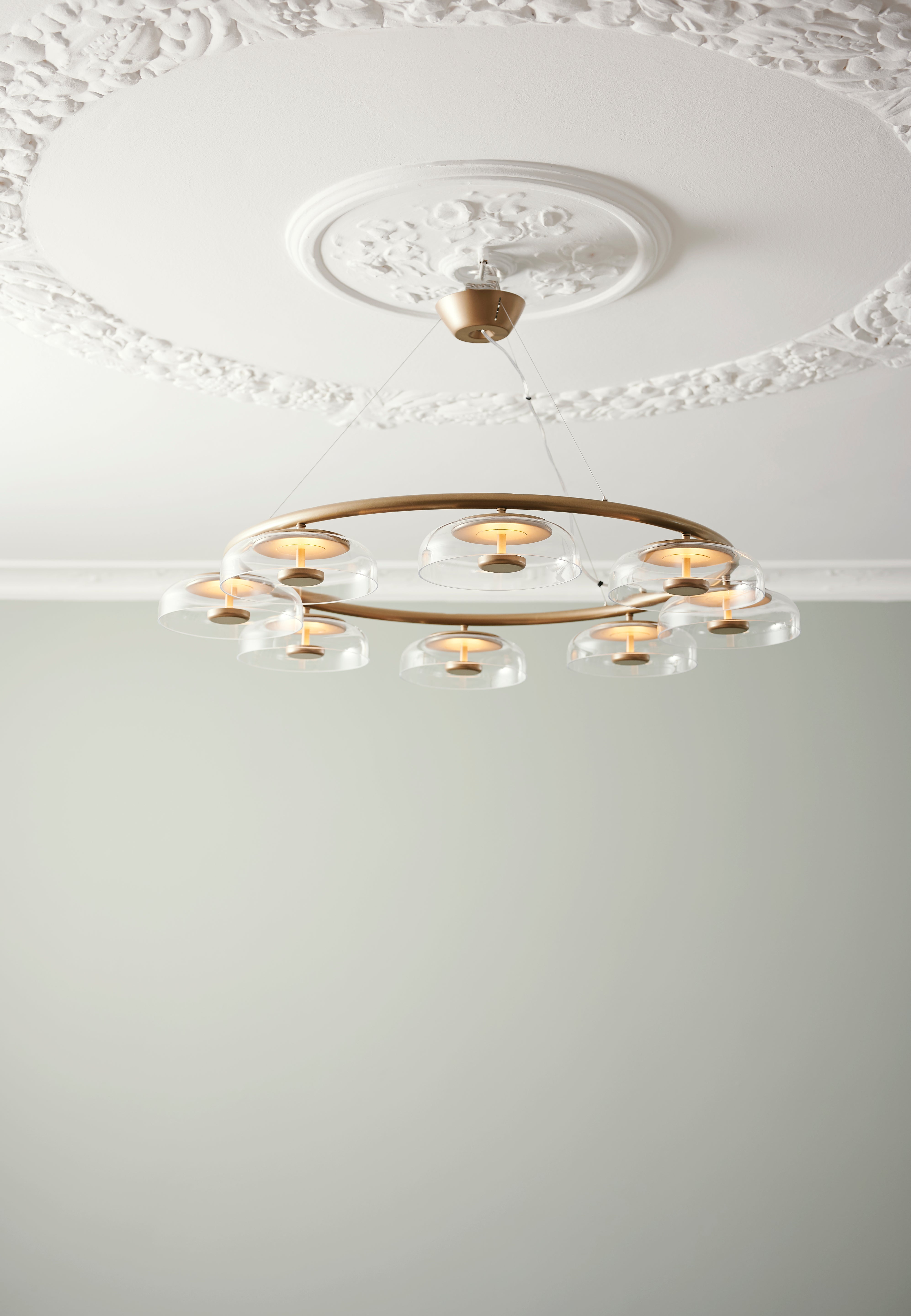 Blossi 8 er en lysekrone inspirert av solens gylne stråler som reflekteres i høstløv. Lysekronen har en diameter på ø103 cm og en høyde på kun 11 cm, og ved hjelp av et spesielt wiresystem kan Blossi 8 henges både høyt og lavt fra taket.