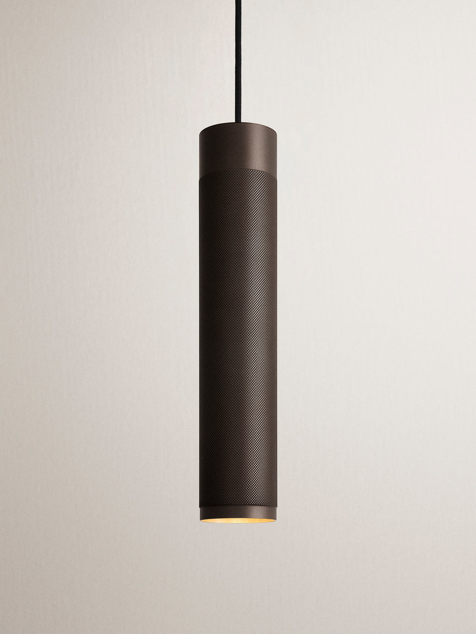 Lys opp rommet ditt med den delikate elegansen til Patrone pendellampene. Håndlaget i Danmark av solid diamantkuttet messing, har disse lampene et strømlinjeformet, sylinderformet design som utstråler raffinert enkelhet. Patrone-lampene kommer i tre størrelser og et utvalg av sofistikerte overflater, og gir et preg av luksus til ethvert rom.